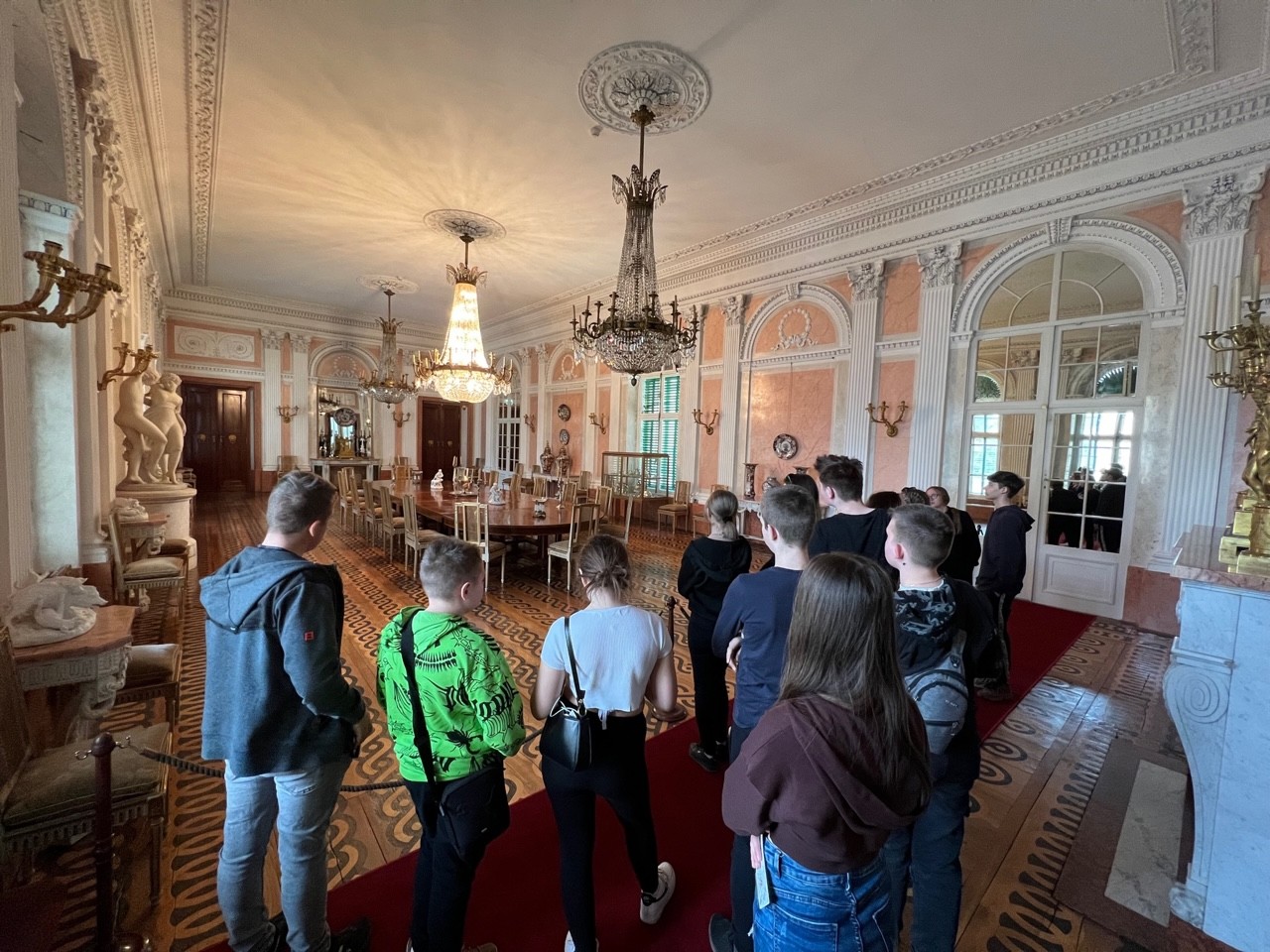 Nadszedł trzeci dzień wyjazdu i niestety musieliśmy opuścić piękne Bieszczady, ale nie był to jeszcze koniec wycieczki. Po śniadaniu i wykwaterowaniu udaliśmy się do Komańczy, aby zwiedzić miejsca związane z uwięzieniem kardynała Stefana Wyszyńskiego. Następnie przejechaliśmy do jednej z najwspanialszych rezydencji magnackich w Polsce- siedziby rodu Potockich i Lubomirskich w Łańcucie. Zwiedzaliśmy bogate wnętrza wspaniałej budowli arystokratycznej, piękne oryginalnie wyposażone sale, a następnie bogatą kolekcję powozów konnych wraz z akcesoriami. Był to już niestety ostatni punkt programu. Po zjedzeniu obiadu udaliśmy się do autokaru, aby wyruszyć w długą podróż powrotną. W późnych godzinach wieczornych zadowoleni dotarliśmy do Malanowa, gdzie czekali stęsknieni rodzice.