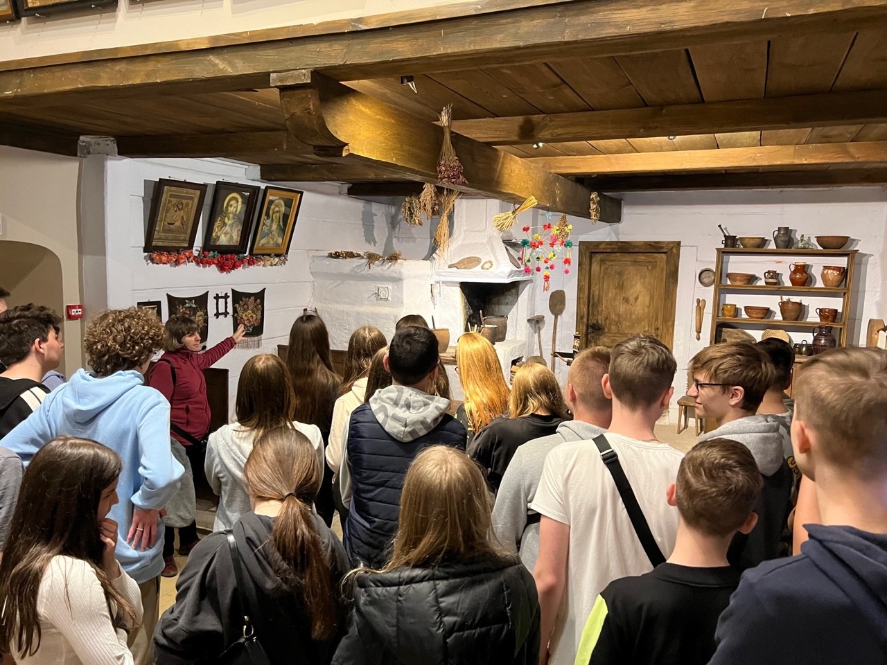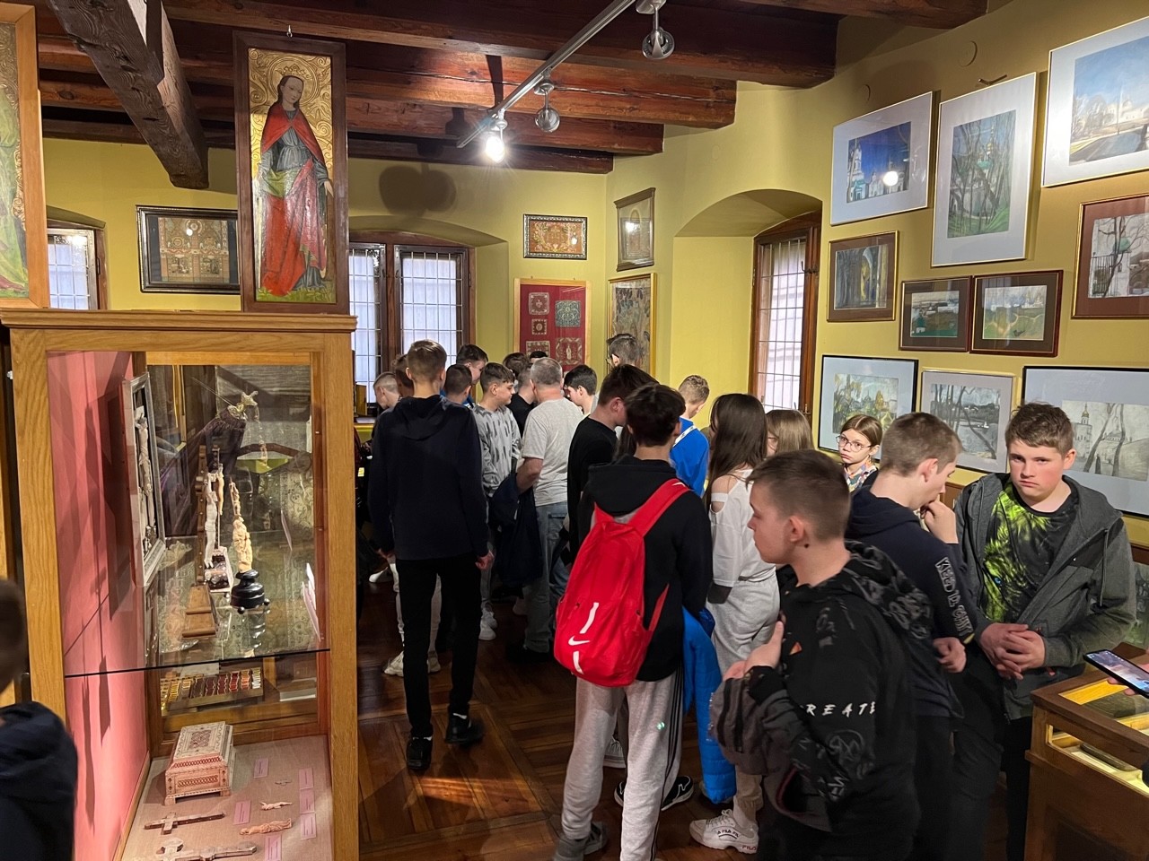 Atrakcją pierwszego dnia wycieczki było zwiedzanie urokliwych zakątków Sandomierza. Weszliśmy na taras widokowy na Bramie Opatowskiej, jedynej zachowanej bramie wjazdowej do średniowiecznego miasta, gdzie pod okiem przewodniczki mogliśmy obejrzeć panoramę miasta. Następnie przeszliśmy się Podziemną Trasą Turystyczną łączącą zespół dawnych piwnic, składów i lochów o długości 470 m. Przespacerowaliśmy się po sandomierskiej Starówce podziwiając Rynek, Ratusz, Furtę Dominikańską, a następnie lessowym wąwozem Królowej Jadwigi udaliśmy się do Muzeum Okręgowego, gdzie obejrzeliśmy bogate zbiory obiektów kultury ludowej, rzemiosła dawnego i archeologii oraz historii miasta i regionu. Ostatnim punktem wycieczki było zwiedzenie Domu Długosza, w którym znajduje się Muzeum Diecezjalne ze zbiorami sztuki sakralnej. Po zakupie pamiątek udaliśmy się w dalszą podróż. Naszym celem były Bieszczady, a konkretnie pensjonat „Gawra” w Łączkach niedaleko Leska- najmniejszego miasta powiatowego w Polsce, gdzie zostaliśmy zakwaterowani.