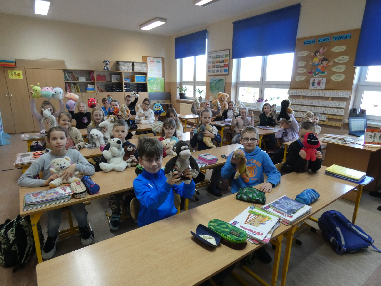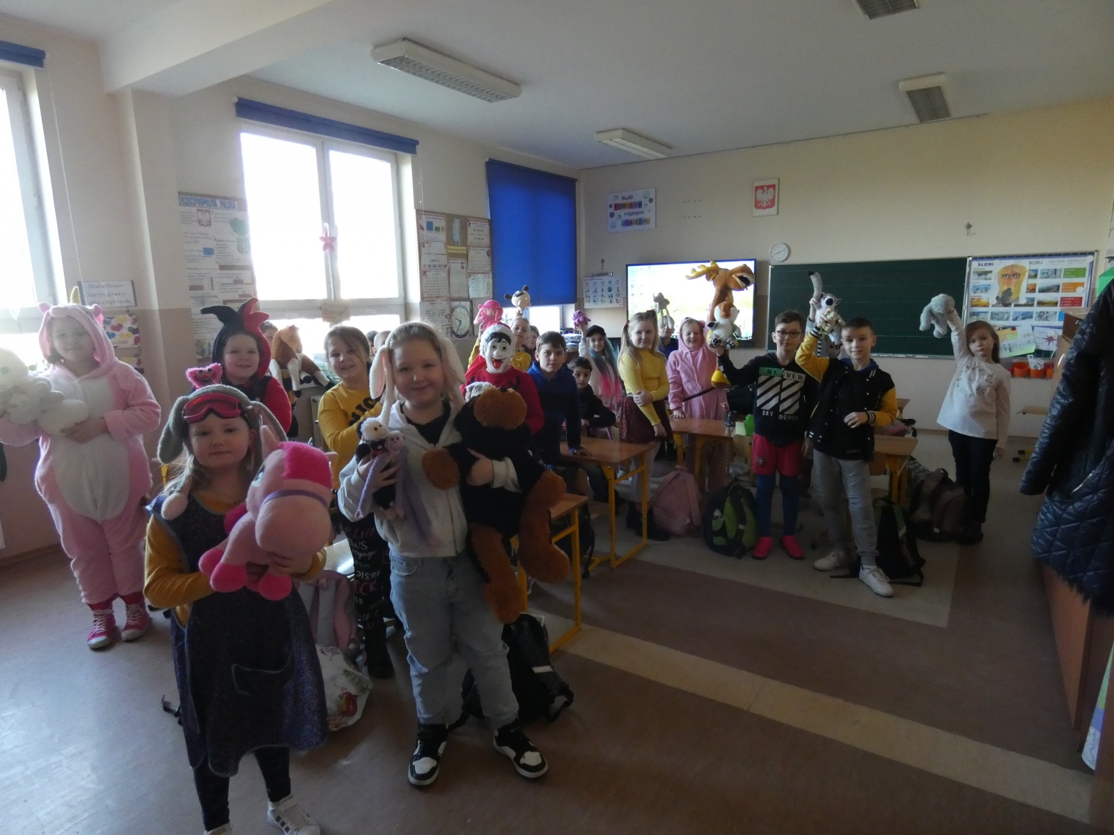 Dnia 03.04 z okazji Prima Aprilis, czyli święta żartów i dowcipów, Samorząd Uczniowski zorganizował atrakcje dla uczniów. Klasy IV-VIII miały za zadanie przyjść do szkoły bez plecaków, a w zamian wymyślić inny sposób na przyniesienie podręczników i zeszytów. Klasy I-III tego dnia świętowały Dzień Maskotki i mogły pochwalić się swoimi ulubionymi pluszakami. Przewodniczący klas poproszeni zostali o przesłanie grupowych zdjęć przedstawiających na jakie pomysły wpadli uczniowie aby uporać się z danym im zadaniem. Klasa, która zrobiła najciekawsze zdjęcie otrzyma nagrodę niespodziankę.