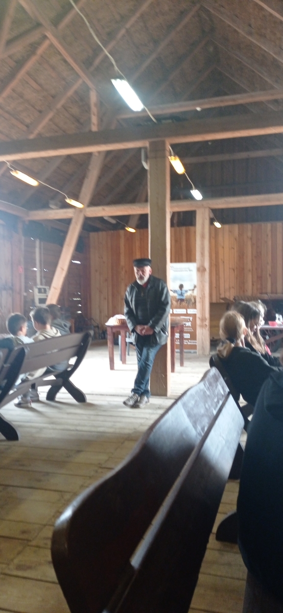 Druga część spotkania odbyła się w stodole, gdzie uczniowie zostali zapoznani z zasadami życia dawnej wsi, poznali rodzaje zbóż, sposoby ich uprawy i pozyskania ziarna. Dowiedzieli się także, jak wiele pracy wymagała kiedyś produkcja żywności.