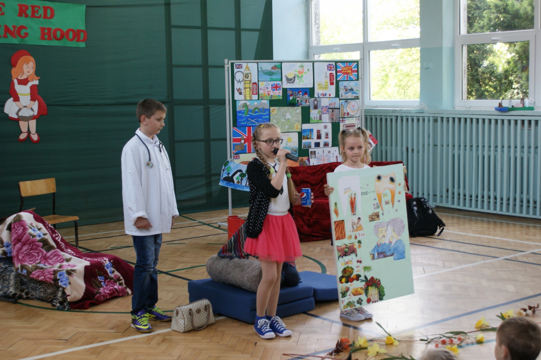 Uczniowie biorący udział w przedstawieniu poznali nowe treści i jednocześnie rozwinęli umiejętność mówienia w j. angielskim, płynnie recytowali teksty baśni z odpowiednią wymową i intonacją. Co więcej, poprzez tworzenie dialogów, prezentowanie scenek rozwinęli swoje umiejętności komunikacyjne, które często stanowią dla nich poważny problem i trudną barierę w procesie nauki j. angielskiego. Dodatkowym czynnikiem jest połączenie nauki języka z działaniami artystycznymi (plastyka, muzyka, teatr), które w ciekawy i nieszablonowy sposób zachęcają uczniów do przyswajania języka angielskiego.