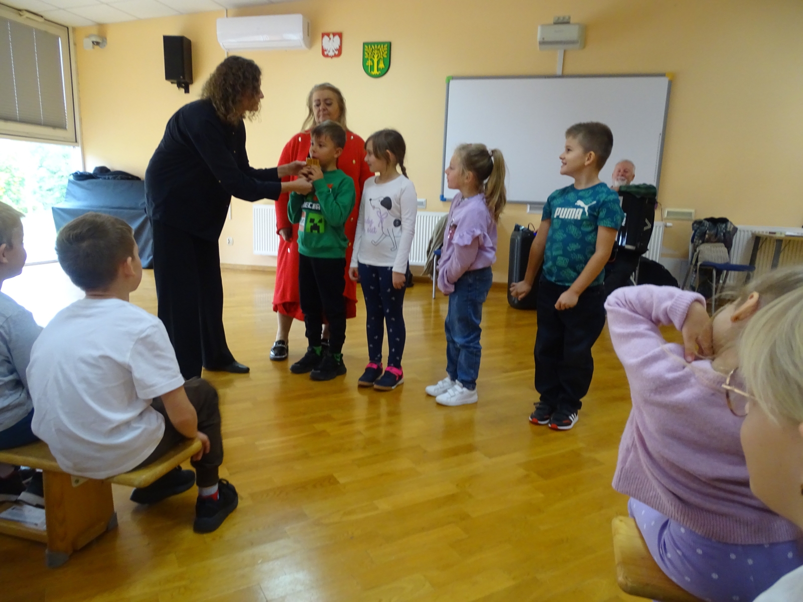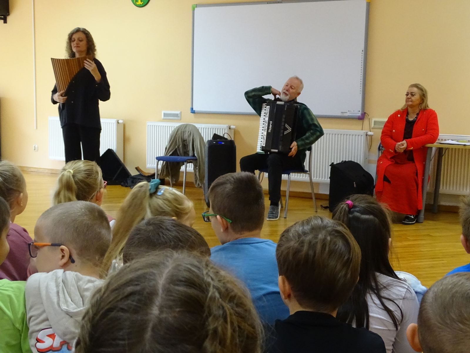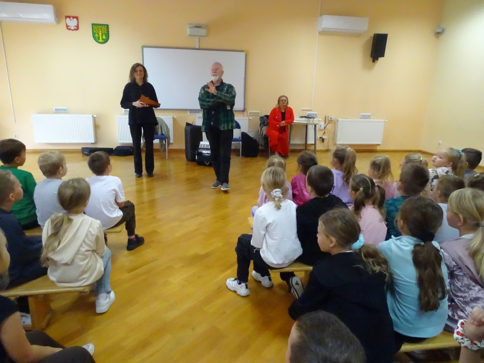 10 października gościliśmy na kolejnej już w tym roku szklonym audycji muzycznej grupę Art-es z Pabianic w towarzystwie znakomitej fletnistki – mistrzyni Polski w grze na rumuńskiej fletni pana – Darii Noryńskiej (Syrinks), która przeniosła nas w świat pięknej i tajemniczej muzyki. Tego dnia mieliśmy niesamowitą okazję wsłuchać się w utwory muzyki rumuńskiej, charakteryzującej się bogatym repertuarem, od ludowych melodii po utwory wirtuozerskie, a także zapoznać się z wyjątkową konstrukcją fletni pana, z łukowato ułożonymi rurkami i charakterystyczną stopką. Instrument, będący symbolem rumuńskiej muzyki ludowej, jest wykorzystywany przez profesjonalnych muzyków, a jego brzmienie często bywa melancholijne, porównywane do muzyki bluesowej. Uczniowie mogli również wysłuchać bogatej w szczegóły opowieści o powstaniu fletni mającej swoje źródło w mitologii greckiej. Wszyscy, bez wyjątku wsłuchani byli z niesamowite dźwięki nowo poznanego instrumentu.