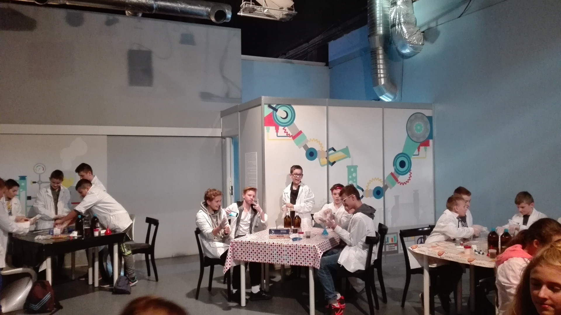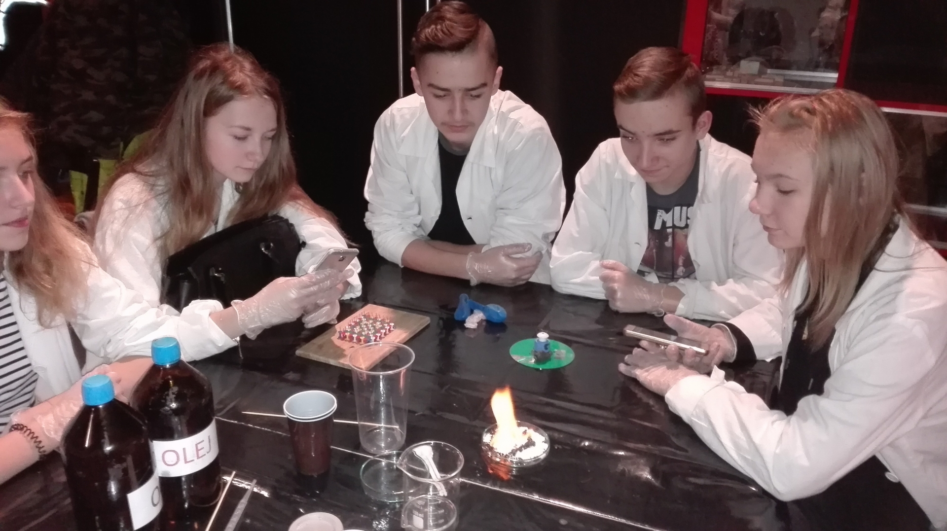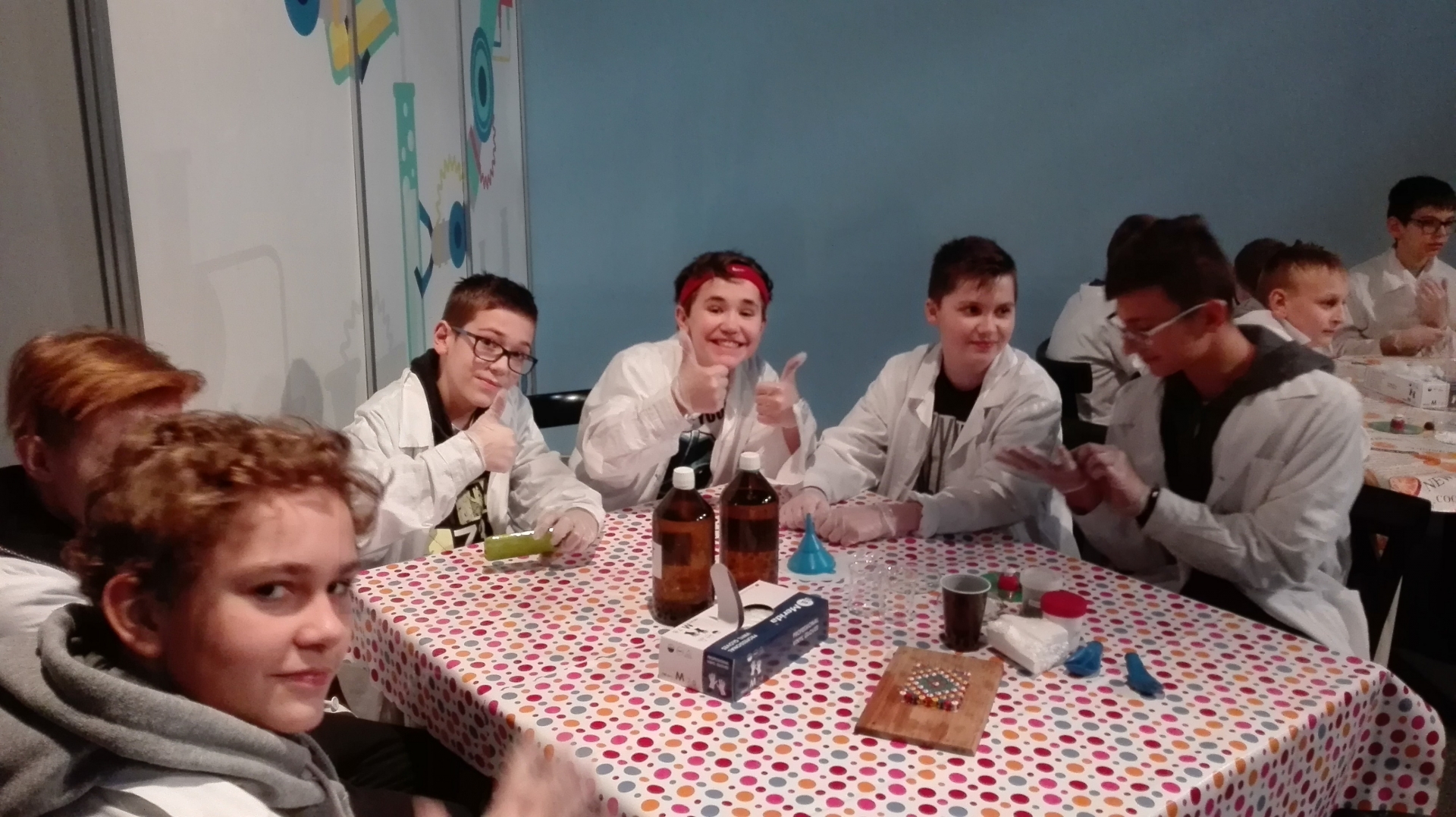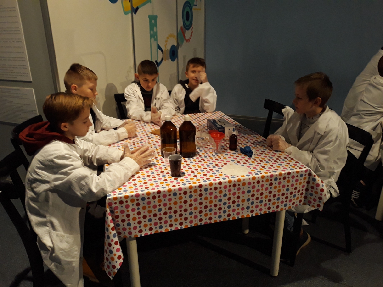 Drugą atrakcją wycieczki był udział w warsztatach w Centrum Nauki „Experymentarium” – ośrodku, w którym nauka nie ma tajemnic i każdy poprzez zabawę może samodzielnie poznać i zrozumieć nawet najbardziej skomplikowane zagadnienia dotyczące czasem bardzo trudnych zjawisk i procesów. Uczestnicy warsztatów dowiedzieli się, jak w bezpieczny sposób wykonać ciekawe eksperymenty z wykorzystaniem artykułów znajdujących się w każdej kuchni. Udało im się uzyskać tak zwane „węże faraona”, lampę lawę czy szaszłyk z balonika. Mogli również przeprowadzić doświadczenia z wykorzystaniem profesjonalnych odczynników, które pozwoliły uczniom poczuć się jak prawdziwi naukowcy.