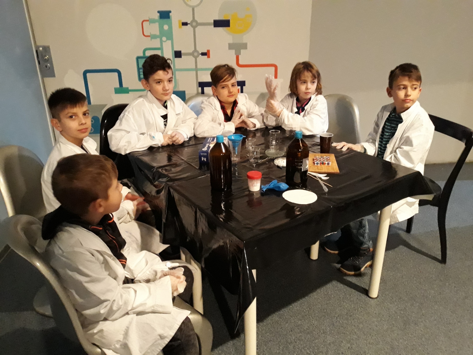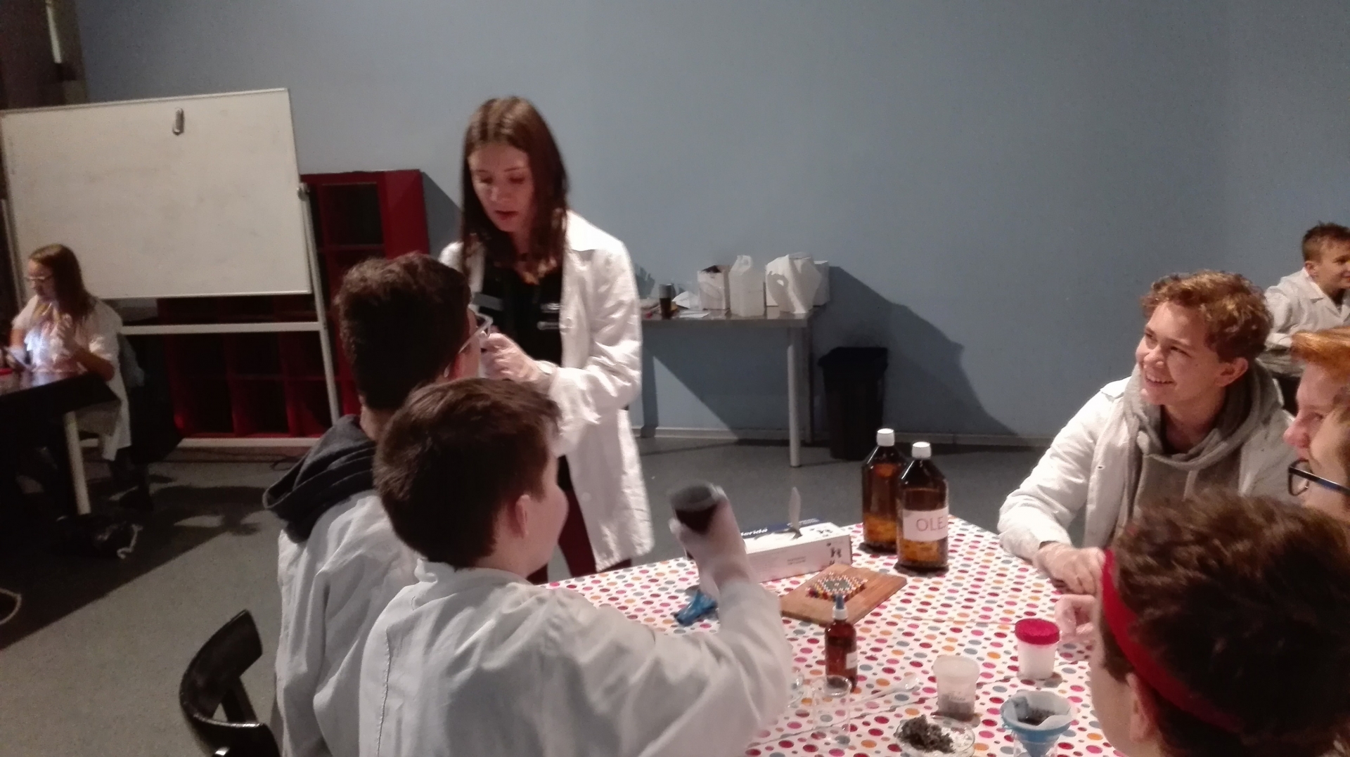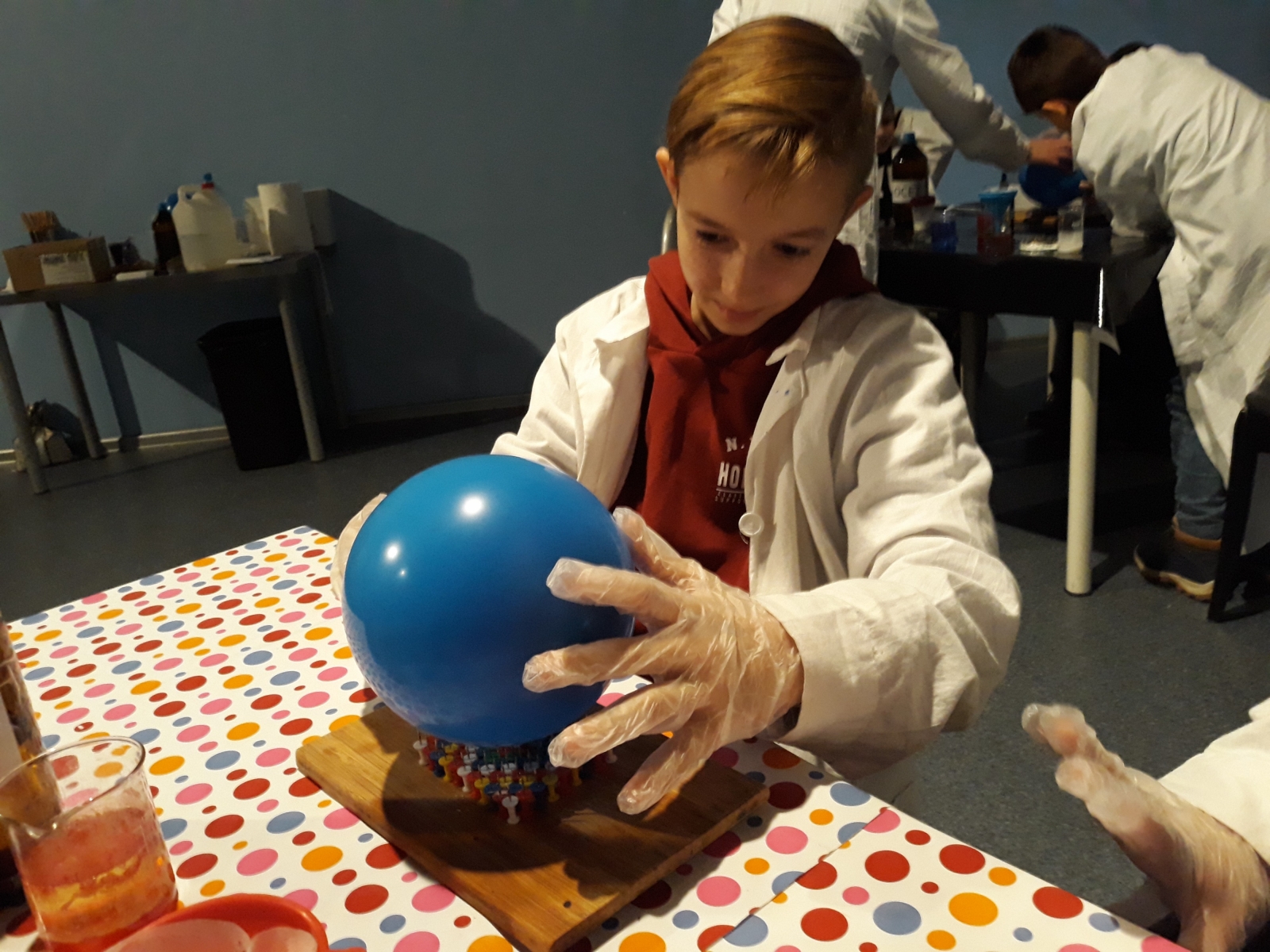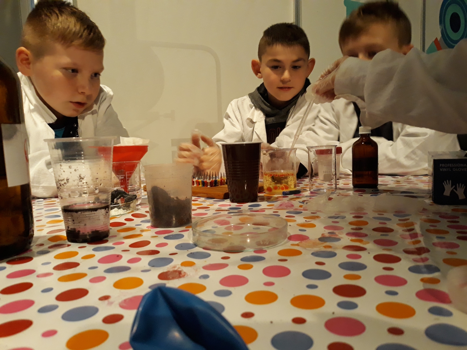 Drugą atrakcją wycieczki był udział w warsztatach w Centrum Nauki „Experymentarium” – ośrodku, w którym nauka nie ma tajemnic i każdy poprzez zabawę może samodzielnie poznać i zrozumieć nawet najbardziej skomplikowane zagadnienia dotyczące czasem bardzo trudnych zjawisk i procesów. Uczestnicy warsztatów dowiedzieli się, jak w bezpieczny sposób wykonać ciekawe eksperymenty z wykorzystaniem artykułów znajdujących się w każdej kuchni. Udało im się uzyskać tak zwane „węże faraona”, lampę lawę czy szaszłyk z balonika. Mogli również przeprowadzić doświadczenia z wykorzystaniem profesjonalnych odczynników, które pozwoliły uczniom poczuć się jak prawdziwi naukowcy.