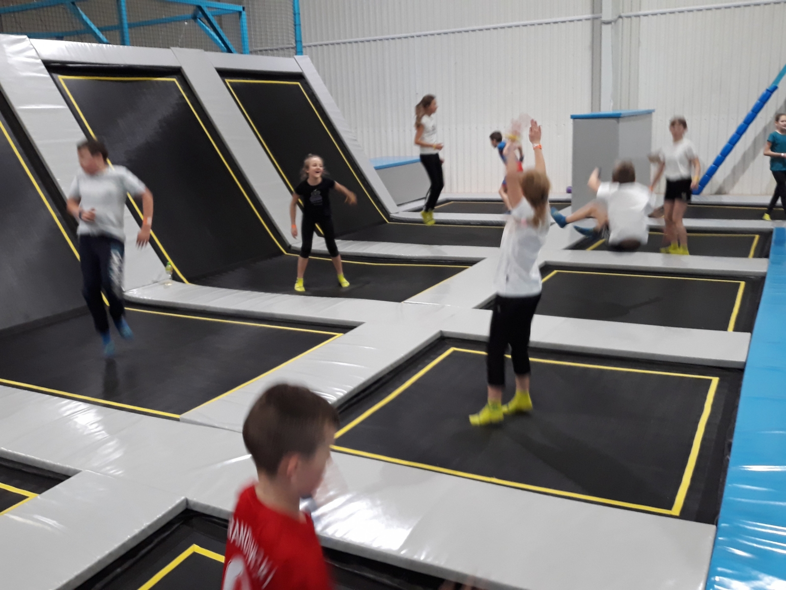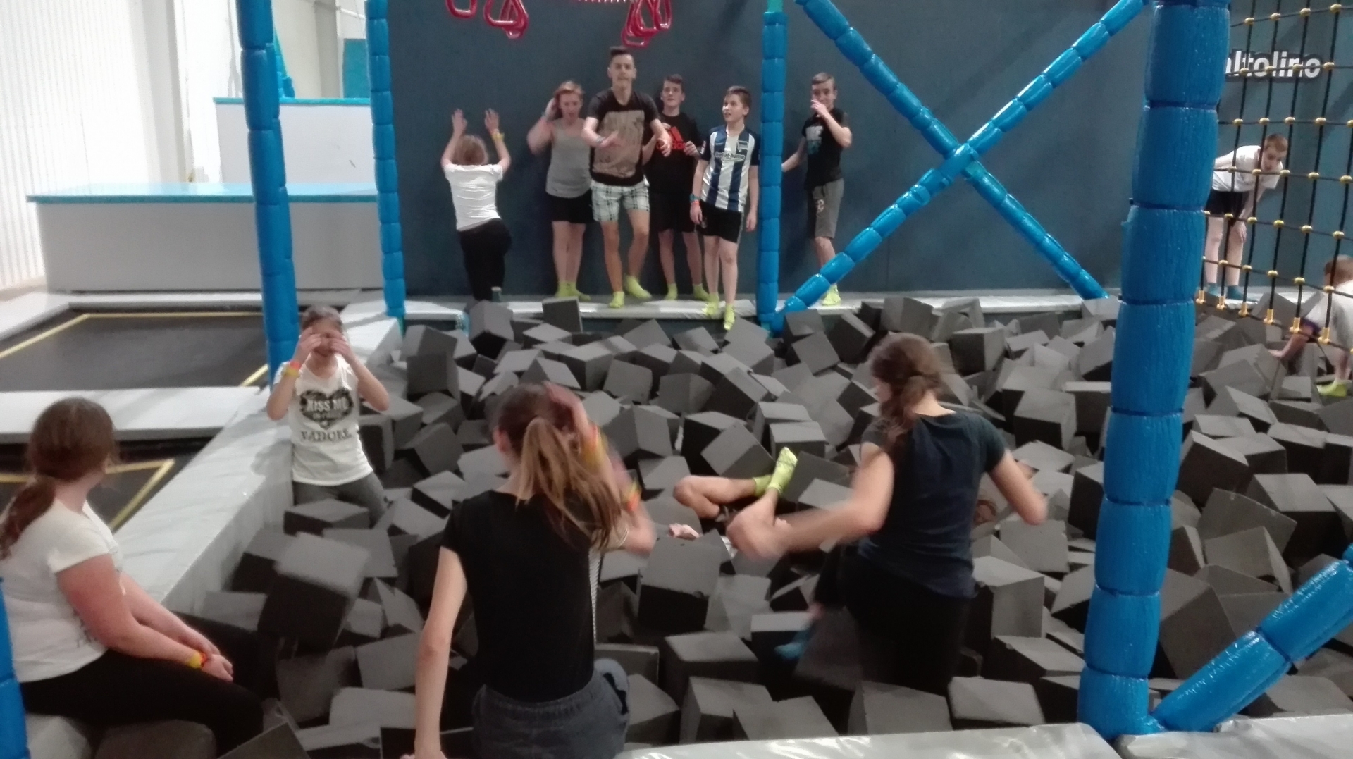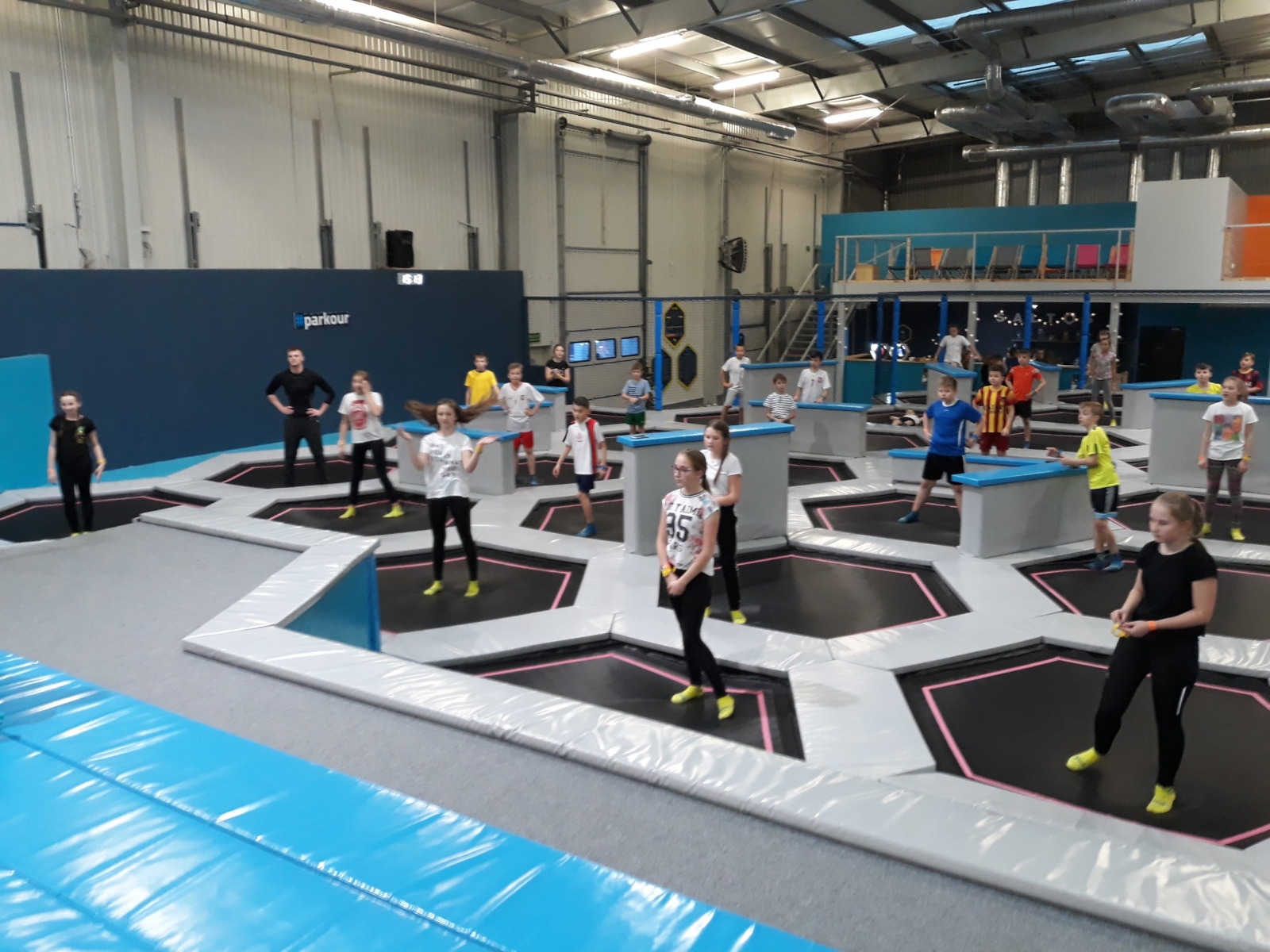 W czwartek 14 grudnia bardzo liczna grupa uczniów wspólnie z wychowawcami wybrała się na wycieczkę do Łodzi. W programie wycieczki znajdowały się zajęcia sportowe w parku trampolin „Saltos” oraz zajęcia edukacyjne w Centrum Nauki „Experymentarium”. Uczniowie podzielenie na dwie grupy zamiennie uczestniczyli w poszczególnych zajęciach. W parku trampolin młodzi adepci na początku poznali podstawowe zasady bezpieczeństwa i prawidłowego korzystanie z trampolin. Następnie po krótkiej i dynamicznej rozgrzewce pod okiem instruktorów chłopcy i dziewczęta wykonywali skoki, kontrolowane upadki, podniebne akrobacje a nawet salta w przód. Ponadto uczniowie podzielenie na małe grupy korzystali z trampolin sportowych, wykonywali skoki do basenu z piankami, korzystali z toru przeszkód nad basenem piankowym oraz grali w „zbijanego”. Zajęcia na trampolinach miały charakter zajęć wychowania fizycznego i były prowadzone przez instruktorów.