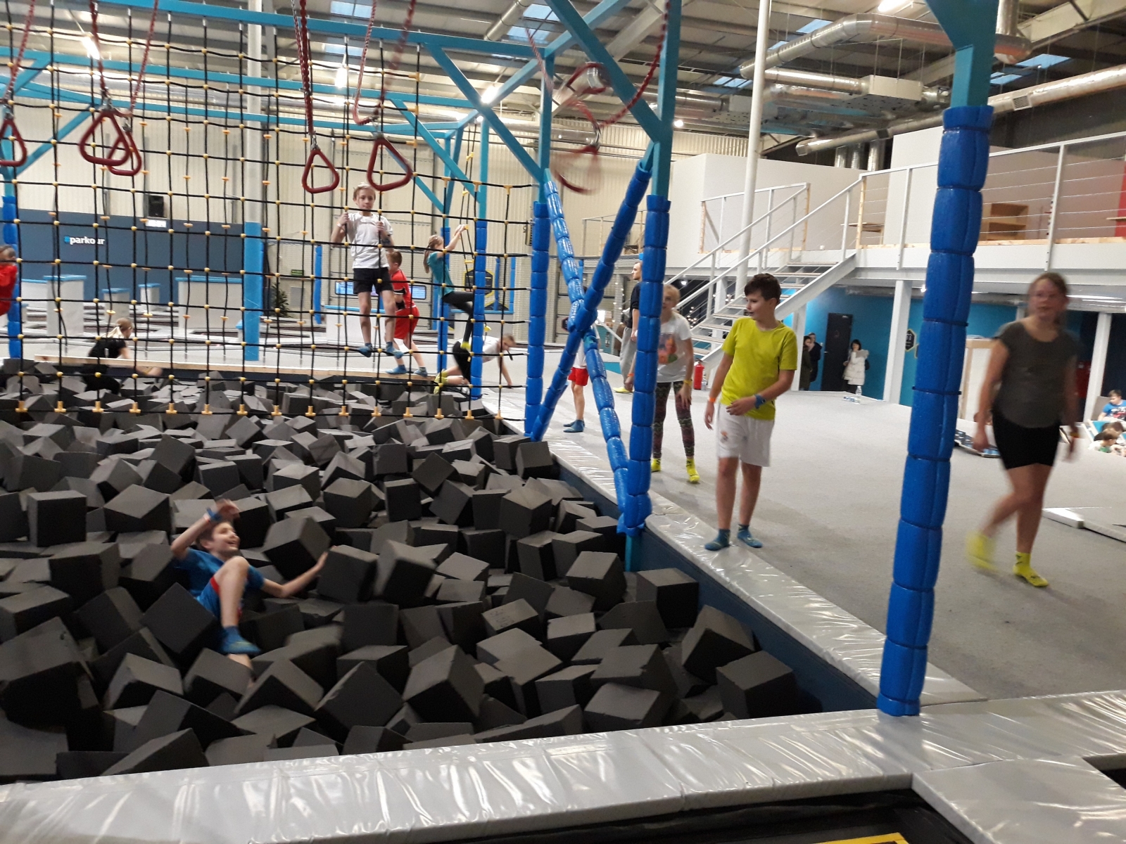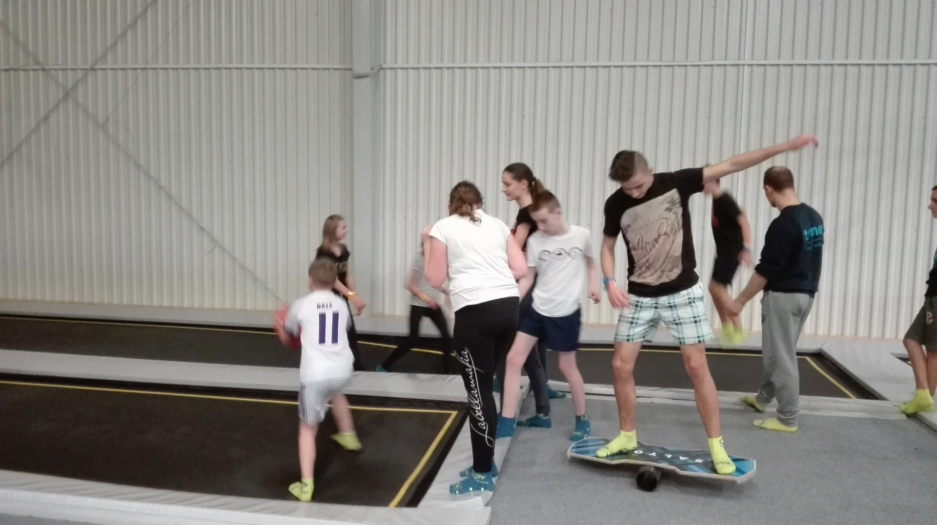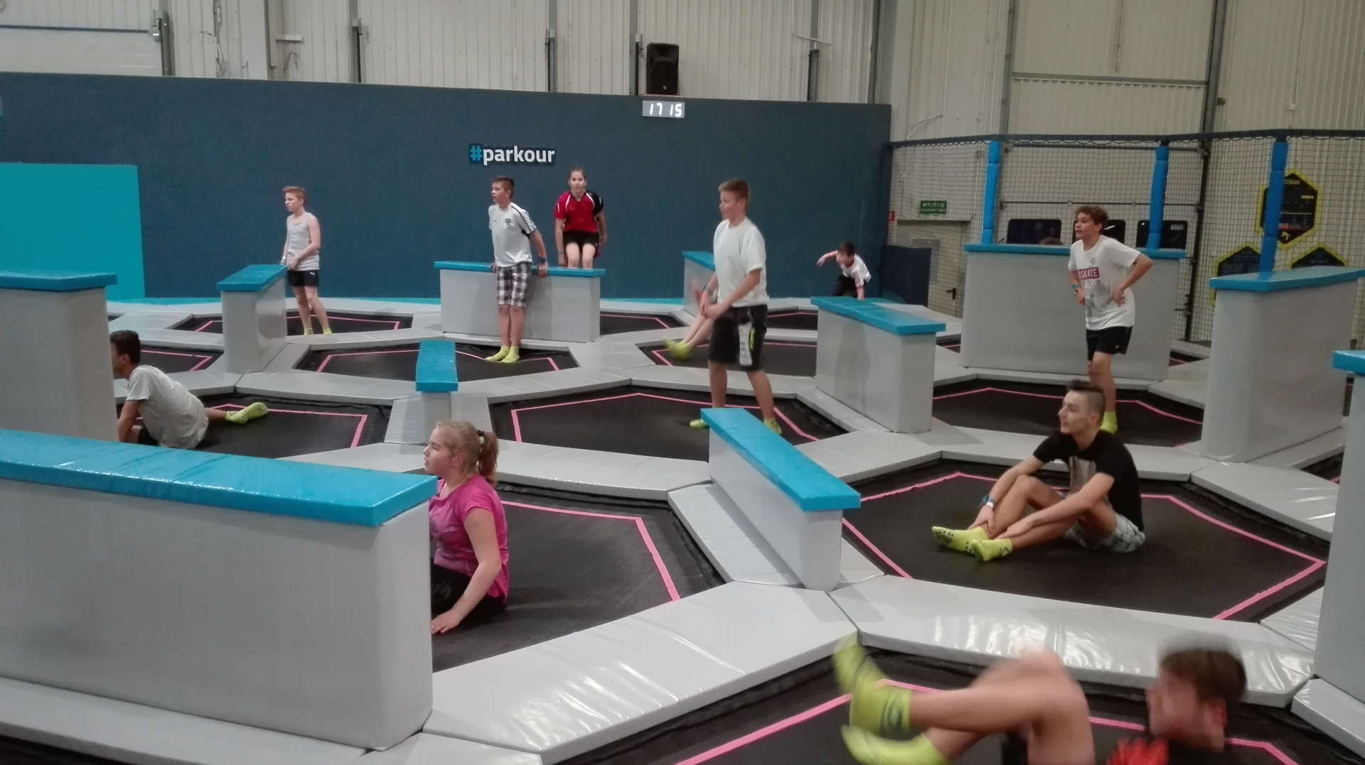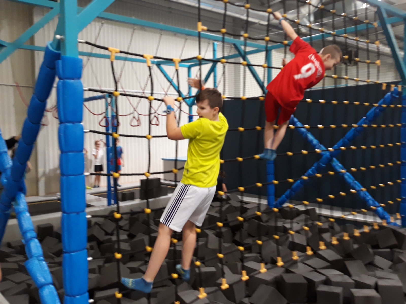 W czwartek 14 grudnia bardzo liczna grupa uczniów wspólnie z wychowawcami wybrała się na wycieczkę do Łodzi. W programie wycieczki znajdowały się zajęcia sportowe w parku trampolin „Saltos” oraz zajęcia edukacyjne w Centrum Nauki „Experymentarium”. Uczniowie podzielenie na dwie grupy zamiennie uczestniczyli w poszczególnych zajęciach. W parku trampolin młodzi adepci na początku poznali podstawowe zasady bezpieczeństwa i prawidłowego korzystanie z trampolin. Następnie po krótkiej i dynamicznej rozgrzewce pod okiem instruktorów chłopcy i dziewczęta wykonywali skoki, kontrolowane upadki, podniebne akrobacje a nawet salta w przód. Ponadto uczniowie podzielenie na małe grupy korzystali z trampolin sportowych, wykonywali skoki do basenu z piankami, korzystali z toru przeszkód nad basenem piankowym oraz grali w „zbijanego”. Zajęcia na trampolinach miały charakter zajęć wychowania fizycznego i były prowadzone przez instruktorów.