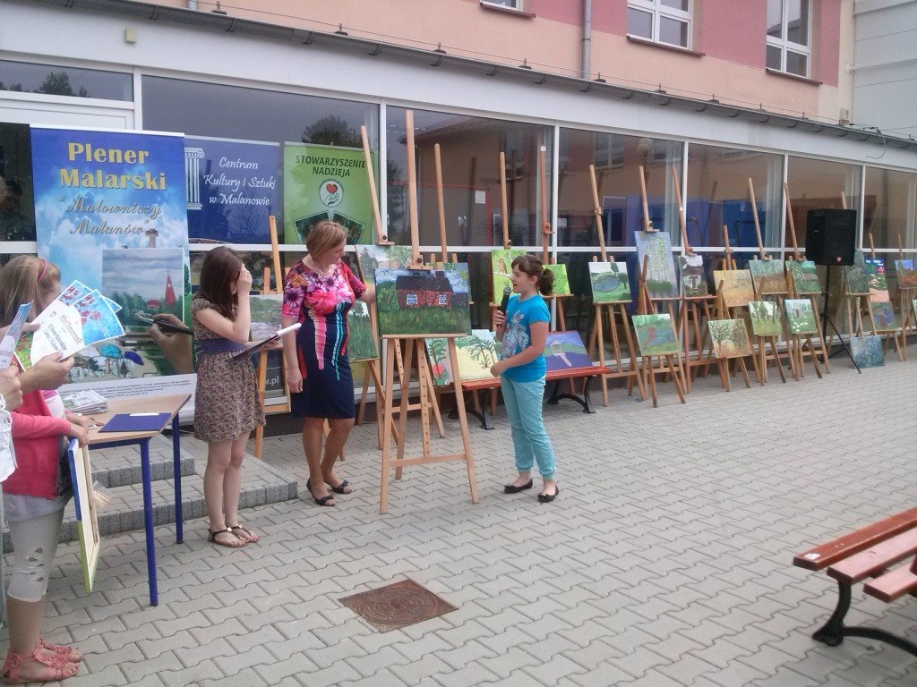 Dnia 28 i 29 czerwca, czyli w pierwszy wakacyjny weekend, odbył się organizowany tradycyjnie przez Stowarzyszenie Nadzieja oraz Centrum Kultury i Sztuki w Malanowie Plener Malarski „Malowniczy Malanów”. W tym roku było to VIII spotkanie. Młodzi artyści na swych pracach uwiecznili kolejne urokliwe miejsca z terenu Gminy Malanów, tym razem znajdujące się w Celestynach. Uczestnikami pleneru z naszej szkoły były uczennice klasy IVb Nikola Tomasza, Daria Balcerzak i Natalia Serafińska. Dziewczynki malowały farbami akrylowymi i plakatowymi. Przez kilka godzin na swoich pracach uwieczniły fragmenty piękna otaczającej nas przyrody. Prezentacja prac odbyła się 29 czerwca w Gimnazjum w Malanowie.