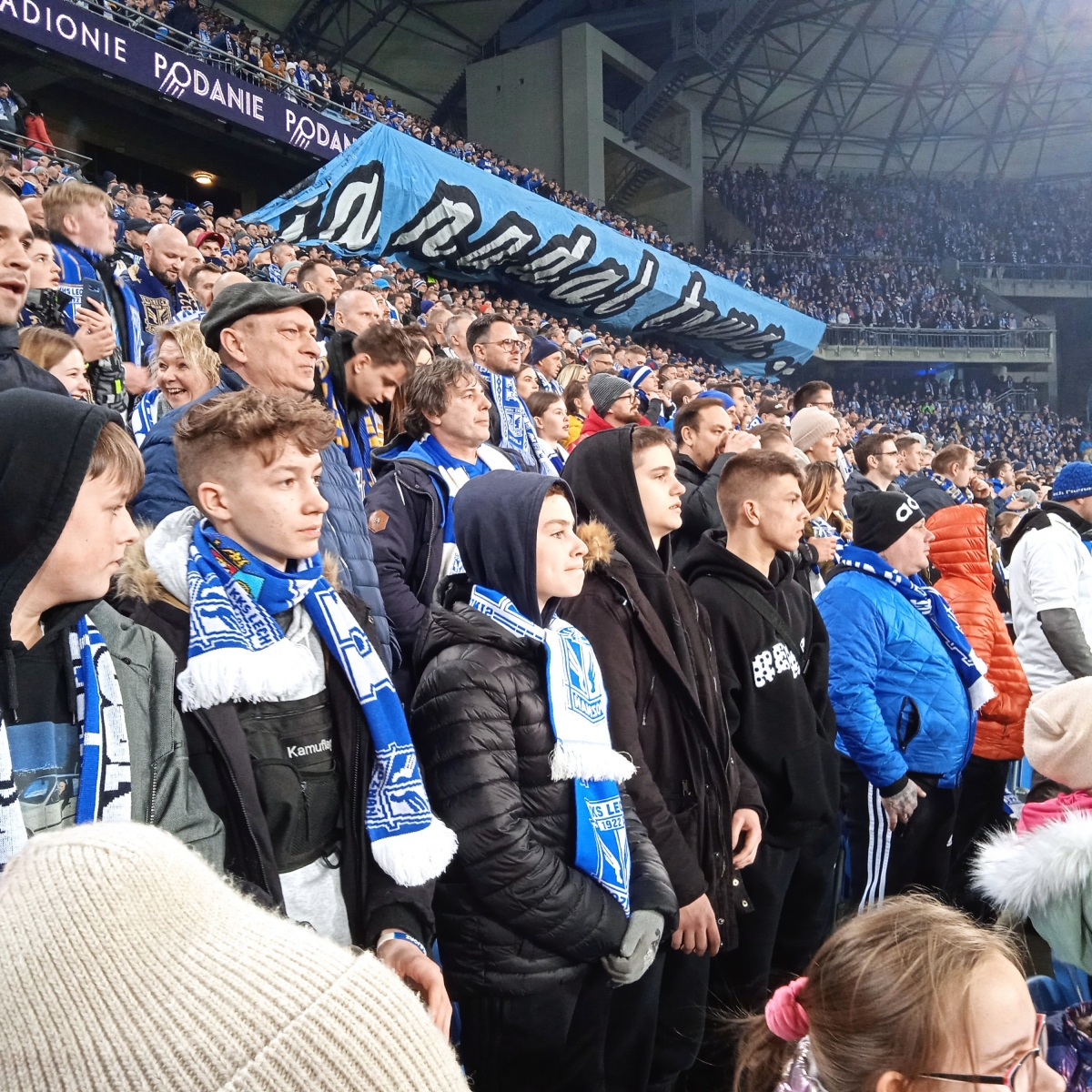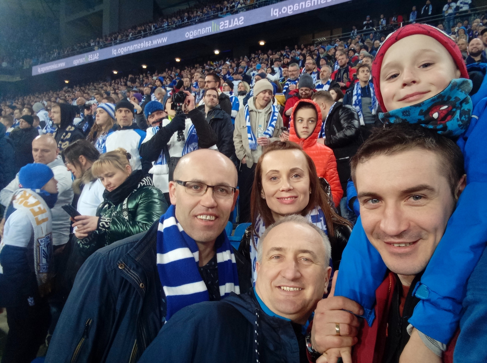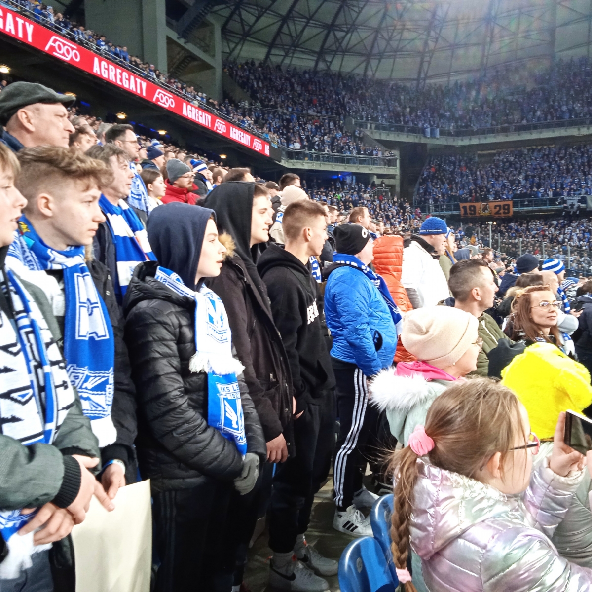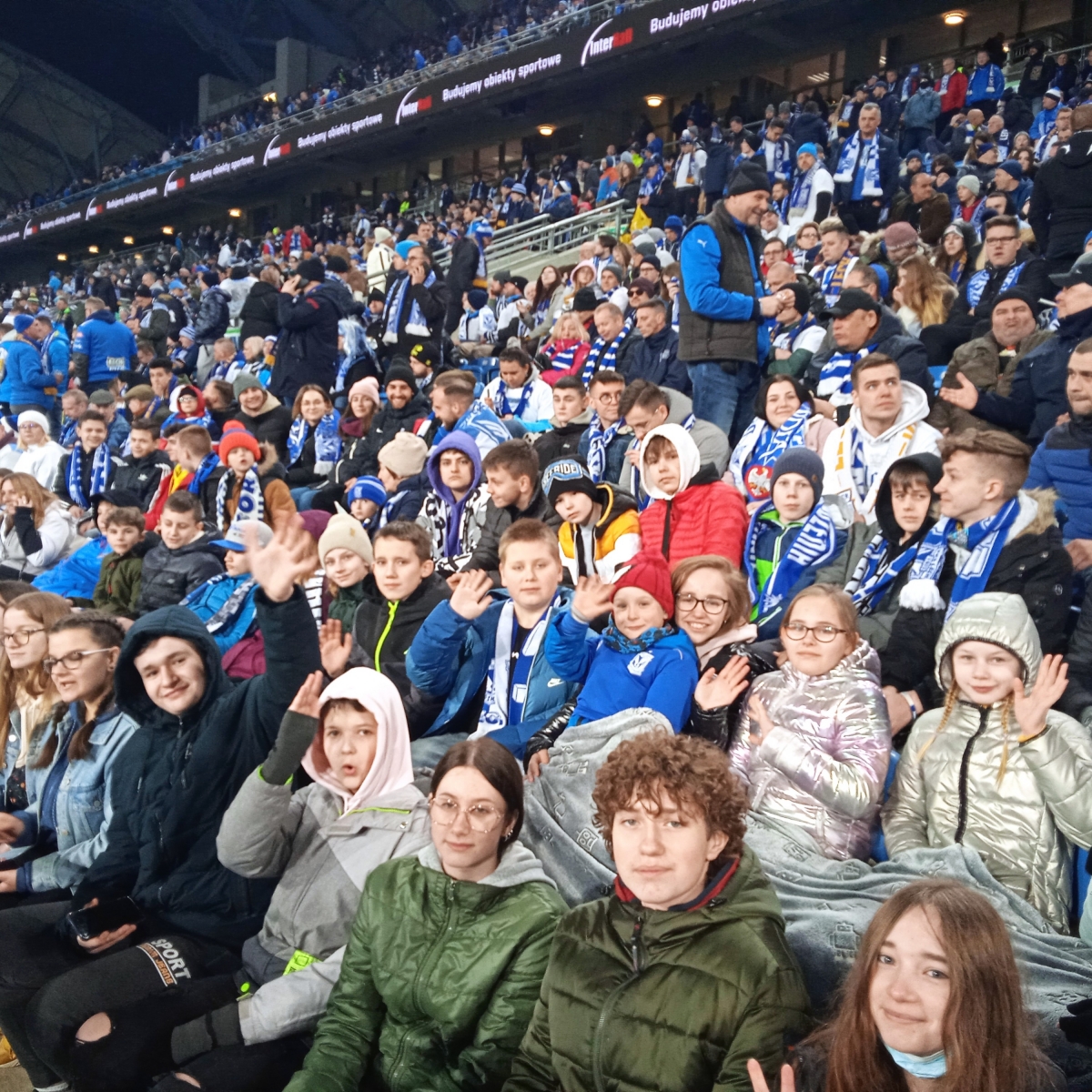 Grupa 45 uczniów z naszej szkoły wraz z opiekunami kibicowała na stadionie Inea w Poznaniu w meczu 26 kolejki ekstraklasy. Gospodarzem był zespół z Poznania, aktualnie znajdujący się na trzecim miejscu w tabeli ekstraklasy. Na stadionie zasiadł komplet kibiców, łącznie ponad 40 tysięcy kibiców przybyło na mecz. Atmosfera i oprawa w tym dniu była niezwykła, bowiem klub obchodził 100 lat istnienia, co było przyczyną bardzo bogatej oprawy i zdecydowanego dopingu. Mecz rozpoczął się od kartoniady i głośnego hymnu poznańskiego lecha. Pierwsza połowa zakończyła się bezbramkowym remisem, z przewagą gry gospodarzy, jednak bez zdobyczy bramkowej. W przerwie meczu ogłoszono jedenastkę 100-lecia klubu, a znane postacie i nazwiska polskiej piłki przybyły na ceremonie i świętowanie urodzin klubu. Druga połowa to popis i kompleksowa gra poznańskiego lecha, zespół z Bułgarskiej na oczach ponad 40 tysięcy kibiców pokonał Jagiellonią Białystok 3:0 i plan w dniu 100. rocznicy klubu wykonał w 100 procentach.