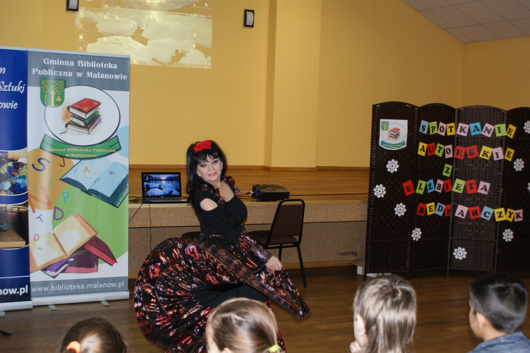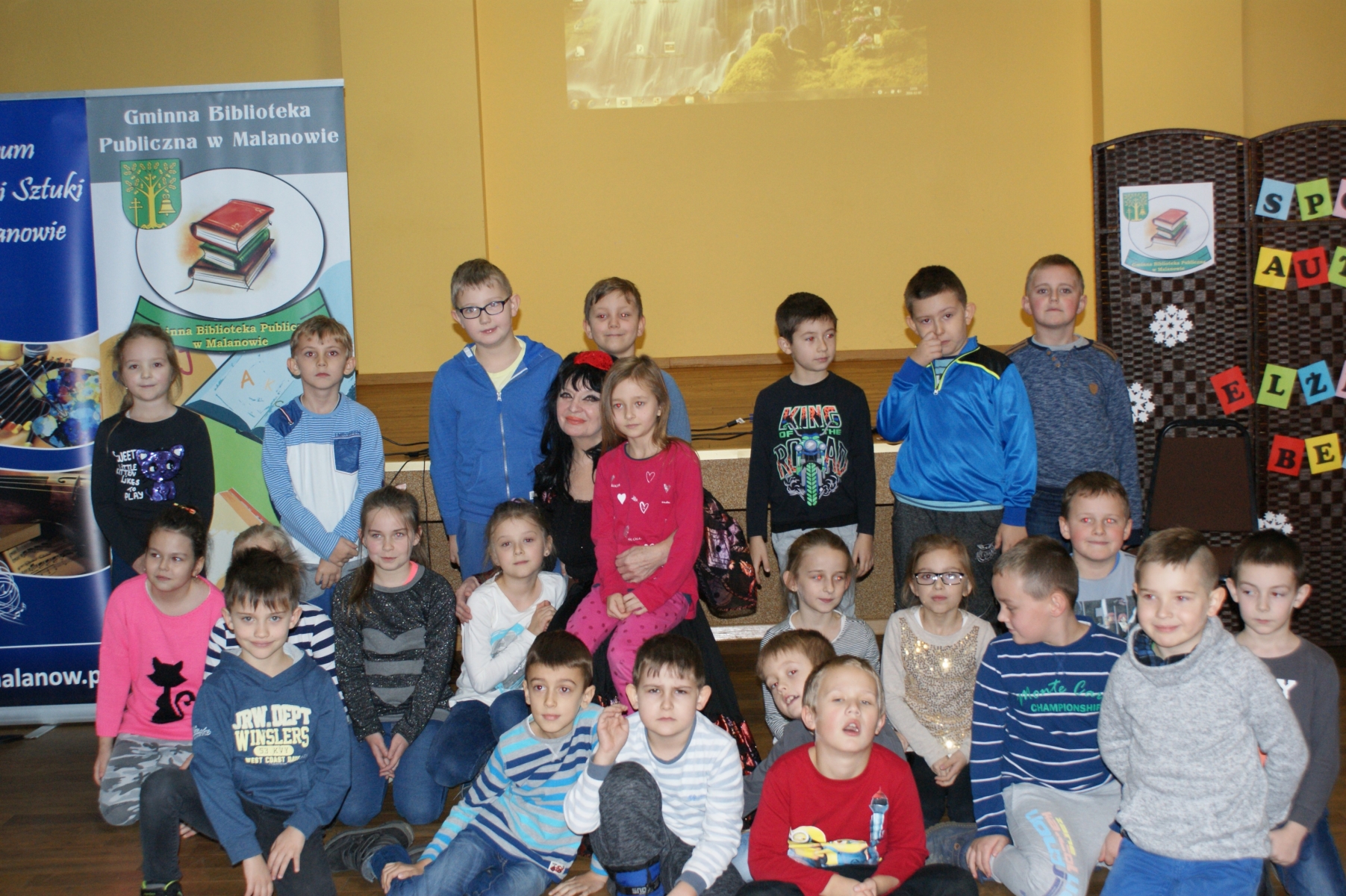 07 grudnia 2016 r, był w Świetlicy Wiejskiej w Malanowie dniem spotkań z Elżbietą Bednarczyk, kobietą pełną przeróżnych zamiłowań i umiejętności od pisarstwa dla dzieci i dorosłych oraz tańca po aktorstwo i reżyserię przedstawień teatralnych. W godzinach przedpołudniowych Elżbieta Bednarczyk spotkała się z uczniami klas I-III i ich nauczycielkami ze Szkoły Podstawowej w Malanowie. Zaprezentowała się jako autorka m.in. wierszowanej bajki „Kłótnia w tornistrze” czytając jej fragmenty. Ponadto opowiadała o kraju, w którym mieszka, czyli Australii, na tle prezentowanych w pokazie multimedialnym fotografii. Jednak przede wszystkim dała się bliżej poznać najmłodszym jako człowiek kochający życie i swoje niejedno hobby. Zaprezentowała się również jako tancerka, prezentując pełen ekspresji piękny taniec. Zachęcała dzieci do tego, aby korzystali z łatwego obecnie dostępu do książek, dbali o siebie i szanowali innych. Dodatkowo chętnie podejmowała rozmowy z nimi, odpowiadała na liczne pytania i sama je im zadawała. Ciepła i otwarta osobowość gościa rozgrzała serca młodej publiczności. Było sympatycznie i wesoło. Pamiątką ze spotkań były autografy pisarki wraz z zakupionymi książeczkami dla dzieci.