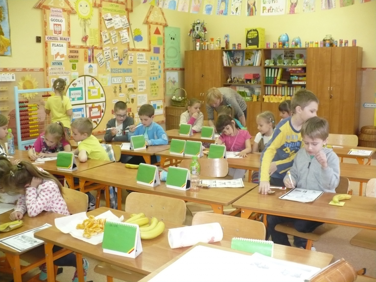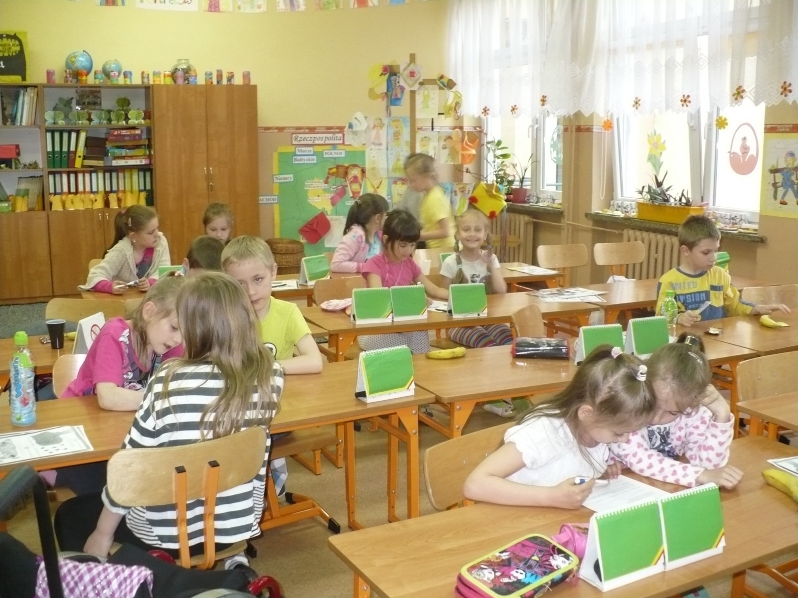 Dzieci na dwugodzinnym spotkaniu pod kierunkiem wychowawczyń: A. Jasnowskiej i E. Andrzejczak rozwiązywały w grupach zadania i łamigłówki matematyczne poszerzające wiadomości matematyczne uczniów. Poznały ciekawe strony online do nauki matematyki, wykonując przykładowe zadania z wykorzystaniem TIK. Rodzice umilili czas swoim pociechom przygotowując słodki poczęstunek. Na zakończenie twórczego spotkania Klubowicze „Kosmicznego Klubu Matematycznego” otrzymali legitymacje i specjalne znaczki przyznające im tytuł „Nieziemskiego Matematyka”.
