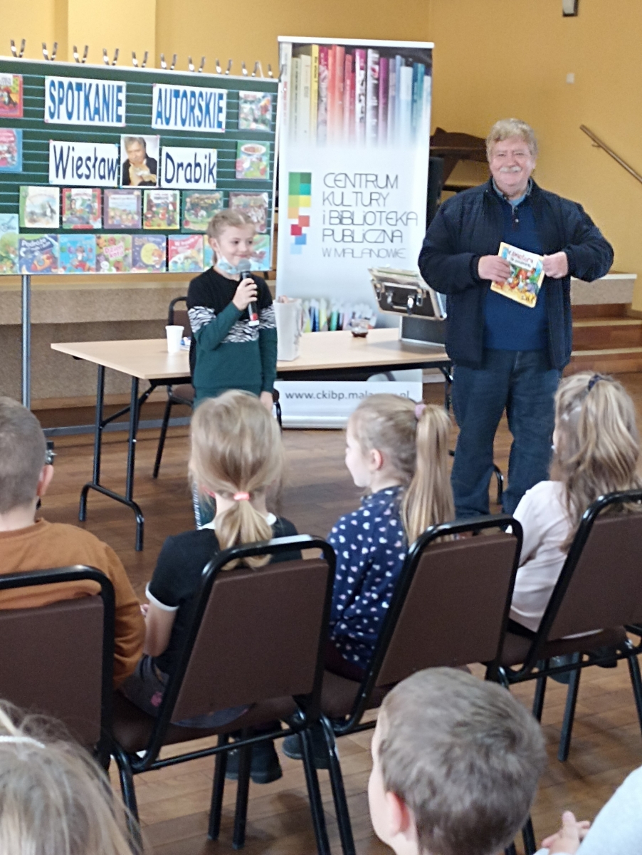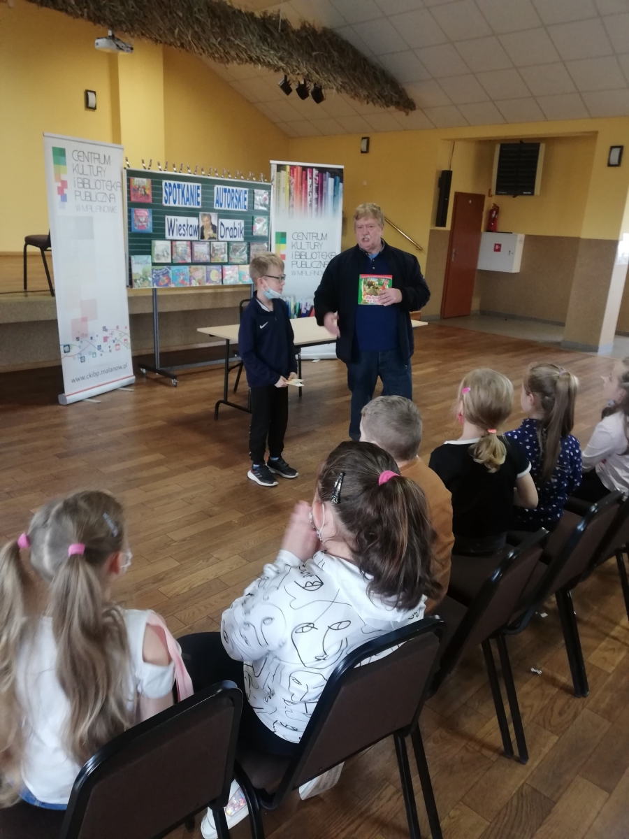 Spotkania z ciekawymi ludźmi są dużą atrakcją dla dzieci, należą do nich również spotkania autorskie. Dlatego Gminna Biblioteka Publiczna w Malanowie systematycznie organizuje tego typu wydarzenia. W dniu 27 października 2021 roku, zaproszono znanego i lubianego pisarza dla dzieci – pana Wiesława Drabika. W spotkaniu uczestniczyli uczniowie klas pierwszych i drugich Szkoły Podstawowej w Malanowie. W październiku odbył się Gminny konkurs recytatorsko – aktorski twórczości pana Drabika – zwycięzcy tego konkursu zaprezentowali swoje wiersze gościowi i publiczności. Było to dla pisarza miłą niespodzianką.
