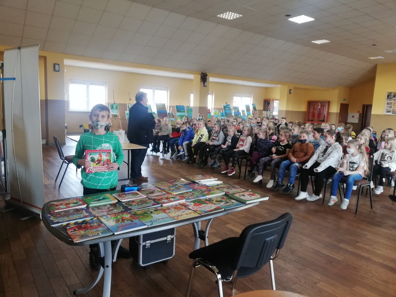 Pan Wiesław, autor wielu zabawnych historyjek, rozbawiał dzieci przez ponad godzinę. Opowiadał młodym czytelnikom o swojej przygodzie pisarskiej, recytował wiersze, odpowiadał na pytania śmiesznymi, rymowanymi wierszykami, które sprawiały dzieciom mnóstwo radości. Niektóre z nich z pewnością na długo pozostaną w naszych głowach. Sympatyczny pan od bajek nie zapomniał też, o tym, że dzieciaki najbardziej kochają konkurencje. Zwycięzcy poszczególnych konkurencji otrzymywali nagrody, w tym również w postaci książek.