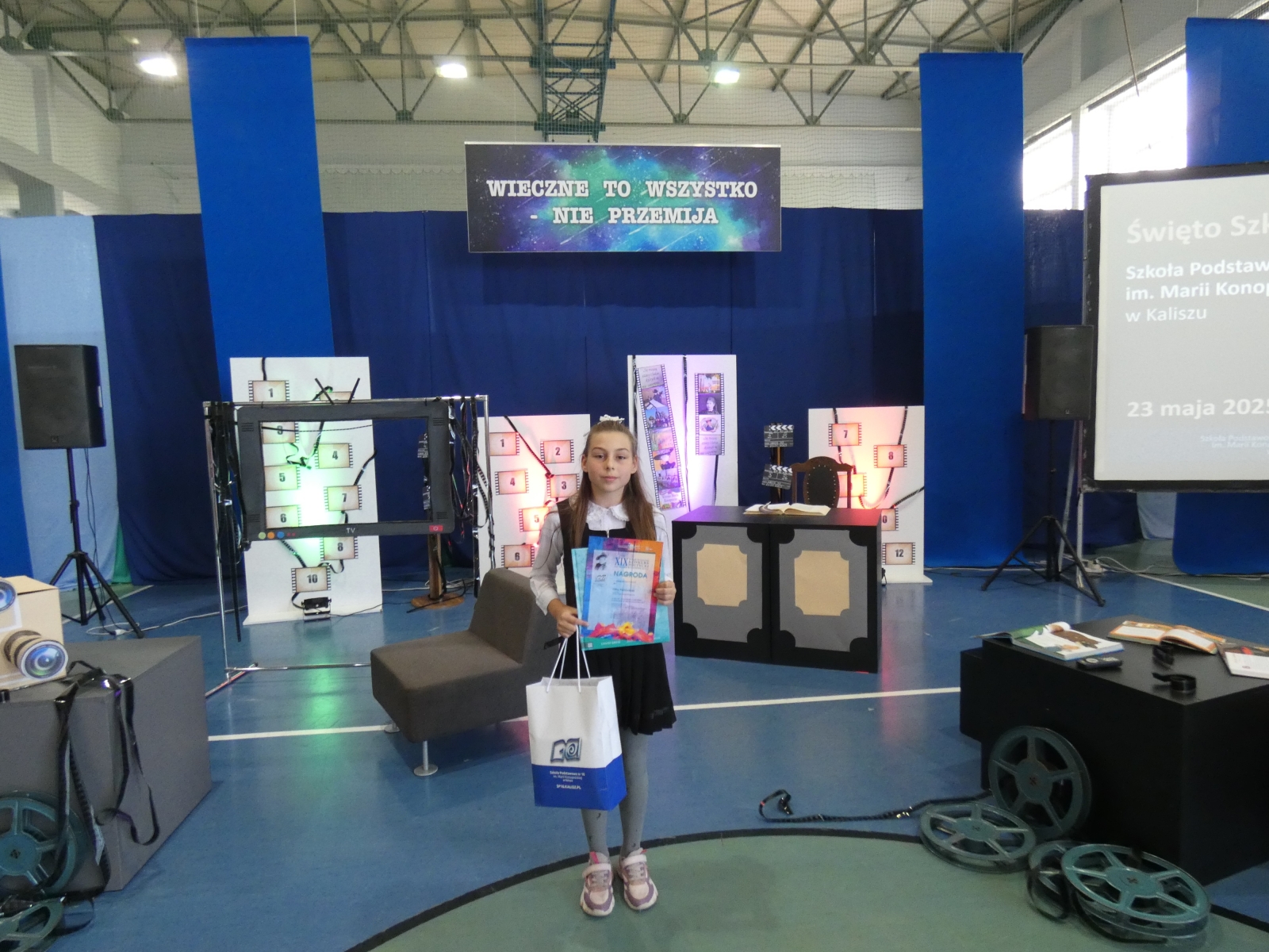 Laureatka konkursu otrzymała pamiątkowy dyplom oraz atrakcyjne upominki. Wraz ze swoją wychowawczynią miała okazję obejrzeć program artystyczny przygotowany przez uczniów Szkoły Podstawowej nr 10, zwiedzić piękną placówkę oraz wziąć udział w słodkim poczęstunku na zakończenie uroczystości.