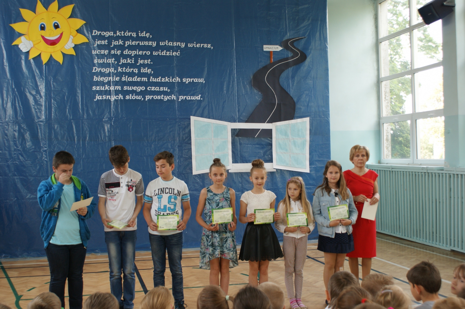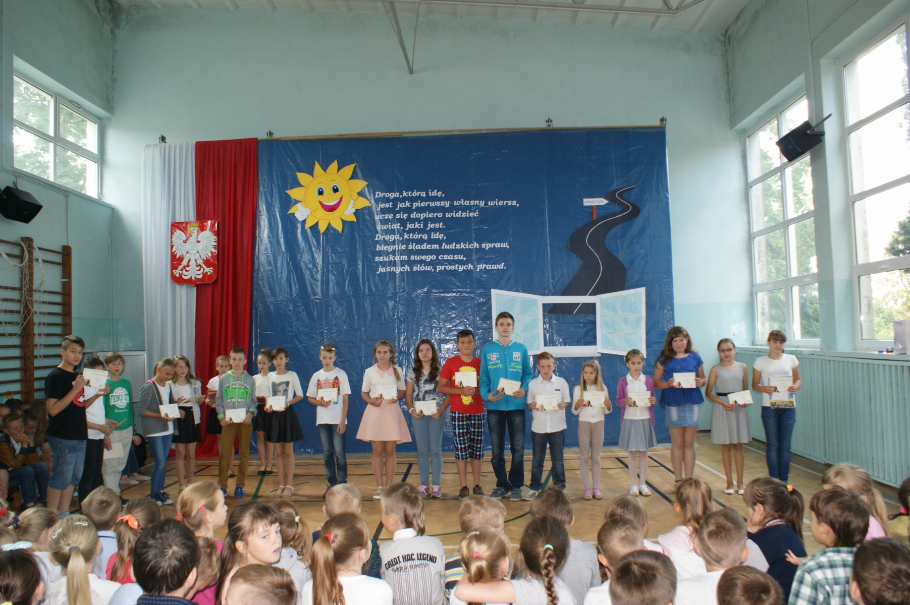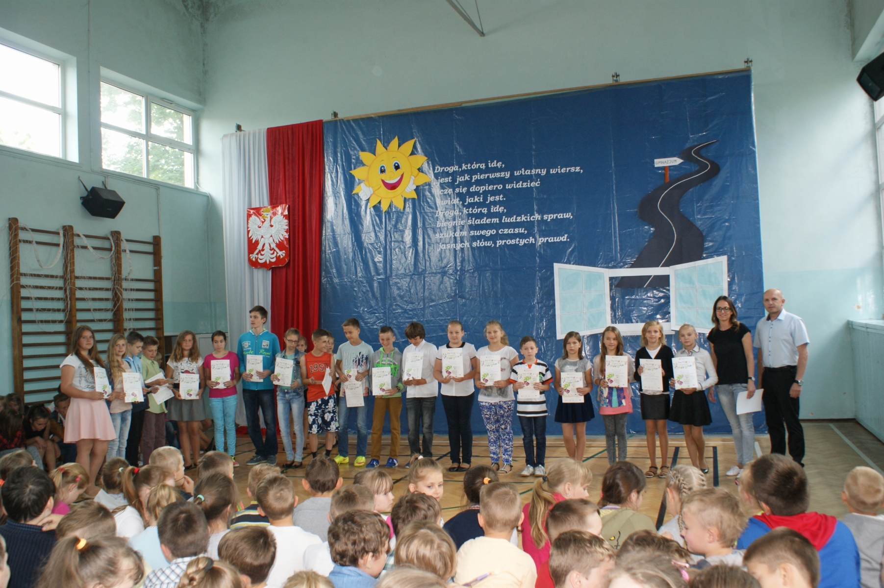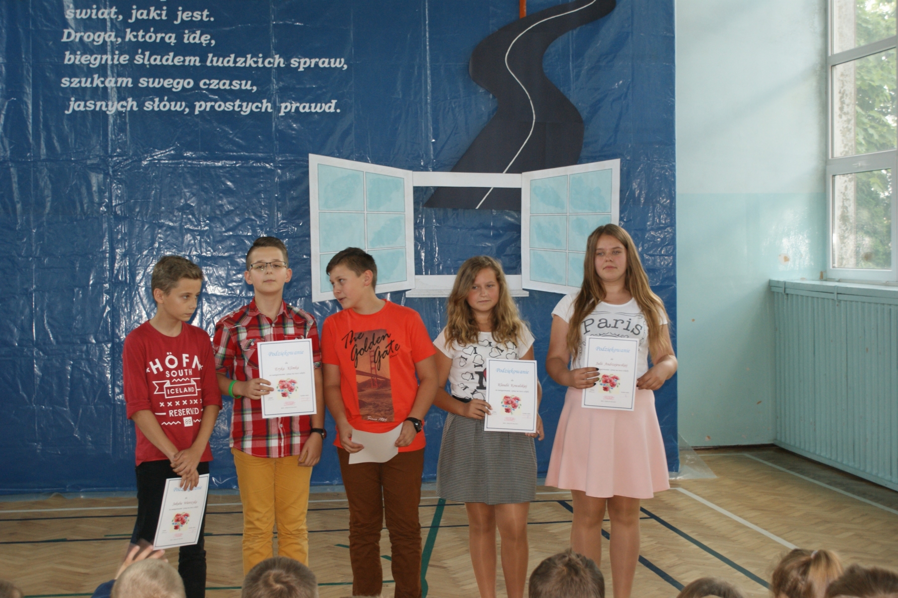Pani Justyna Balcerzak dokonała podsumowania działalności Szkolnej Kasy Oszczędnościowej. Dodatkowo podziękowała uczniom klasy VIb pracującym na rzecz szkolnego sklepiku Smako-Myk. Ponadto, pani Emilia Stefaniak podziękowała uczniom za aktywny udział w pracy koła plastycznego i przekazała upominki i dyplomy. Pani Julita Muszalska oraz pan Jacek Harasny wręczyli dyplomy uczestnikom projektu „Cyfrowa Dziecięca Encyklopedia Wielkopolan.