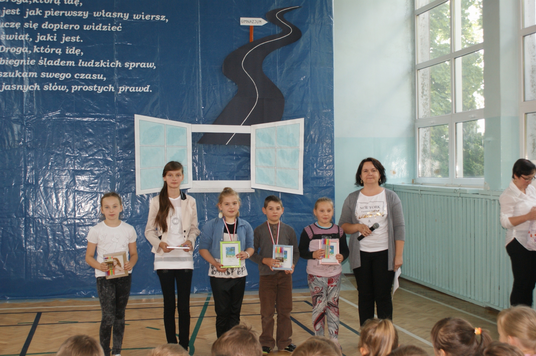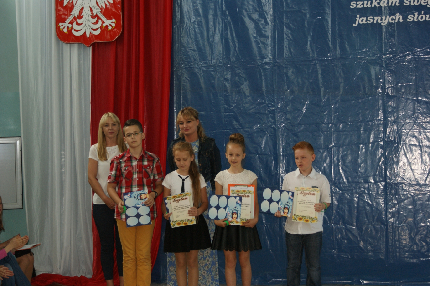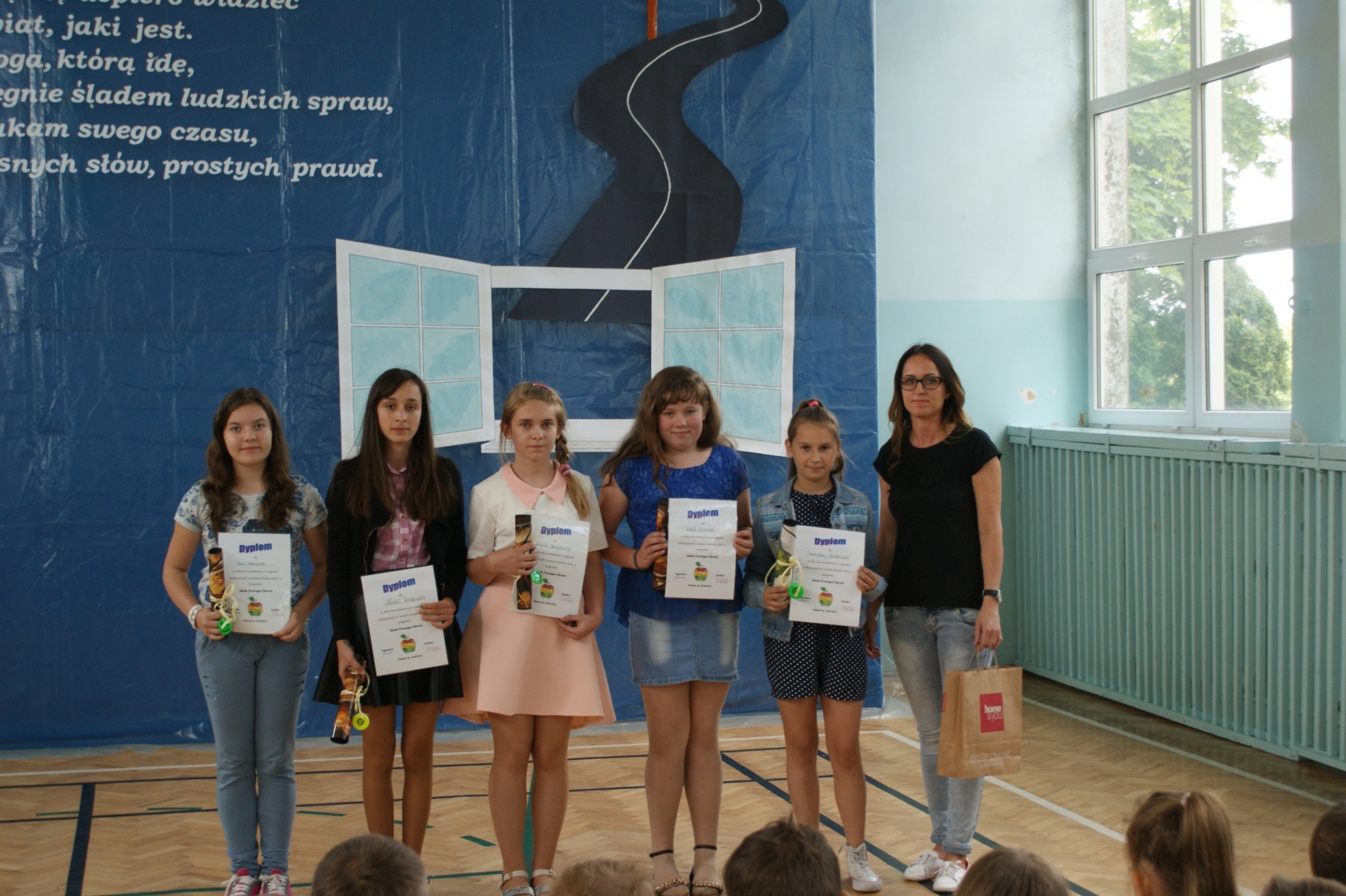 Opiekunowie SU: pani Ewelina Czerniak i pani Karolina Iwańska podziękowały i wręczyły dyplomy oraz upominki przedstawicielom Samorządu Uczniowskiego. Pani katechetka – Małgorzata Przybylak przekazała dyplomy udziału w konkursie „Olimpus” - wiedzy o życiu Jana Pawła II oraz Powiatowego Przeglądu Twórczości Katolickiej. Ponadto, pani Teresa Klimt dokonała podsumowania czytelnictwa w naszej szkole nagradzając najlepszych czytelników w klasach I-VI.