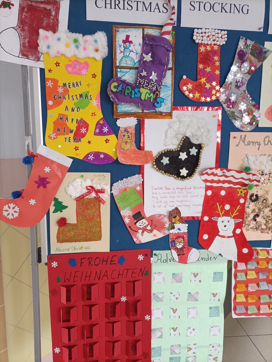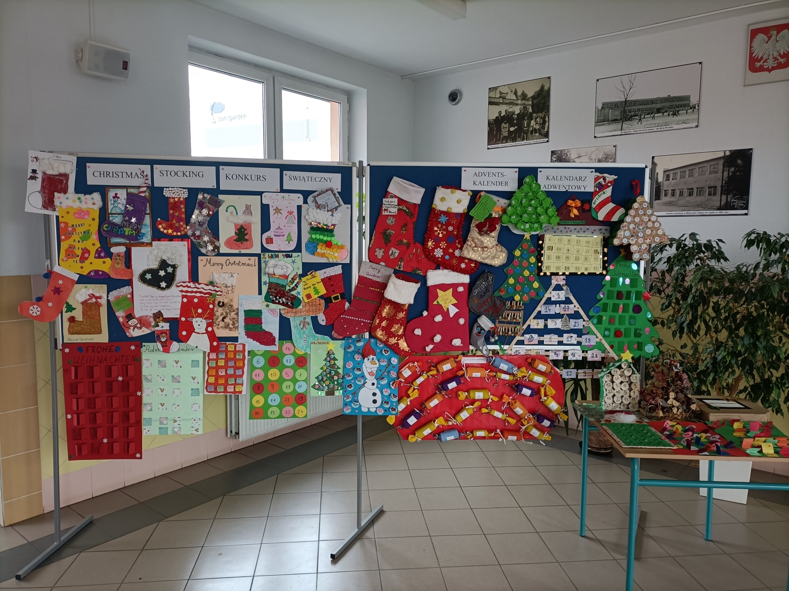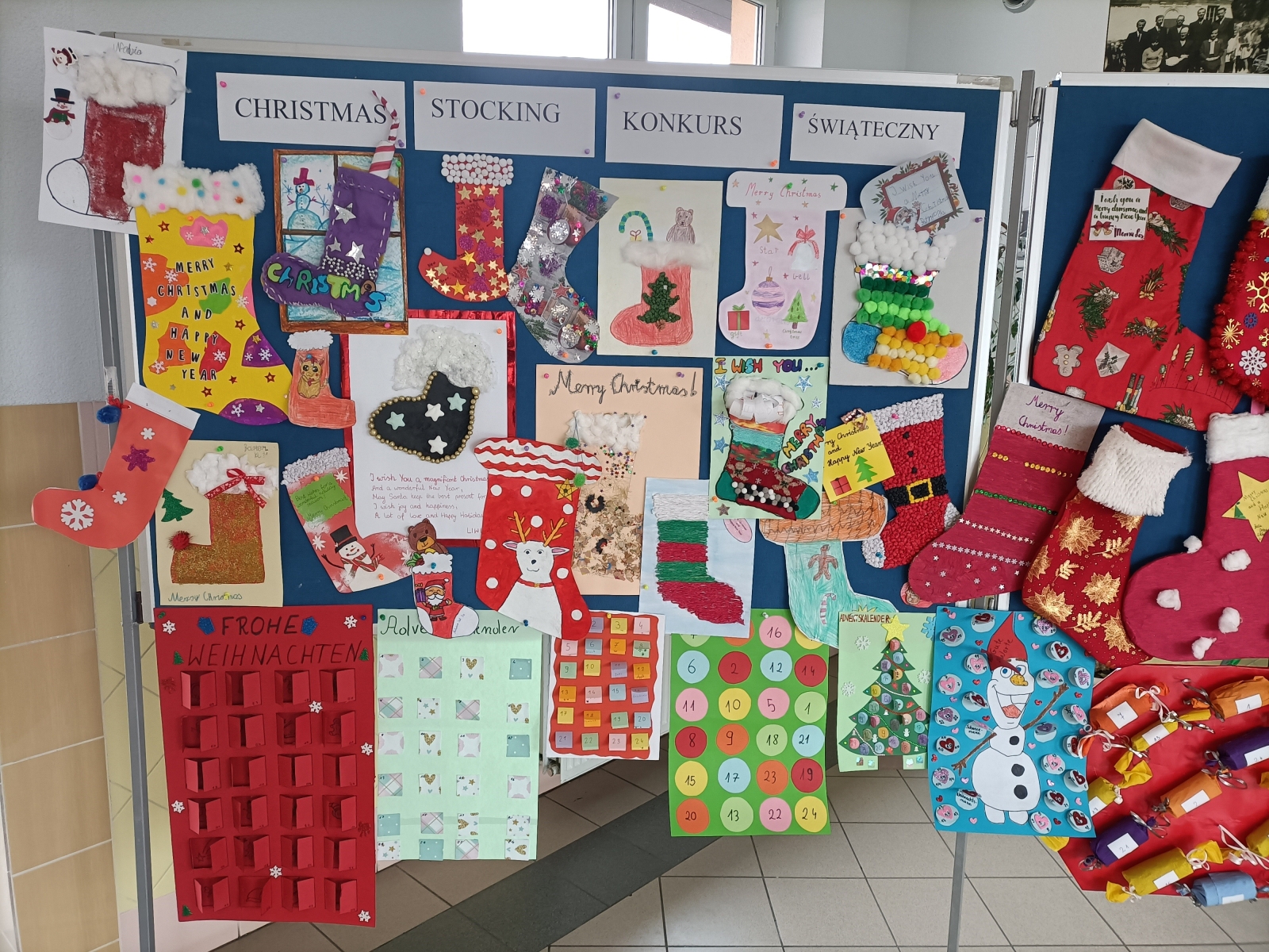 Zadaniem konkursu z języka angielskiego 'Christmas Stocking' było wykonanie skarpety świątecznej techniką dowolną oraz dołączenie życzeń świątecznych w języku angielskim. Natomiast zadaniem konkursowym z języka niemieckiego 'Adventskalendar' było wykonanie kalendarza adwentowego z zastosowywaniem słownictwa świątecznego.