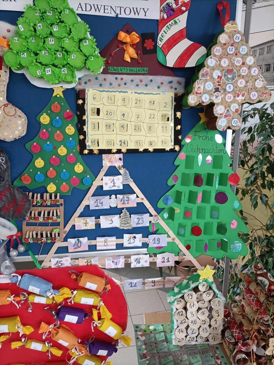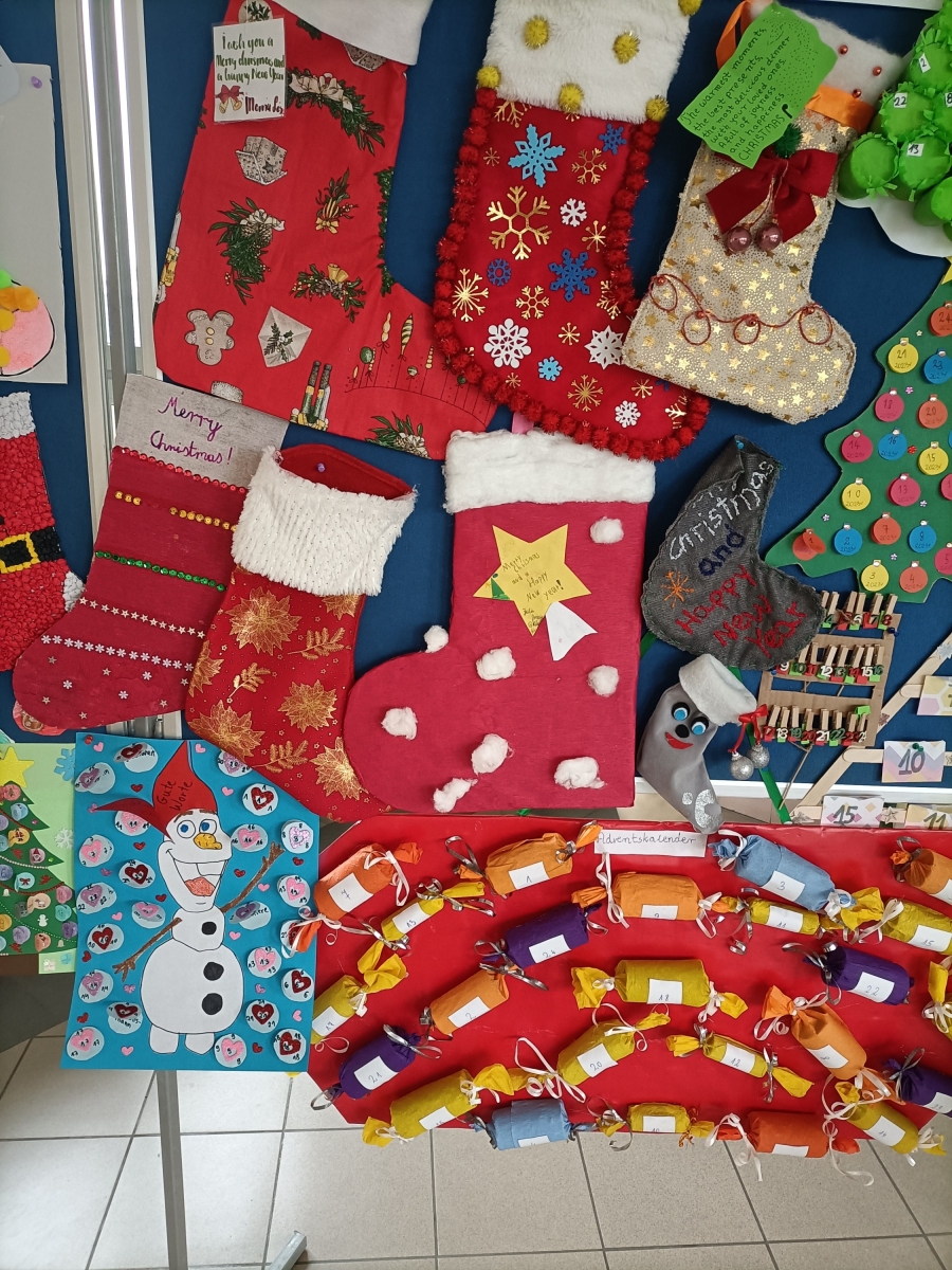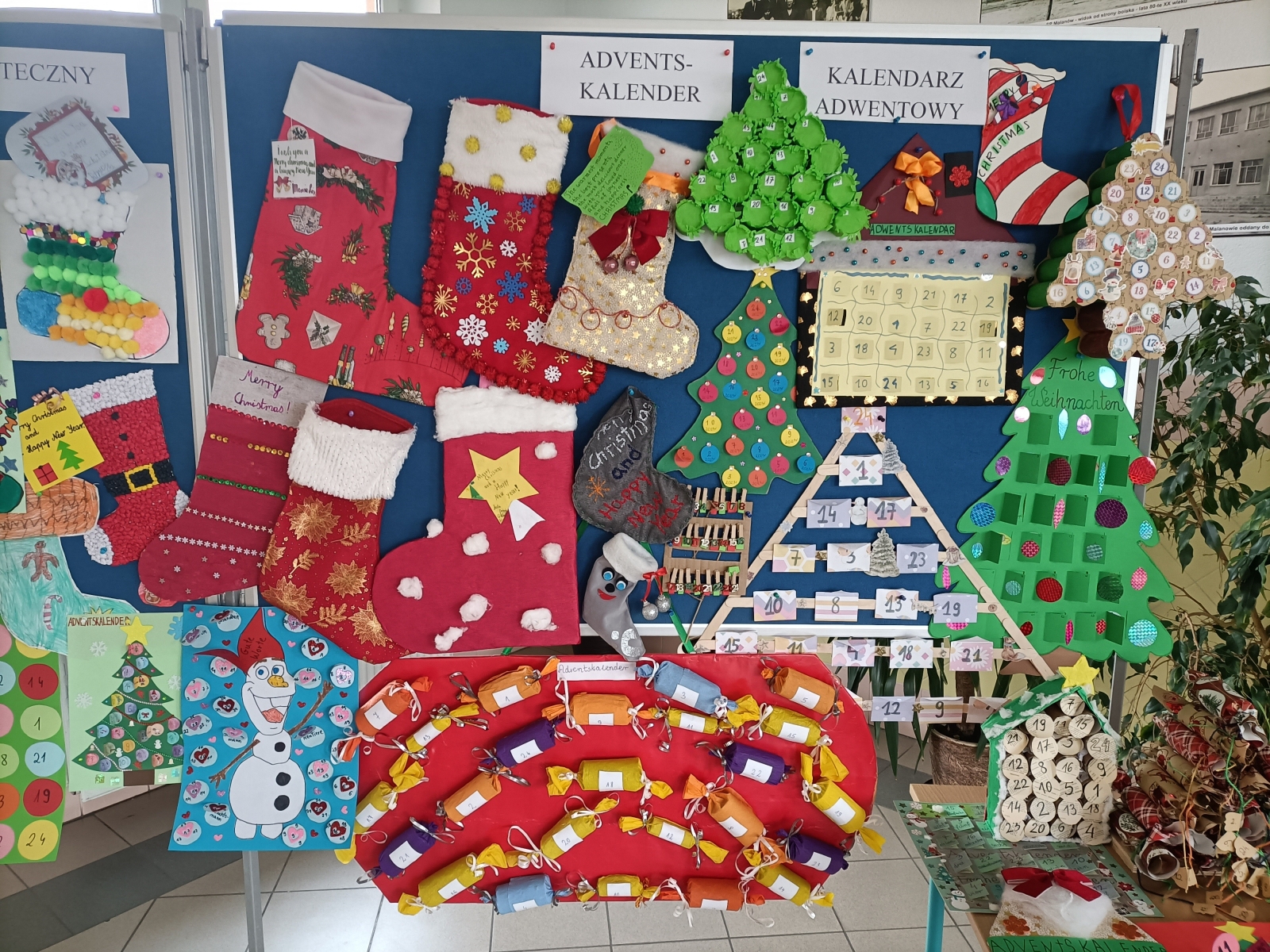 Zadaniem konkursu z języka angielskiego 'Christmas Stocking' było wykonanie skarpety świątecznej techniką dowolną oraz dołączenie życzeń świątecznych w języku angielskim. Natomiast zadaniem konkursowym z języka niemieckiego 'Adventskalendar' było wykonanie kalendarza adwentowego z zastosowywaniem słownictwa świątecznego.