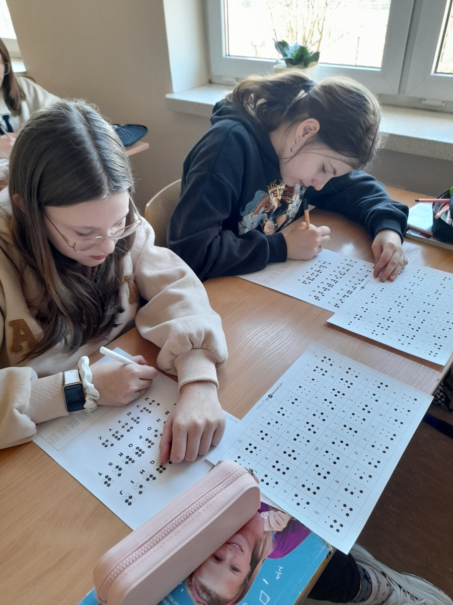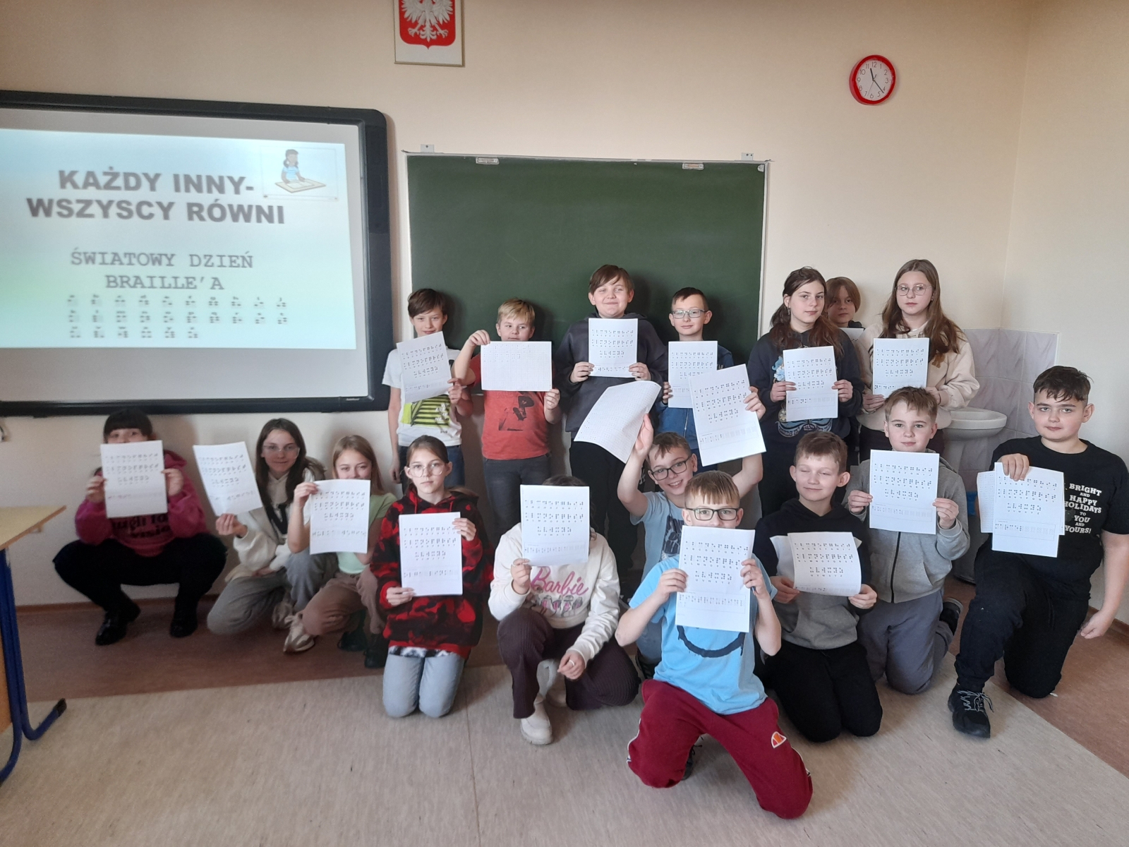 W ramach projektu edukacyjno – społecznego Każdy inny, wszyscy równi, 4 stycznia obchodziliśmy Światowy Dzień Braille’a. Data ta upamiętnia rocznicę urodzin Ludwika Braille’a – twórcy alfabetu dla osób niewidomych. Wspomniany alfabet składa się ze znaków będących kombinacją sześciu wypukłych punktów ułożonych w dwóch kolumnach, po trzy punkty w każdej. Warto pamiętać, że na całym świecie żyje 39 milionów osób niewidomych, a 253 milionów ma schorzenia wzroku. Dzięki alfabetowi Braille’a osoby te mogą czytać te same książki i czasopisma, co inni, sporządzać notatki, zapisywać numery telefonów czy odczytywać nazwy leków, umieszczonych na opakowaniach.