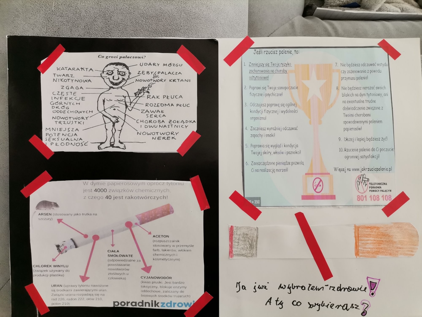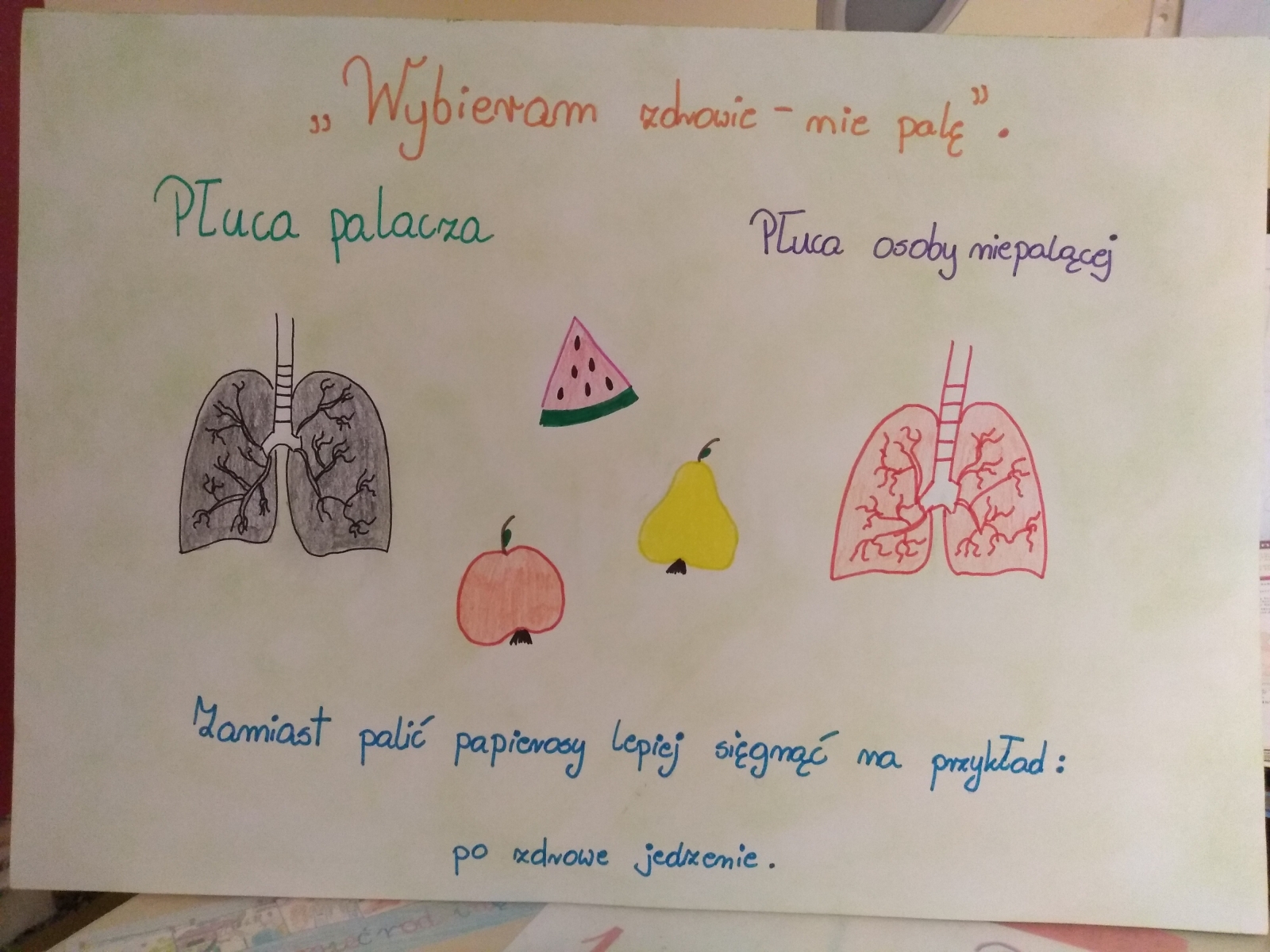W ramach obchodów „Światowego Dnia Rzucania Palenia Tytoniu” uczniowie Szkoły Podstawowej w Malanowie wzięli udziału w dwóch konkursach profilaktycznych związanych z tą tematyką. Konkurs plastyczny polegał na wykonaniu plakatu nawiązującego do hasła: „Wybieram zdrowie – nie palę”. Natomiast w konkursie literackim zadaniem uczestników było napisanie krótkiej pracy w formie: listu do kolegi/koleżanki, opowiadania lub scenki,która będzie dotyczyła problematyki związanej ze szkodliwością palenia papierosów.