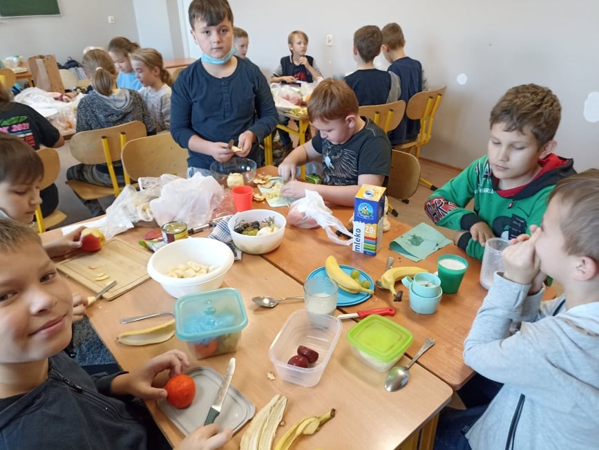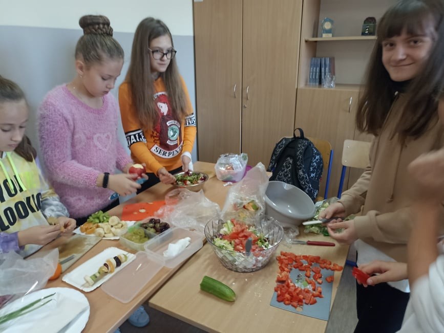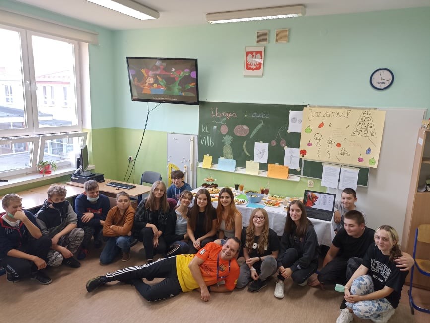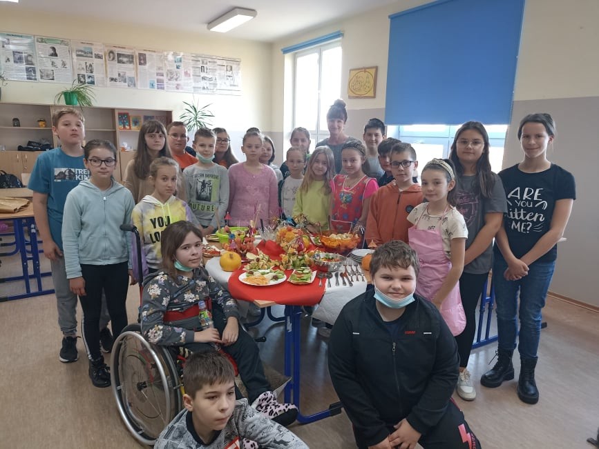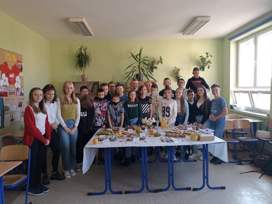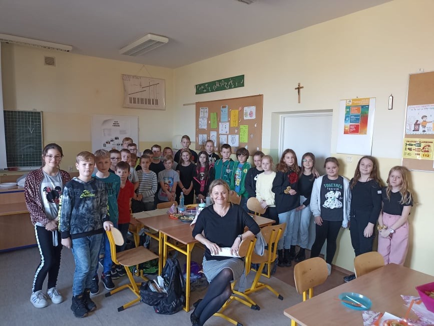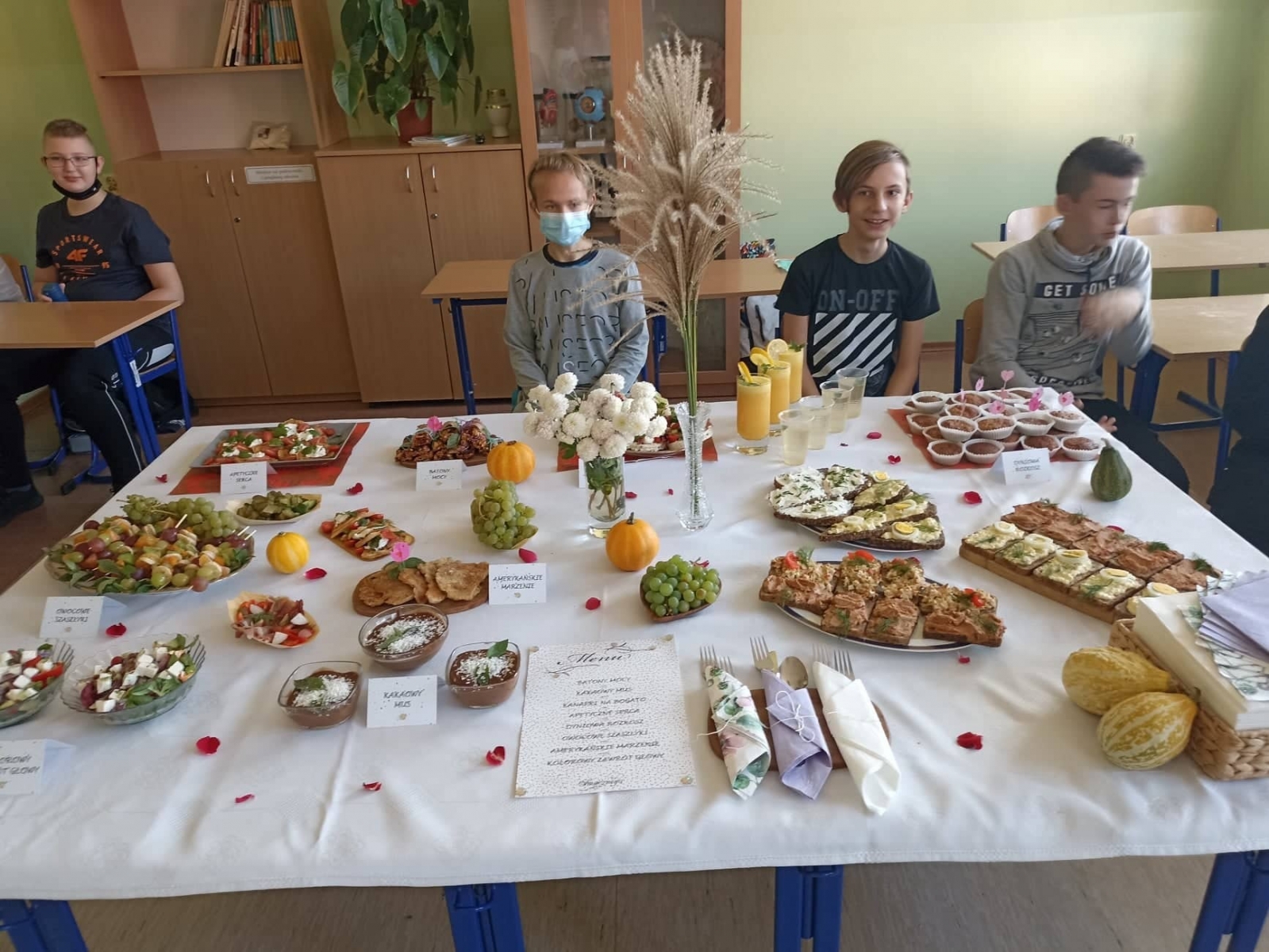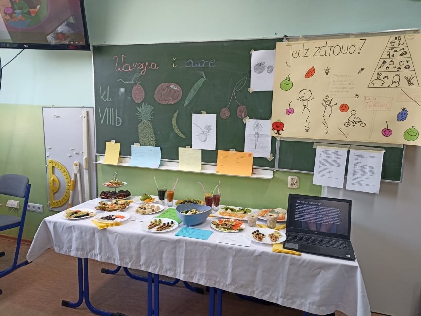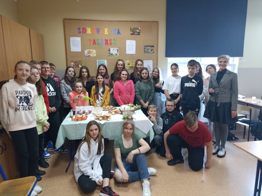 Dnia 28 października, w związku z realizacją programu edukacyjnego „Trzymaj Formę” oraz przypadającym 24 października Światowym Dniem Walki z Otyłością, w naszej szkole odbyła się impreza profilaktyczna, której celem było kształtowanie nawyków prozdrowotnych wśród dzieci i młodzieży, a przede wszystkim promocja zdrowegoi aktywnego stylu życia. W imprezie uczestniczyli uczniowie klas4-8 wrazz nauczycielami.Początek imprezy otworzył międzyklasowy konkurs na zdrowe przekąski, podczas którego nasi uczniowie wykazali się dużą kreatywnością i przedstawili bardzo ciekawe propozycje zdrowych przysmaków. Całość oceniało jury w składzie: Karolina Niespodziańska, Małgorzata Cieślak, Karolina Gałężewska.Uczniowie oceniani byliw czterech kategoriach: kreatywność, estetyka wykonania przekąski, dekoracja stołu, gazetka oraz omówienie potrawy pod względem wartości odżywczych. Po ciężkich naradach jury wyłoniło zwycięskie klasy: klasa IVa, Va, VI, VIIb, VIIIb.Jednak ze względu na to, że rywalizacja była bardzo wyrównana, wszystkie klasy zasłużyły na nagrodę.