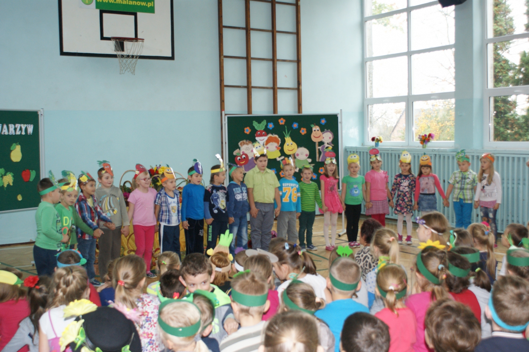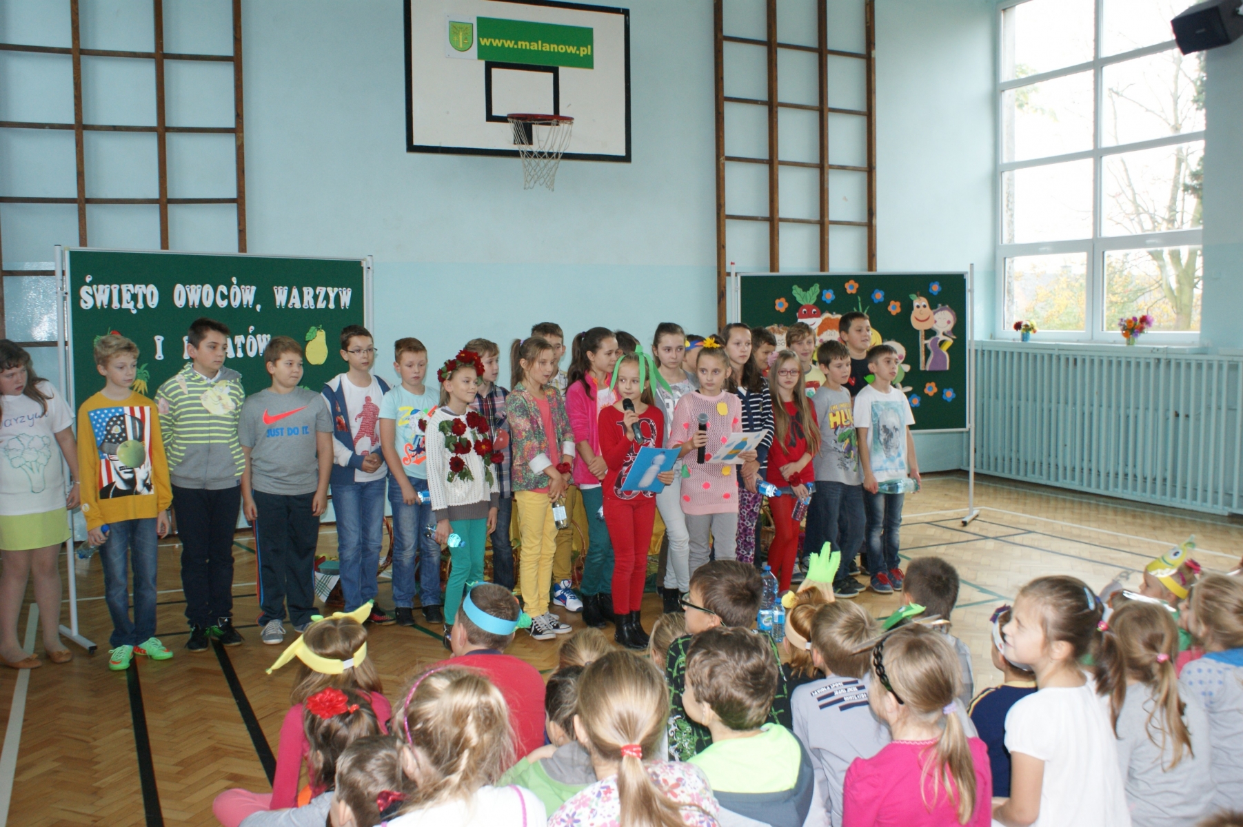 To nowe święto dnia 2 października na stałe wpisało się do harmonogramu imprez i uroczystości naszej szkoły. Celem imprezy było propagowanie zdrowego stylu życia, zachęcanie do codziennego spożywania owoców i warzyw. To jedno z działań jakie podejmowane są w szkole w ramach udziału w Programie Szkół Promujących Zdrowie. Tego dnia każdy uczeń przyniósł do szkoły owoc, warzywo lub kwiat oraz musiał posiadać w swoim stroju element związany tematycznie z tym świętem. Uczniowie kilku klas w pięknych strojach i z koszami pełnymi owoców, warzyw i kwiatów wyruszyli na przemarsz ulicami Malanowa, wręczając przechodniom zdrowe przysmaki. Po przemarszu wszystkie klasy spotkały się w sali gimnastycznej w celu prezentacji wcześniej przygotowanych przedstawień i skeczy związanych ze zdrowym stylem życia.