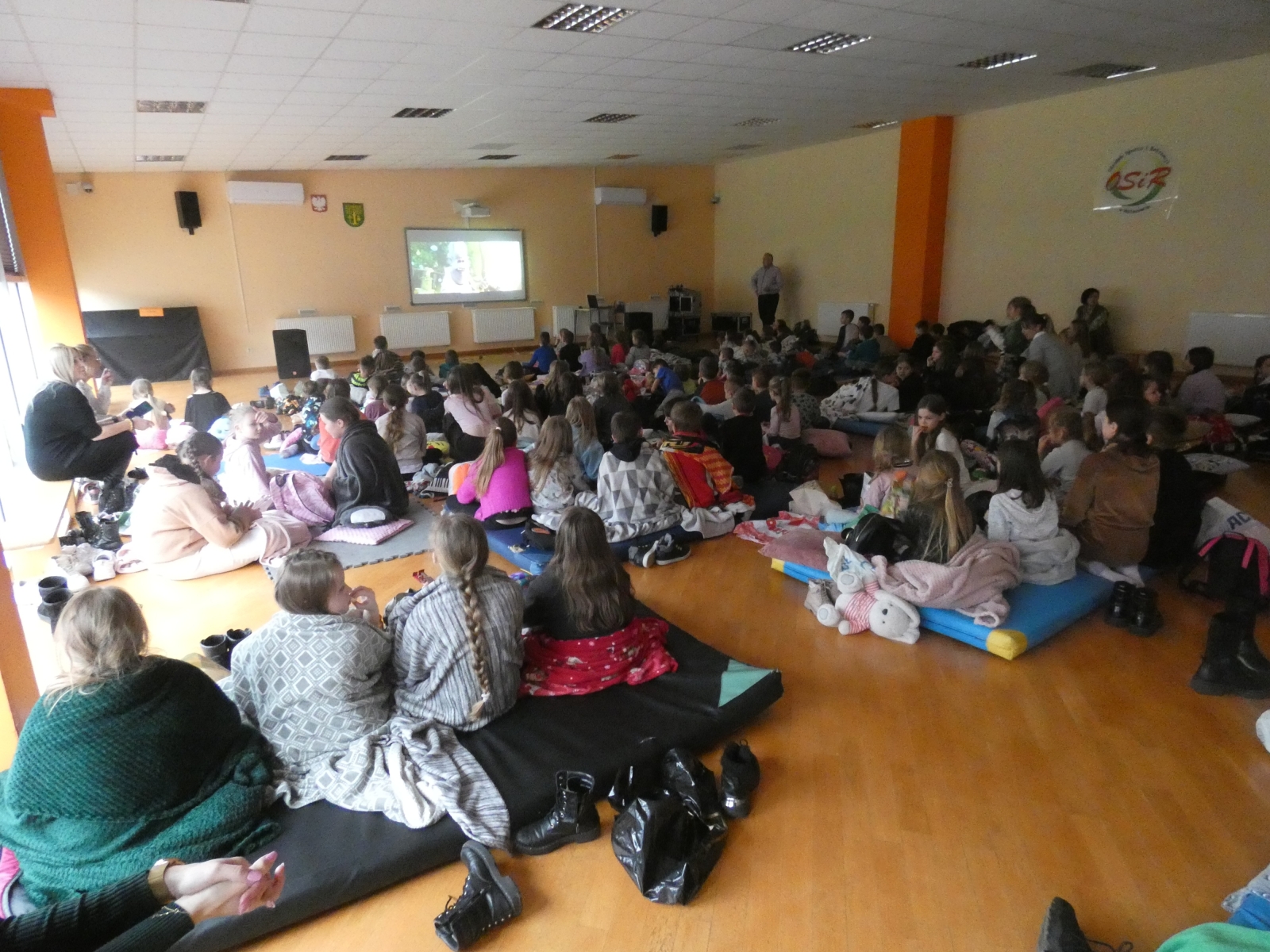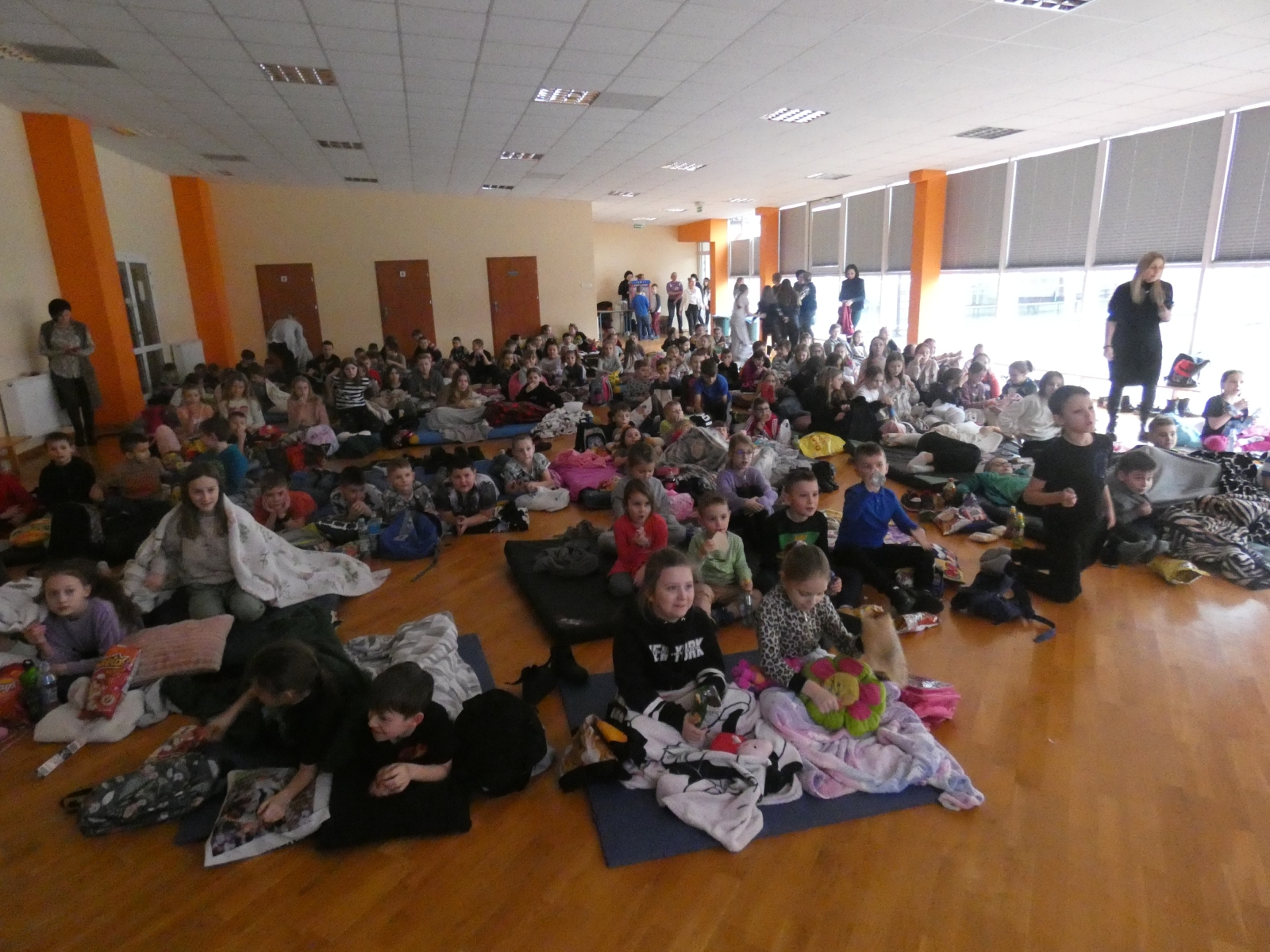 W środę 7 lutego w naszej szkole odbył się wieczór filmowy, w którym wzięli udział uczniowie wszystkich klas podzieleni na dwie grupy wiekowe. Była to okazja do obejrzenia filmów, ale przede wszystkim spotkanie integrujące społeczność szkolną. Dzieci z klas I-IV obejrzały bajkę „Trolle”, natomiast klasy V-VIII film „Spiderman”. Uczniowie mogli przynieść poduszki, koce, przekąski i w swobodnej atmosferze spotkać się z kolegami, porozmawiać i troszkę „powygłupiać”. Rada Rodziców zapewniła dla wszystkich napoje oraz pyszny popcorn. Sala szklana zamieniła się tego wieczoru w salę kinową. Atmosfera była wyjątkowa. Dziękujemy wszystkim uczniom za udział, a nauczycielom za opiekę.