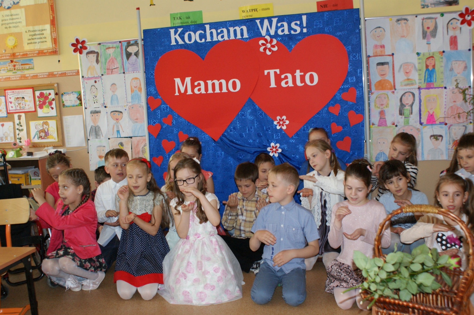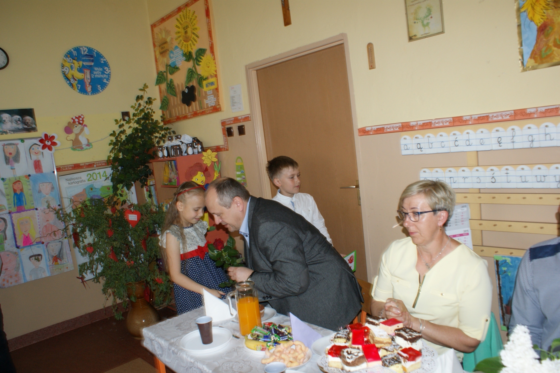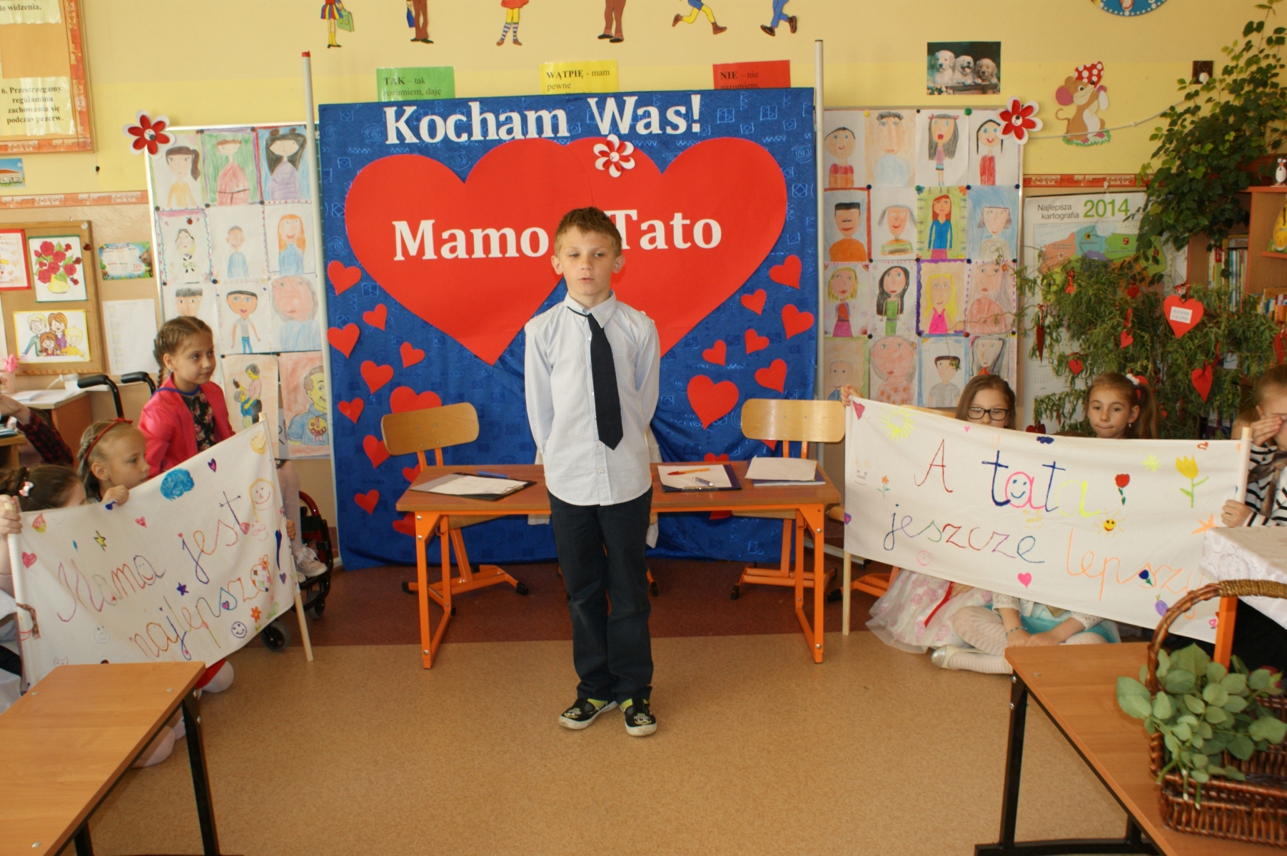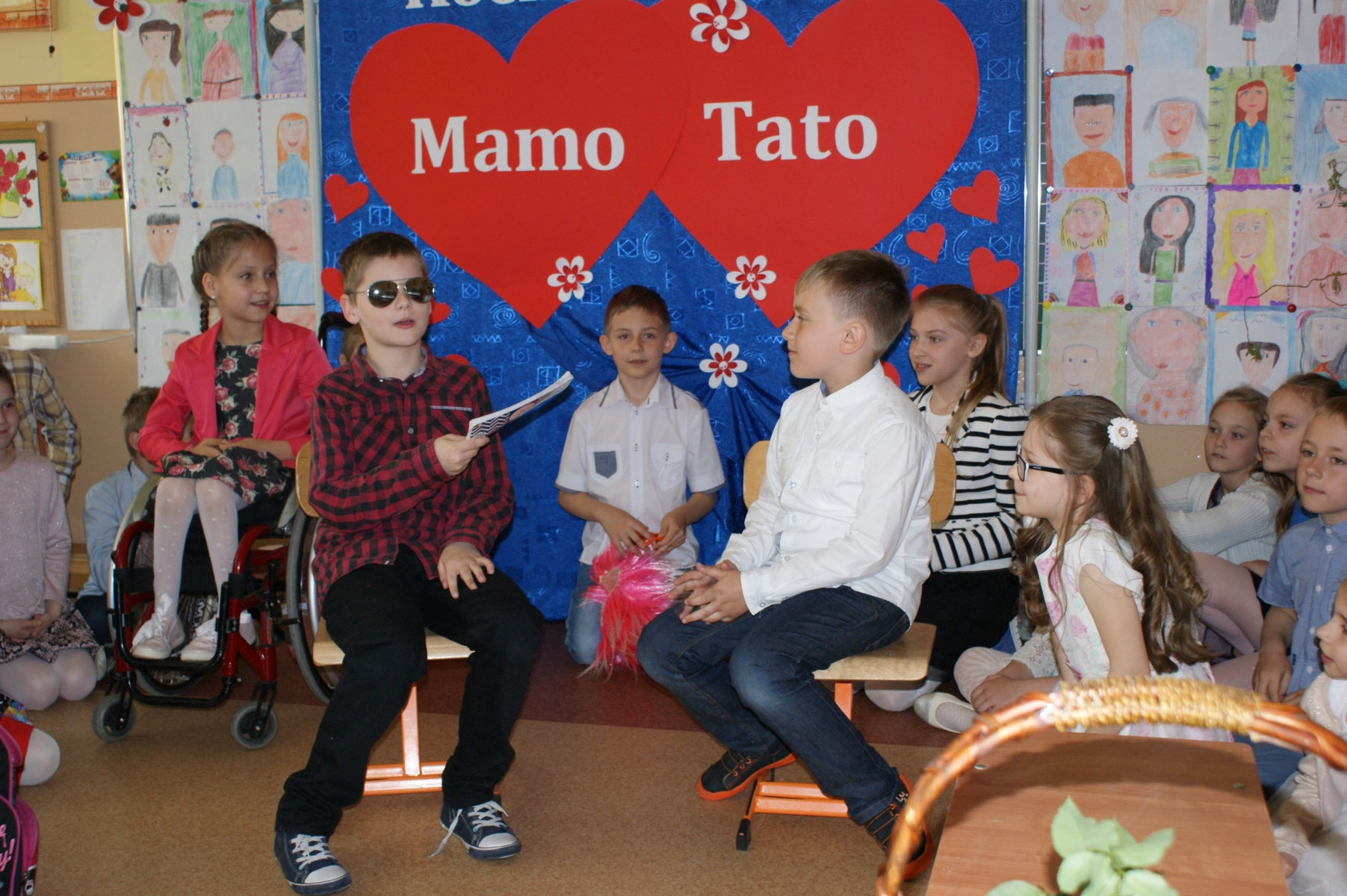 Uczniowie w godzinach dopołudniowych gościli w swojej klasie mamy i licznie zebranych tatusiów. W uroczystości uczestniczył również pan Dyrektor Marek Nowicki. Na początku wychowawczyni przywitała gości i złożyła życzenia Rodzicom z okazji ich święta. Następnie drugoklasiści zaprezentowali swój program artystyczny. W pierwszej części rodzice wysłuchali wzruszających wierszy i piosenek. Dopełnieniem tej części było wręczenie róż. W drugiej części obejrzeli humorystyczną scenkę „Kto ważniejszy”, w której uczniowie chwalili zalety mam lub tatusiów. Na zakończenie dzieci wręczyły laurki. W kolejnej części pociechy zaprezentowały kilka zabawnych scenek z życia rodzinnego i szkolnego. Po słodkim poczęstunku, przygotowanym przez wspaniałe mamy, odbyły się zabawy przy muzyce i konkursy z udziałem mam, tatusiów i ich dzieci. Dużo radości sprawiły konkursy: „Łamańce językowe”, „Bez słów”, „Rozpoznaj osobę”. Spotkanie upłynęło w miłej i serdecznej atmosferze.