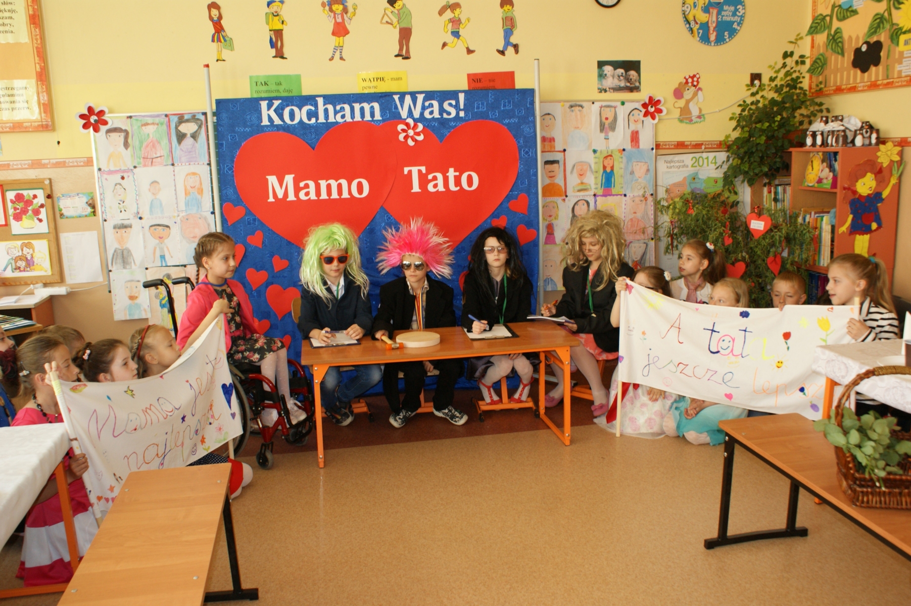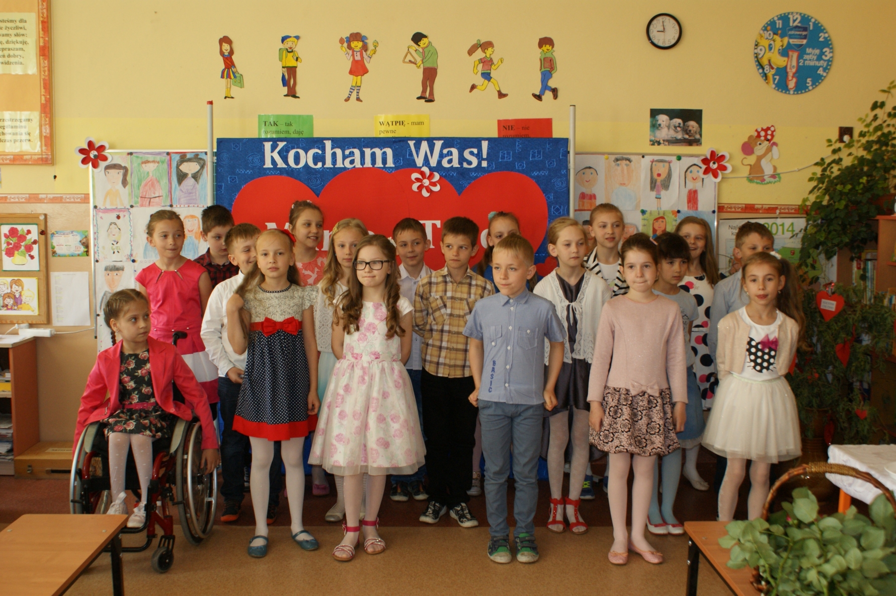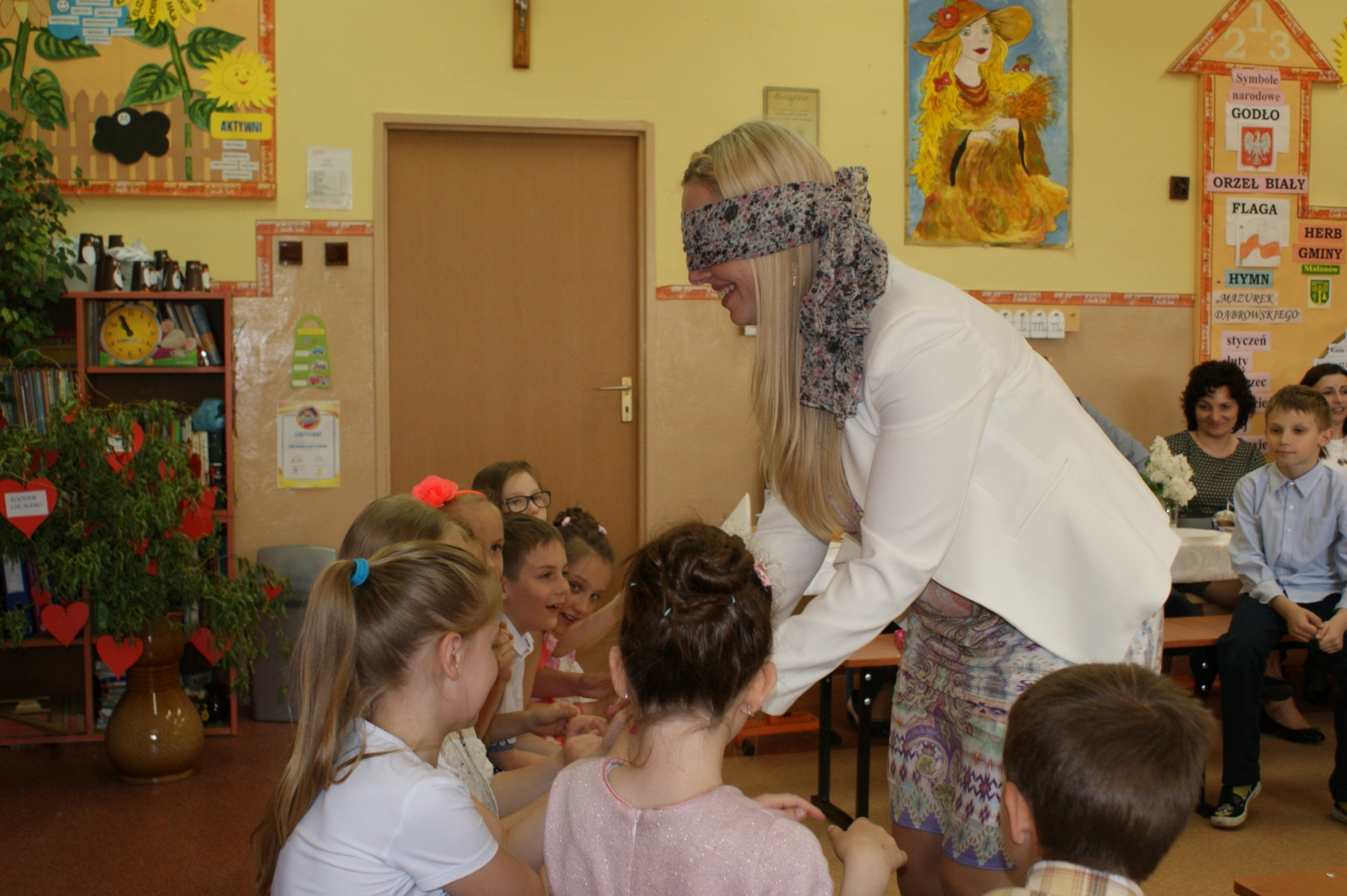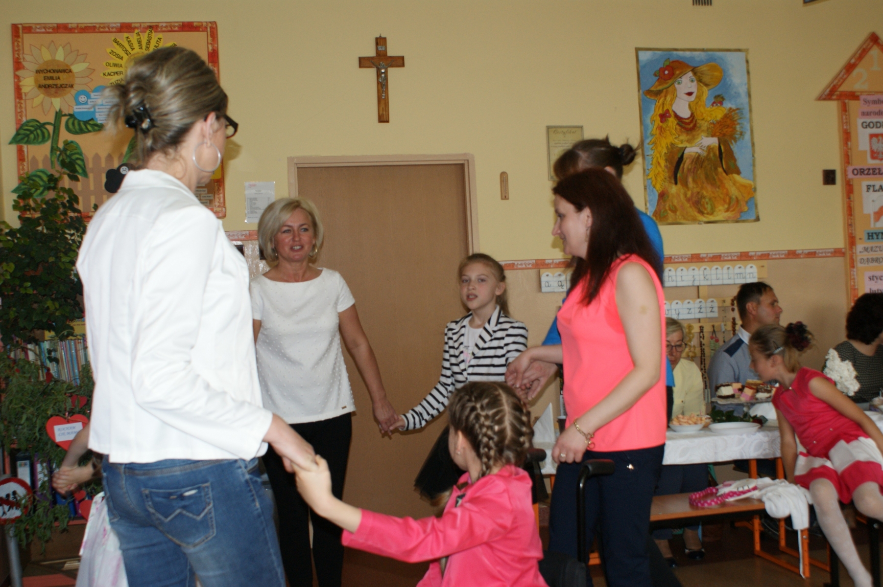 Uczniowie w godzinach dopołudniowych gościli w swojej klasie mamy i licznie zebranych tatusiów. W uroczystości uczestniczył również pan Dyrektor Marek Nowicki. Na początku wychowawczyni przywitała gości i złożyła życzenia Rodzicom z okazji ich święta. Następnie drugoklasiści zaprezentowali swój program artystyczny. W pierwszej części rodzice wysłuchali wzruszających wierszy i piosenek. Dopełnieniem tej części było wręczenie róż. W drugiej części obejrzeli humorystyczną scenkę „Kto ważniejszy”, w której uczniowie chwalili zalety mam lub tatusiów. Na zakończenie dzieci wręczyły laurki. W kolejnej części pociechy zaprezentowały kilka zabawnych scenek z życia rodzinnego i szkolnego. Po słodkim poczęstunku, przygotowanym przez wspaniałe mamy, odbyły się zabawy przy muzyce i konkursy z udziałem mam, tatusiów i ich dzieci. Dużo radości sprawiły konkursy: „Łamańce językowe”, „Bez słów”, „Rozpoznaj osobę”. Spotkanie upłynęło w miłej i serdecznej atmosferze.