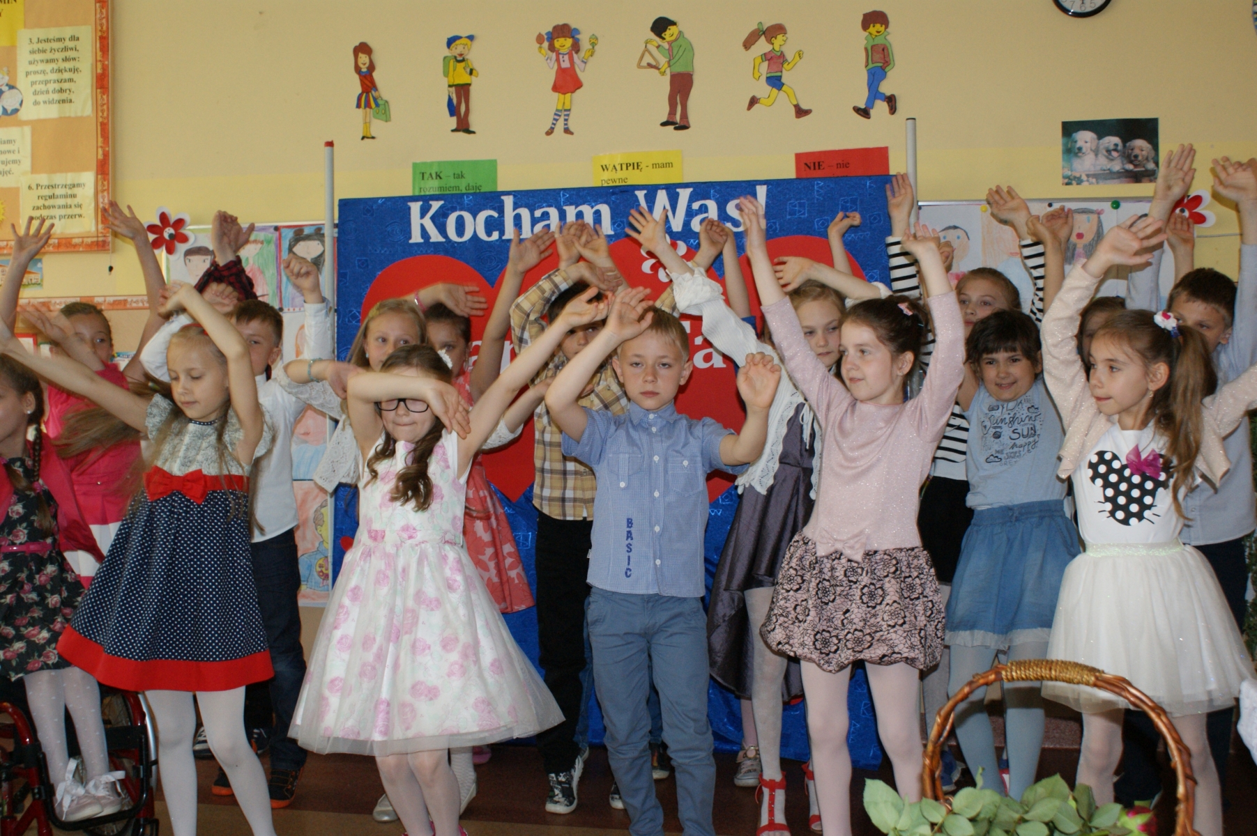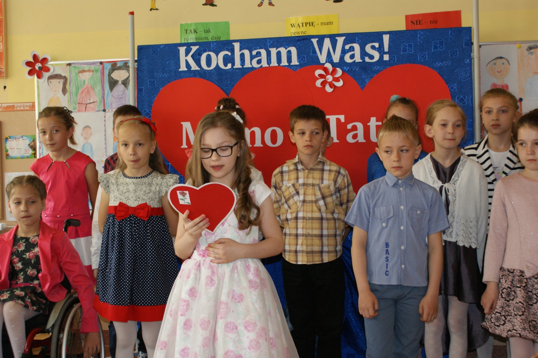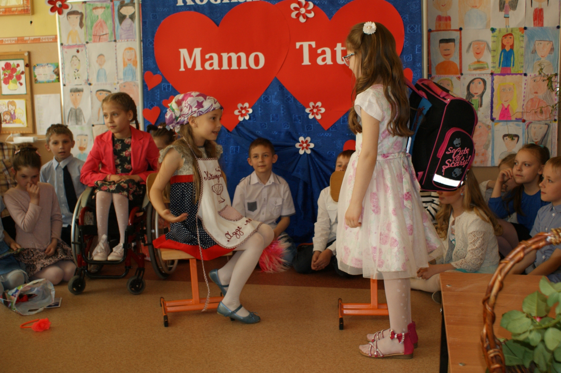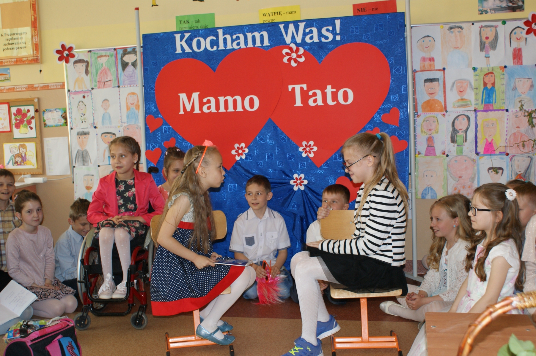 Uczniowie w godzinach dopołudniowych gościli w swojej klasie mamy i licznie zebranych tatusiów. W uroczystości uczestniczył również pan Dyrektor Marek Nowicki. Na początku wychowawczyni przywitała gości i złożyła życzenia Rodzicom z okazji ich święta. Następnie drugoklasiści zaprezentowali swój program artystyczny. W pierwszej części rodzice wysłuchali wzruszających wierszy i piosenek. Dopełnieniem tej części było wręczenie róż. W drugiej części obejrzeli humorystyczną scenkę „Kto ważniejszy”, w której uczniowie chwalili zalety mam lub tatusiów. Na zakończenie dzieci wręczyły laurki. W kolejnej części pociechy zaprezentowały kilka zabawnych scenek z życia rodzinnego i szkolnego. Po słodkim poczęstunku, przygotowanym przez wspaniałe mamy, odbyły się zabawy przy muzyce i konkursy z udziałem mam, tatusiów i ich dzieci. Dużo radości sprawiły konkursy: „Łamańce językowe”, „Bez słów”, „Rozpoznaj osobę”. Spotkanie upłynęło w miłej i serdecznej atmosferze.