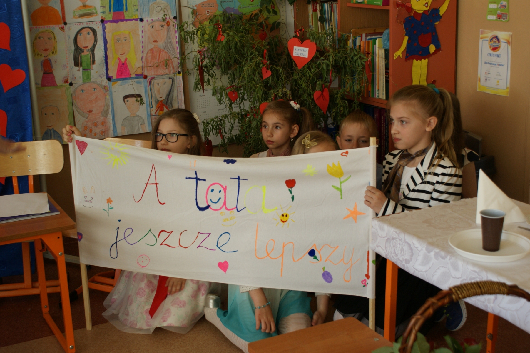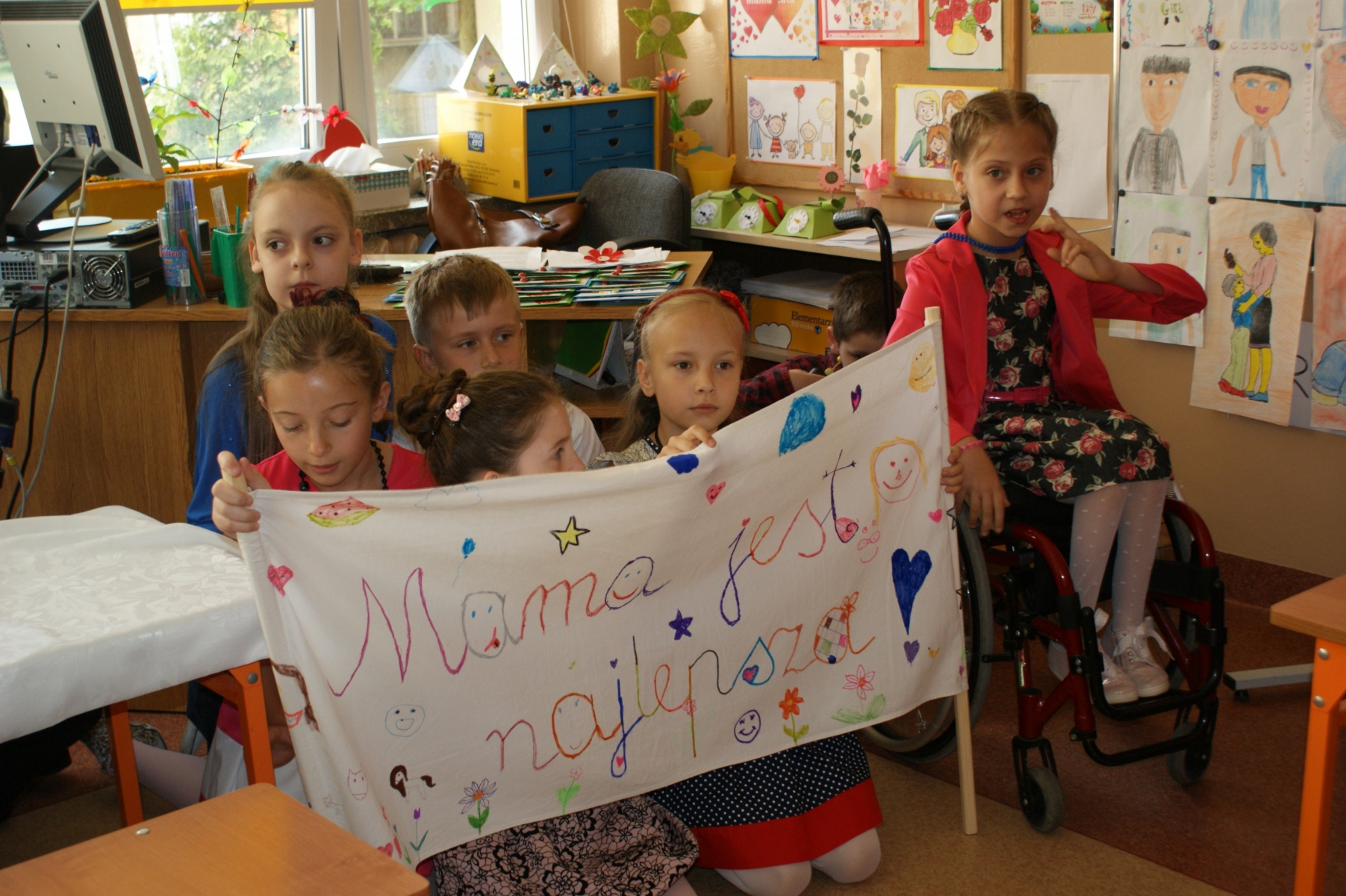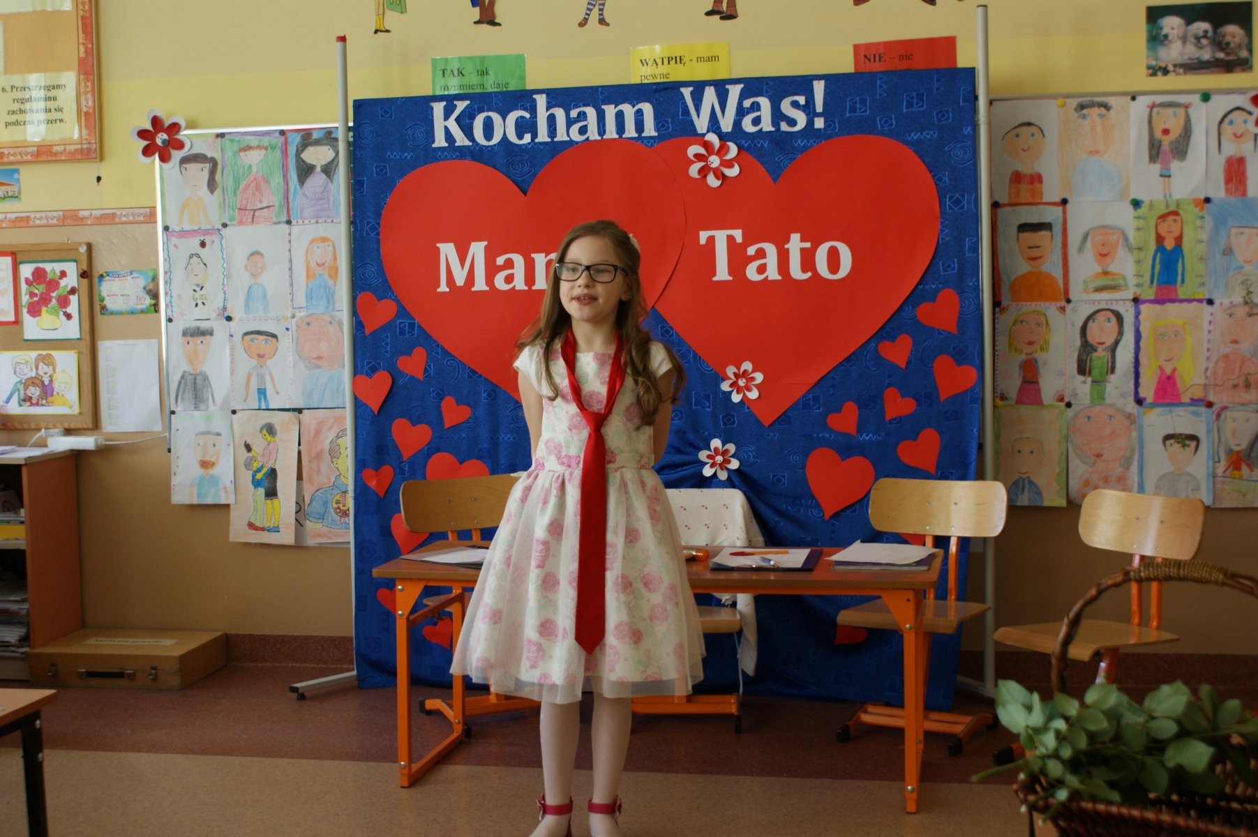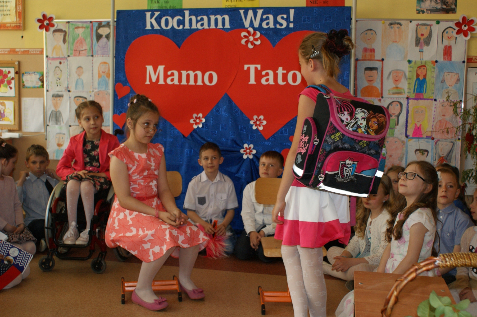 Uczniowie w godzinach dopołudniowych gościli w swojej klasie mamy i licznie zebranych tatusiów. W uroczystości uczestniczył również pan Dyrektor Marek Nowicki. Na początku wychowawczyni przywitała gości i złożyła życzenia Rodzicom z okazji ich święta. Następnie drugoklasiści zaprezentowali swój program artystyczny. W pierwszej części rodzice wysłuchali wzruszających wierszy i piosenek. Dopełnieniem tej części było wręczenie róż. W drugiej części obejrzeli humorystyczną scenkę „Kto ważniejszy”, w której uczniowie chwalili zalety mam lub tatusiów. Na zakończenie dzieci wręczyły laurki. W kolejnej części pociechy zaprezentowały kilka zabawnych scenek z życia rodzinnego i szkolnego. Po słodkim poczęstunku, przygotowanym przez wspaniałe mamy, odbyły się zabawy przy muzyce i konkursy z udziałem mam, tatusiów i ich dzieci. Dużo radości sprawiły konkursy: „Łamańce językowe”, „Bez słów”, „Rozpoznaj osobę”. Spotkanie upłynęło w miłej i serdecznej atmosferze.