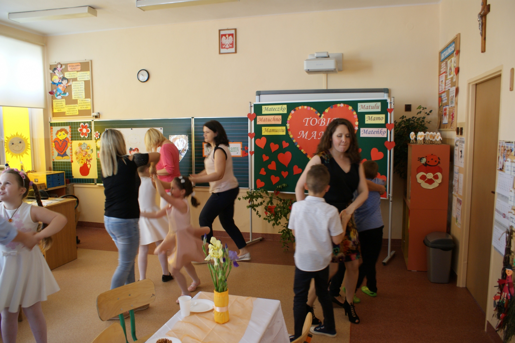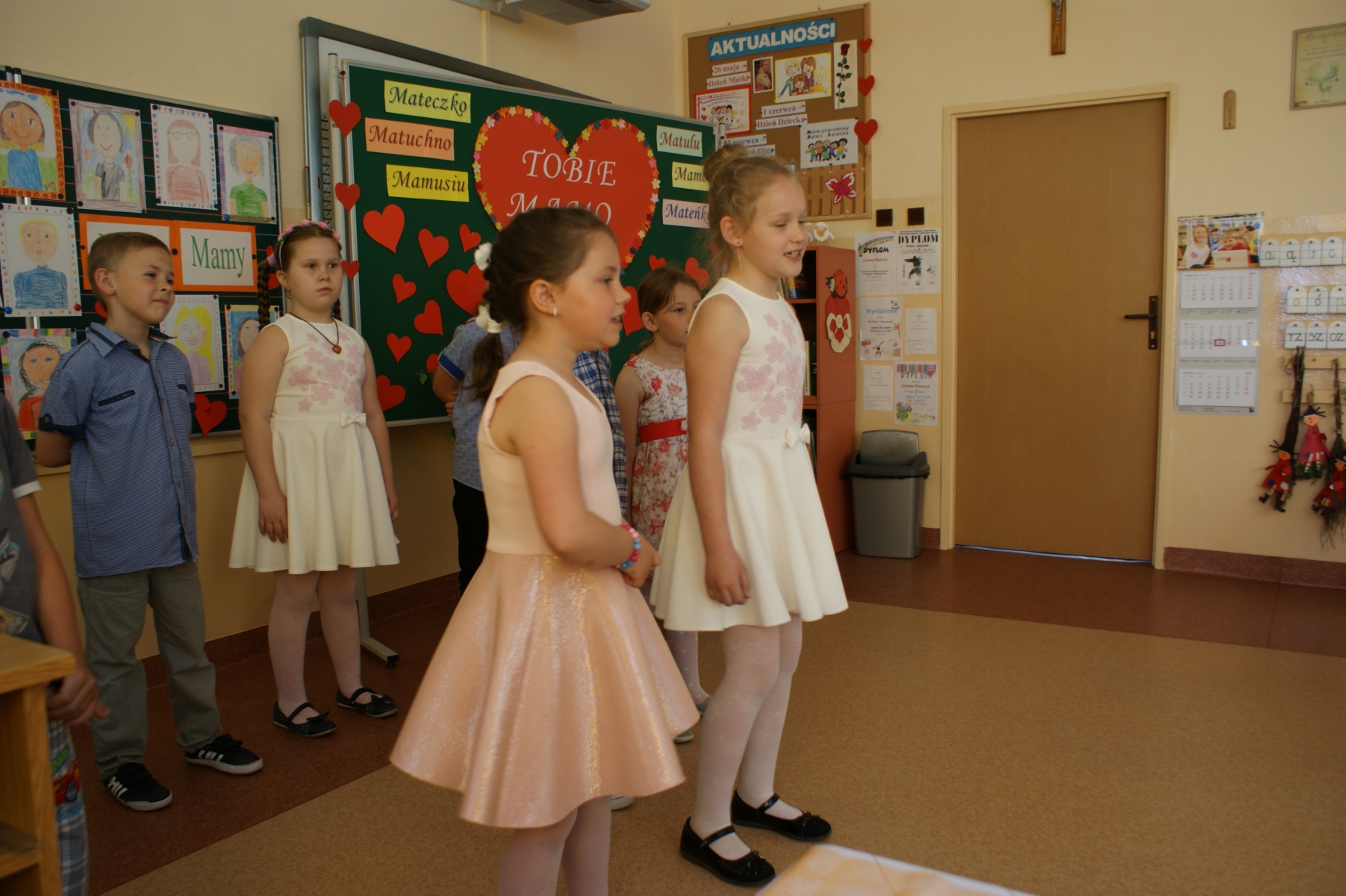 Na początku wychowawczyni przywitała gości i złożyła życzenia Mamom z okazji ich święta. Następnie pierwszoklasiści zaprezentowali przygotowany program artystyczny, w którym wyrazili miłość, wdzięczność i oddanie swoim mamom. Mamy wysłuchały wierszy, piosenek,