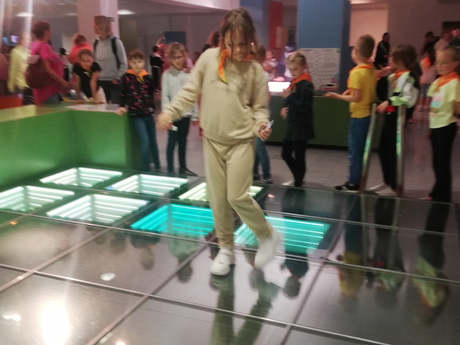 Kolejnym punktem wycieczki było Centrum Nauki – Młyn Wiedzy. Pobyt okazał się ogromną dawką wiedzy i zabawy. Stworzone w sposób interaktywny stanowiska pozwalały, aby dzieci mogły same, w bezpiecznych warunkach przeprowadzać doświadczenia i badać zjawiska z różnych dziedzin nauki. Kolejne piętra dostarczały nowych, coraz ciekawszych wrażeń, a czas tam spędzony minął bardzo szybko.