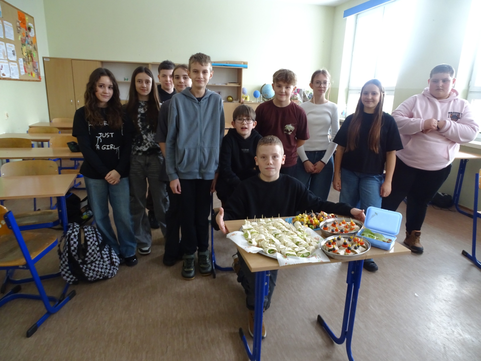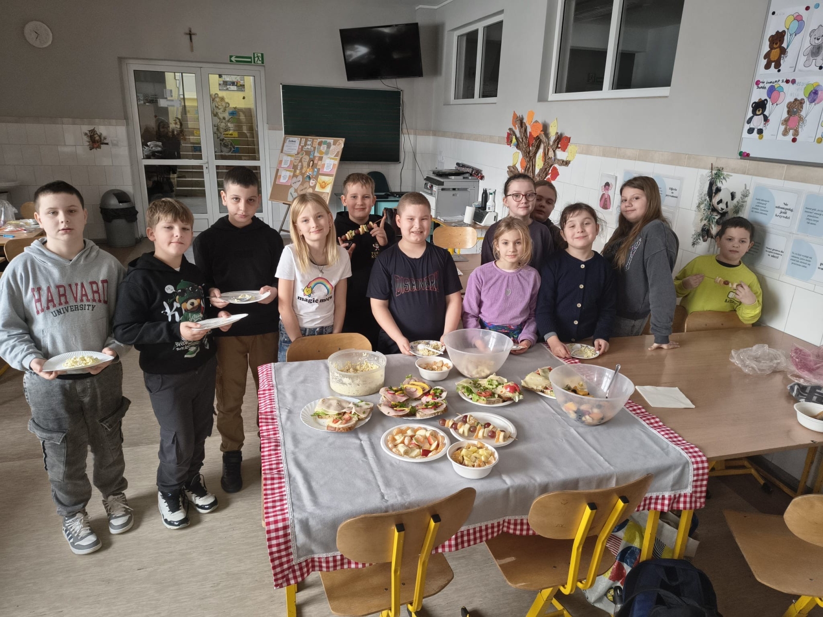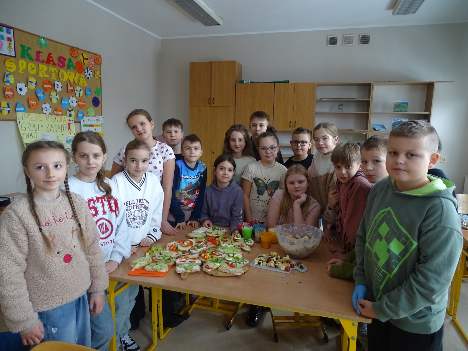 W czwartek uczniowie klas I – III wzięli udział w akcji „pudełkowe śniadanie”, która polegała na przygotowaniu i zabraniu do szkoły zdrowego drugiego śniadania. Natomiast klasy IV – VIII, podczas dwóch godzin lekcyjnych przygotowały zdrowe przekąski. Uczniowie wykazali się dużą kreatywnością, przygotowując bardzo ciekawe propozycje zdrowych i pełnych witamin smakołyków, pamiętając przy tym o estetyce ich wykonania i podania. Impreza była okazją do wzmacniania wzajemnych relacji i miłego spędzenia czasu w grupie klasowej. I choć mówi się, że: „Gdzie kucharek sześć, tam nie ma co jeść” to u nas było wesoło, smacznie i zdrowo.