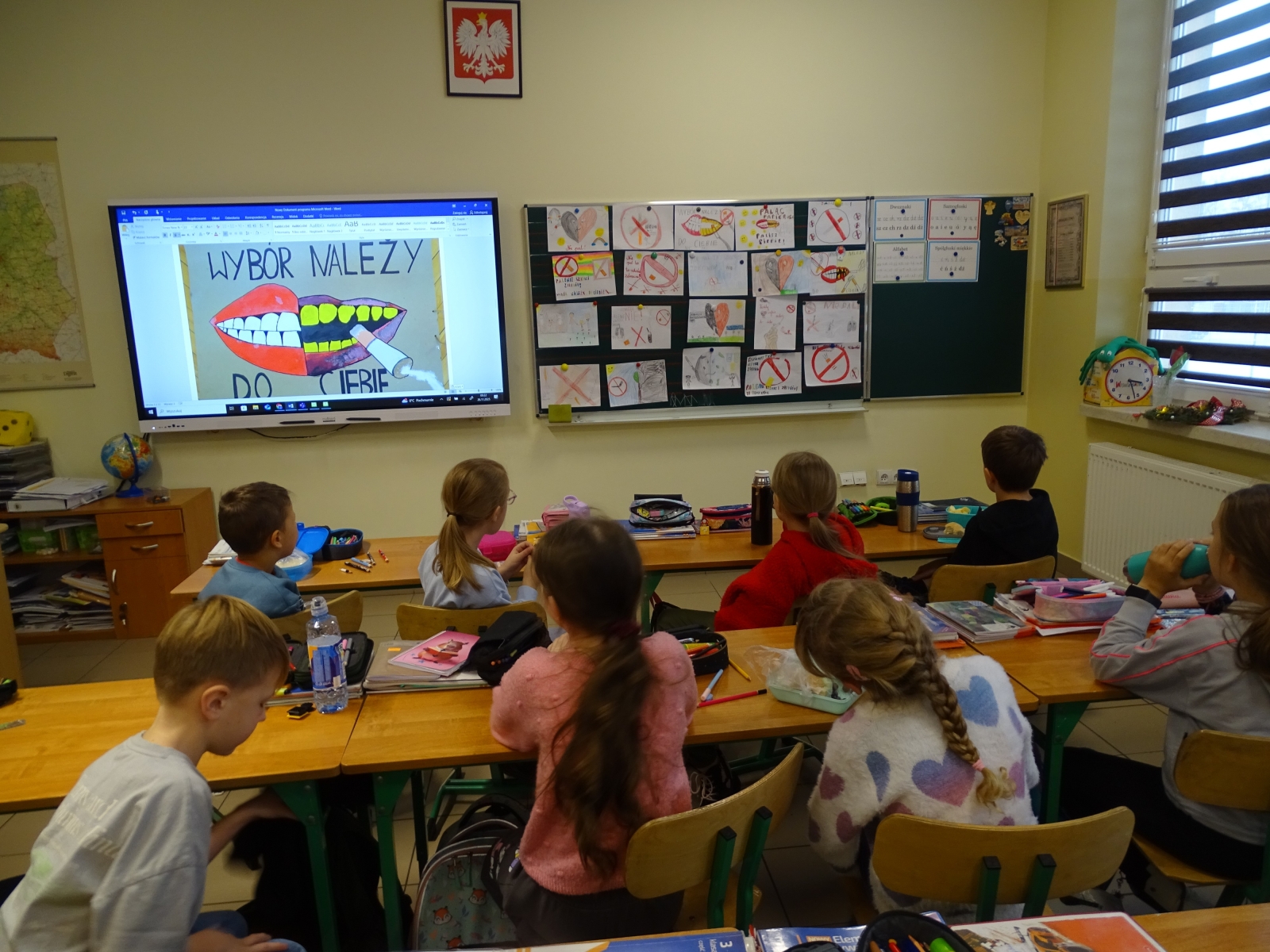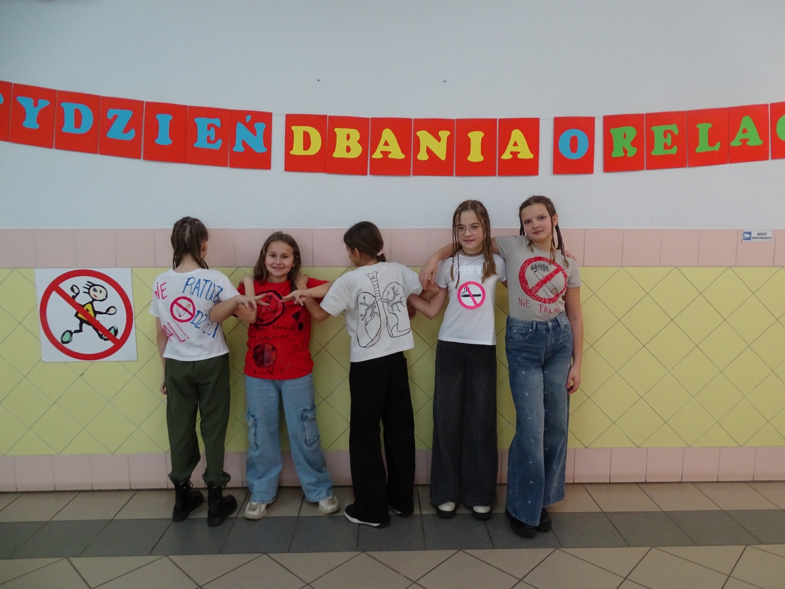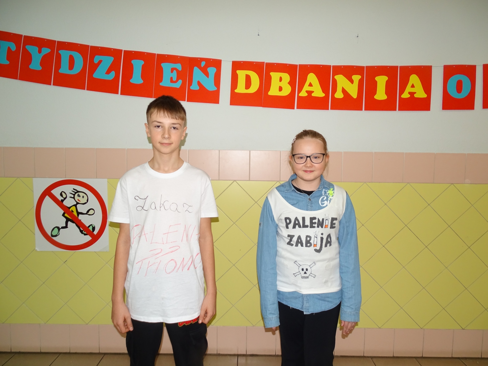 Działania podejmowane w środę połączone były z obchodami Światowego Dnia Rzucania Palenia. Uczniowie klas 6 – 8 mieli za zadanie przygotować krótkie filmiki na temat szkodliwości używania papierosów. Z kolei w klas 4 – 5 uczniowie wykonali w domu koszulki z hasłami, symbolami, rysunkami nawiązującymi do życia bez papierosów, które następnie prezentowali na sobie. W klasach I – III dzieci obejrzały film, w którym bohaterowie, zachęcają dorosłych do rzucenia palenia, a także wykonały tematyczne plakaty.