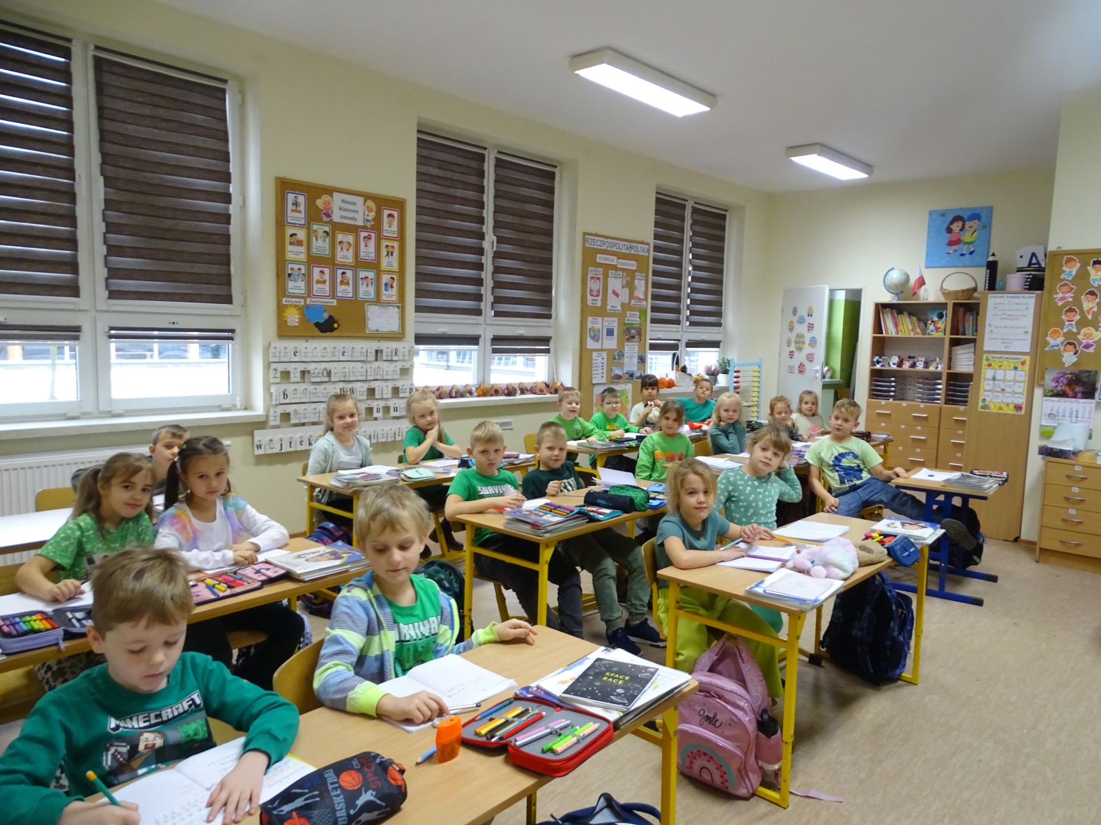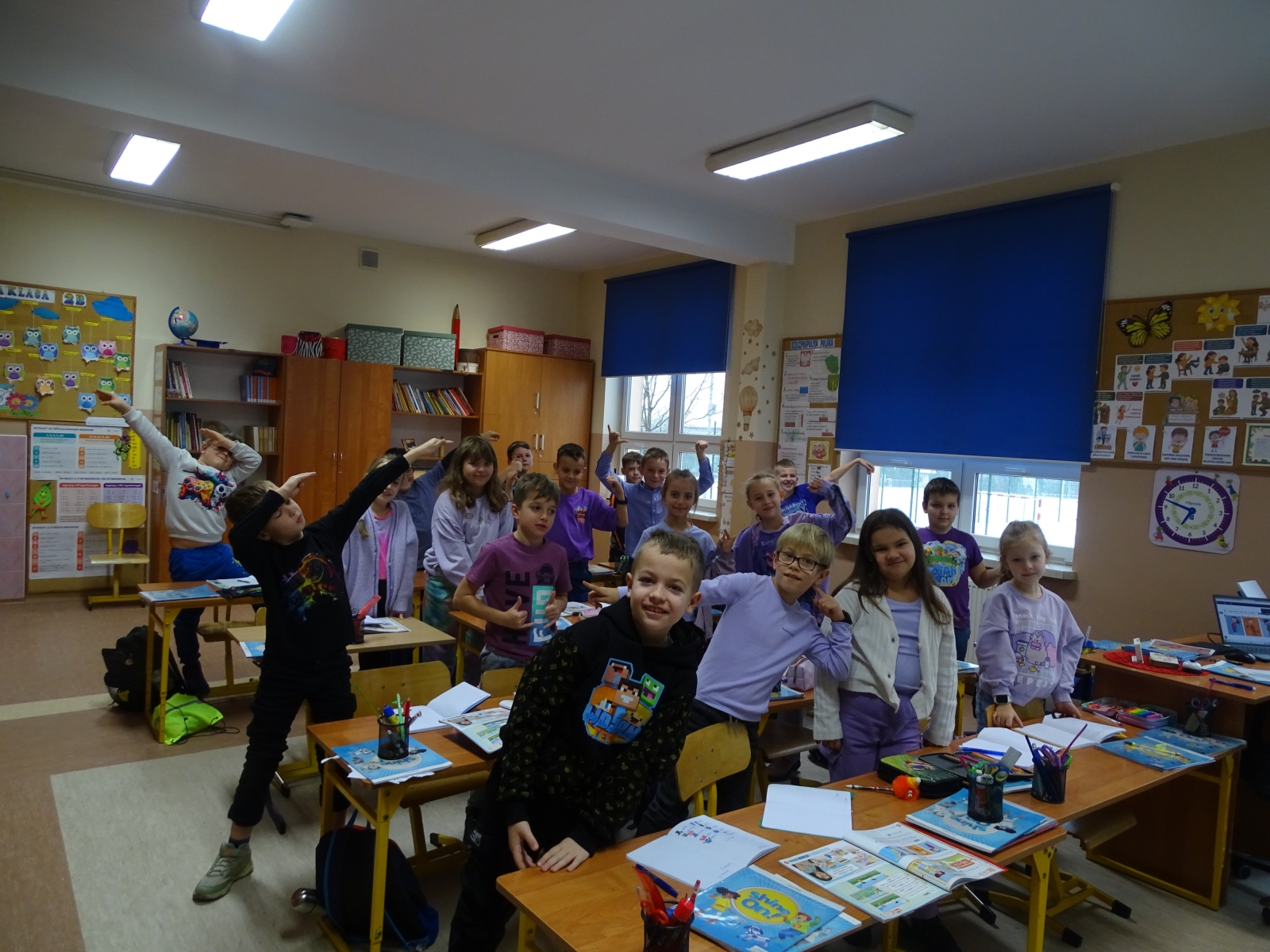 W poniedziałek świętowaliśmy Dzień Kolorów. Tego dnia uczniowie poszczególnych klas mieli na sobie ubrania lub gadżety w wylosowanym wcześniej kolorze. Mimo szarugi za oknem u nas było wesoło i kolorowo.