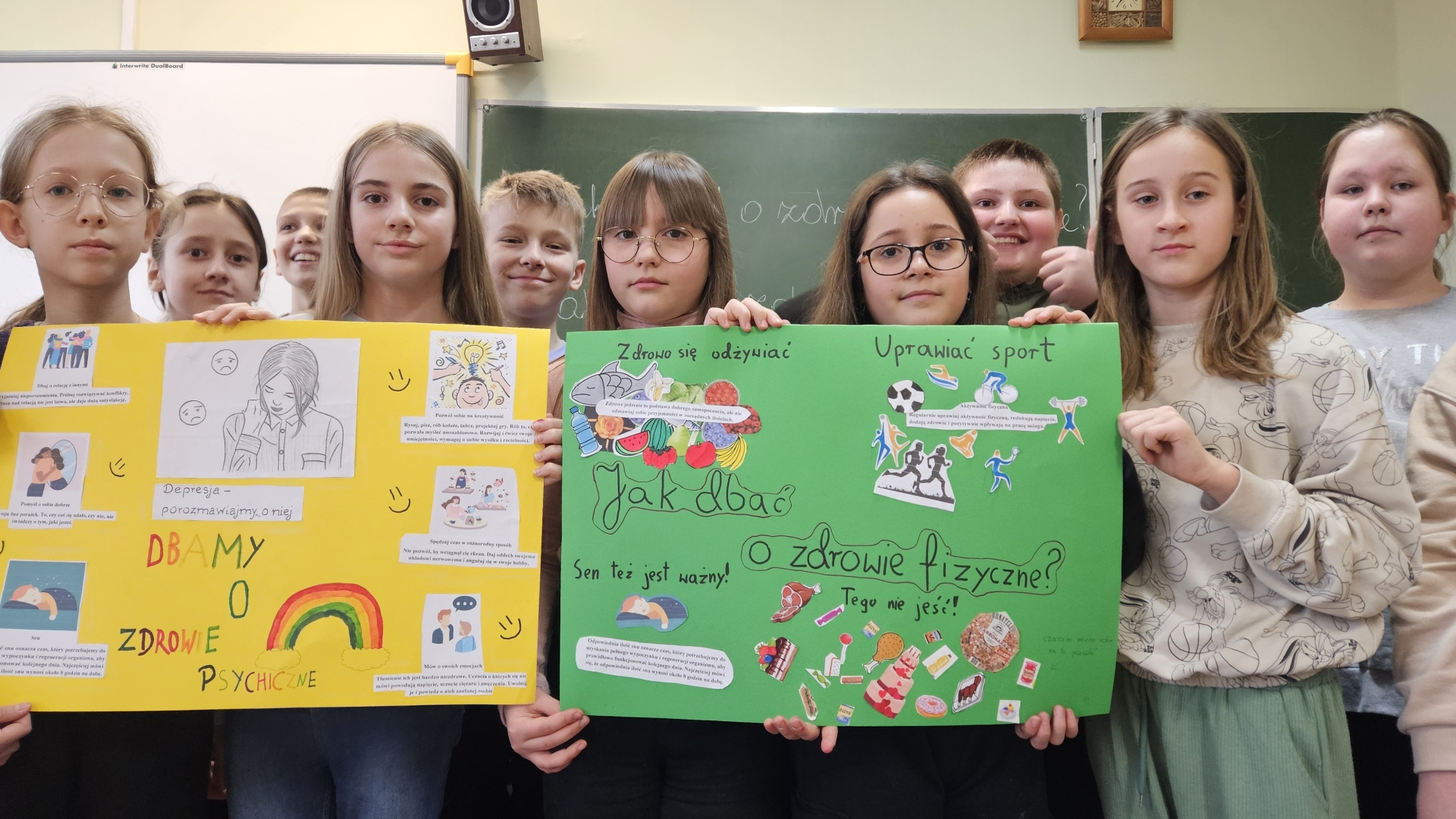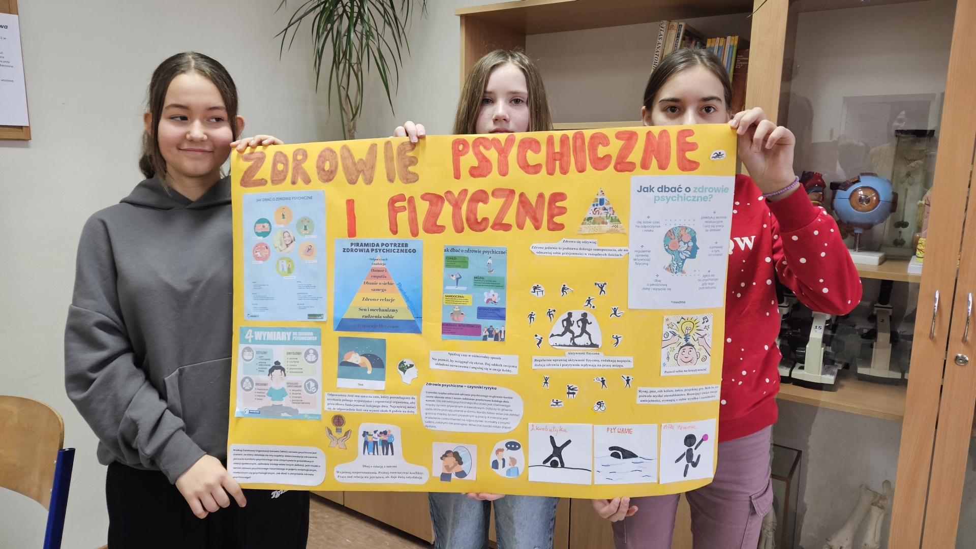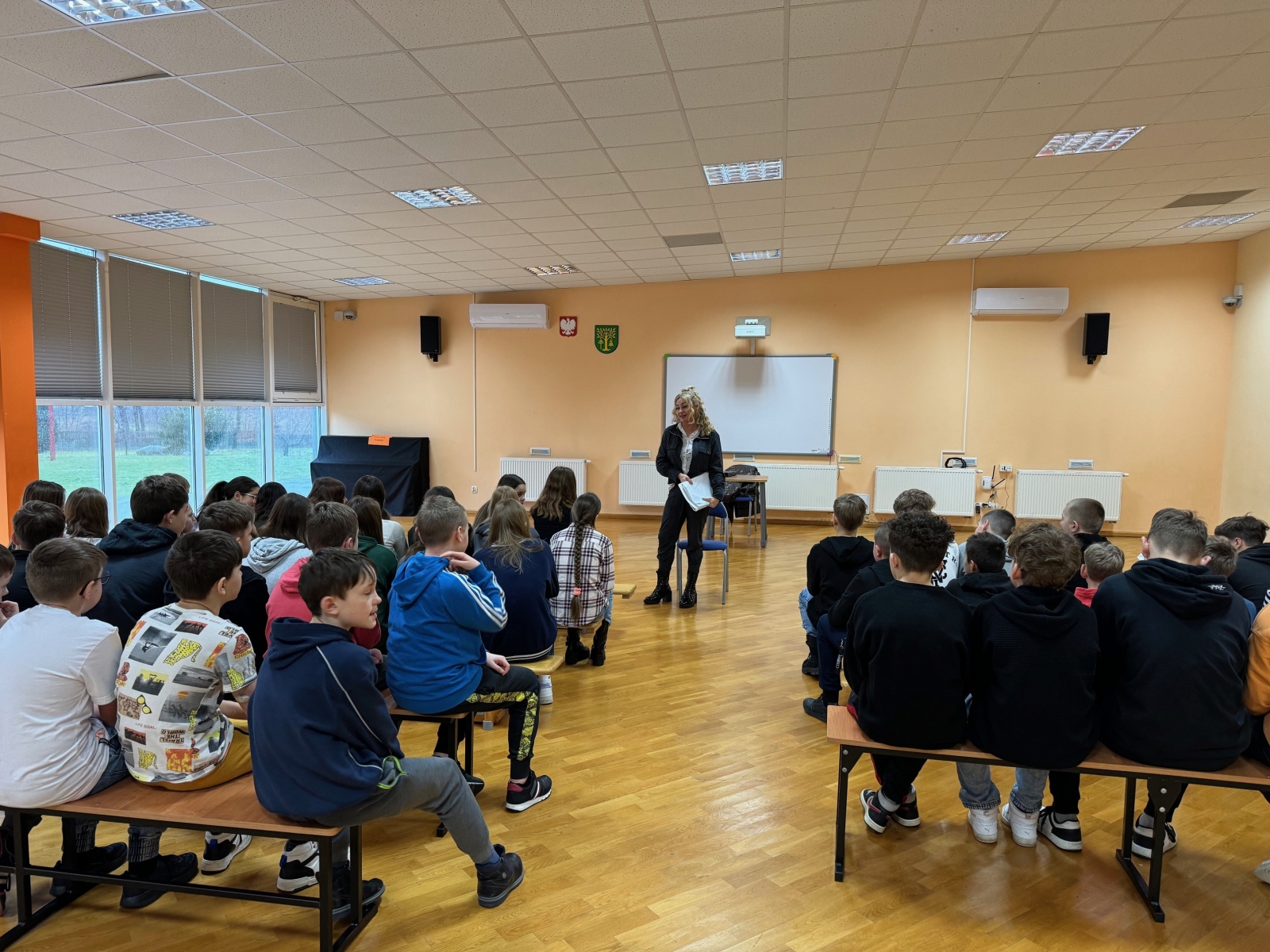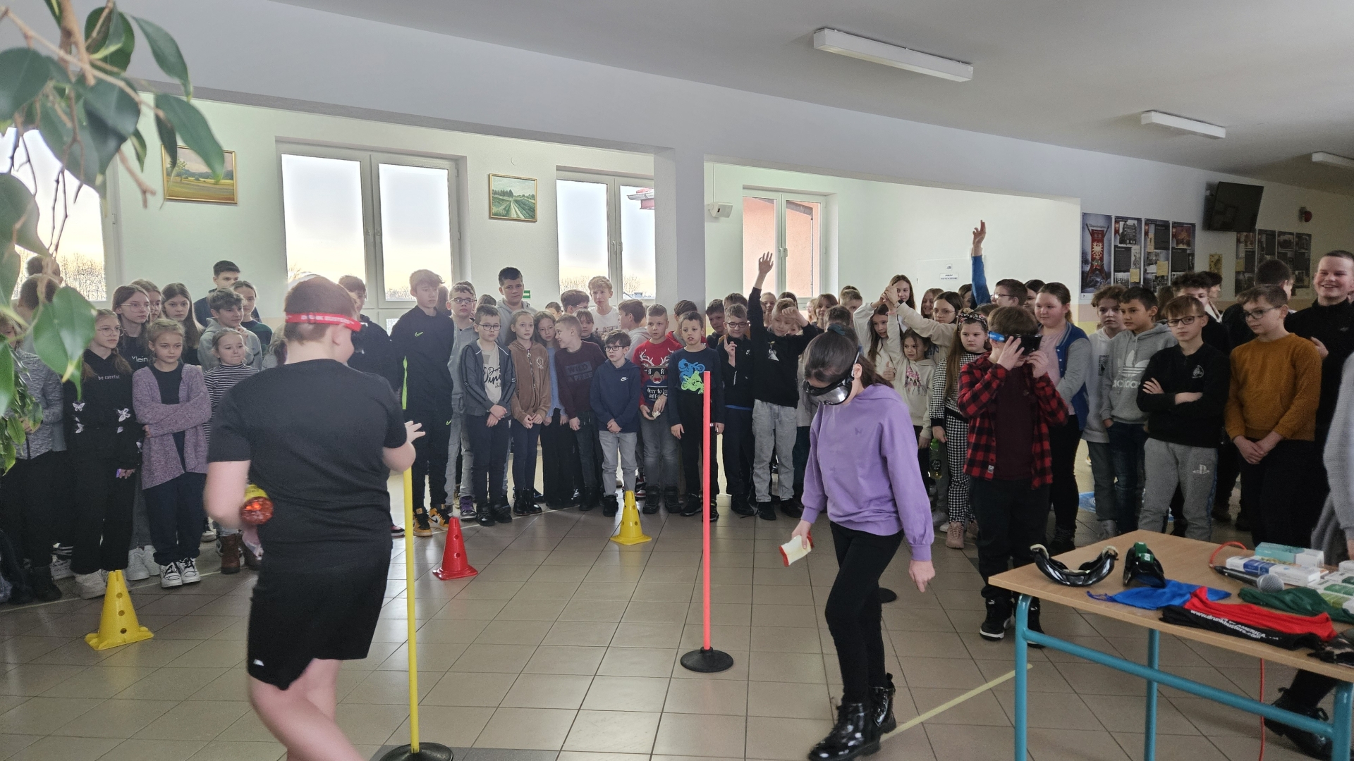 W dniach od 22.01- 26.01, obchodziliśmy w naszej szkole Tydzień Profilaktyki i Promocji Zdrowia Psychicznego. W obchodach wzięli udział wszyscy uczniowie. Pierwszy dzień, czyli poniedziałek poświęcony był profilaktyce uzależnień od alkoholu i narkotyków. Zaplanowane podczas przerw spotkania miały uświadomić uczniom jak substancje psychoaktywne działają na nasze zmysły, a przede wszystkim to, że powinni być w życiu rozważni, gdyż od tego zależy ich przyszłość. W celu lepszego zrozumienia i zobrazowania poruszanych tematów młodzi ludzie mieli możliwość założenia specjalnych okularów, które sprawiają, że świat wygląda podobnie jak po wypiciu alkoholu, spożyciu narkotyków. Okazało się, że założenie alkogogli, narkogogli skutkuje podwójnym widzeniem, spowolnieniem czasu reakcji, problemem z ustaleniem odległości, myleniem kierunków, pogorszeniem koordynacji ruchowej, zniekształceniem widzianego obrazu, zniekształceniem widzenia kolorów. Uczniowie mogli też zobaczyć jak wyglądają testy narkotykowe. We wtorek mięliśmy możliwość odstresowania się, wyciszenia biorąc udział w relaksacyjnych przerwach.Przy dźwiękach kojącej, uspokajającej muzyki oraz krótkich ćwiczeniach uczniowie odpoczywali i nabierali sił na kolejne lekcje. Akcja cieszyła się wielkim powodzeniem, a frekwencja bardzo mile nas zaskoczyła!. Z kolei w środę uczniowie klas 6 wzięli udział w spotkaniu z kuratorem sądowym na temat „ Odpowiedzialności prawnej nieletnich. Celem spotkania była szeroko rozumiana profilaktyka, przeciwdziałanie postawom demoralizującym, zapobieganie czynom karalnym oraz patologiom społecznym. Uczniowie mieli także możliwość zapoznania się z zadaniami kuratora, w procesie wychowawczym dzieci i młodzieży, która popadła w konflikt z prawem. W czwartek uczniowie klas 4-8 podczas godziny wychowawczej wykonywali w grupach plakaty na temat tego, jak na co dzień dbać o zdrowie fizyczne i psychiczne, z kolei w klasach młodszych odbyły się pogadanki na ten temat. Ostatniego dnia naszej akcji, uczniowie poprzez wzięcie udziału w quizie przypomnieli wszystkim informacje na temat tego, gdzie w szkole oraz poza szkołą można szukać wsparcia w sytuacjach trudnych.