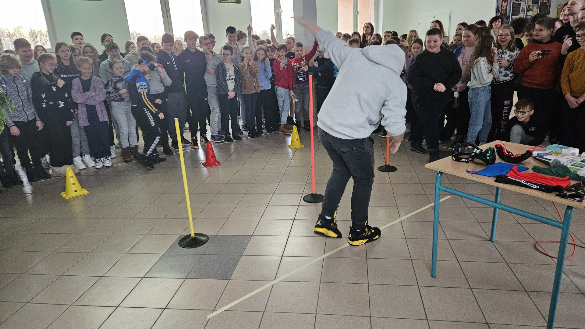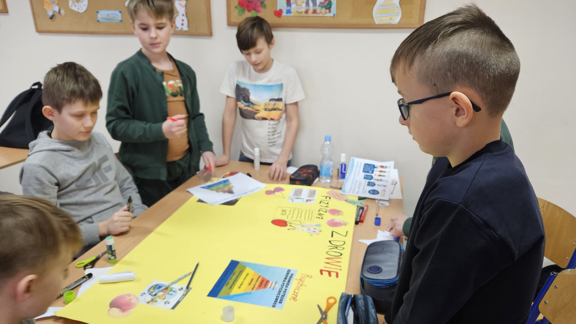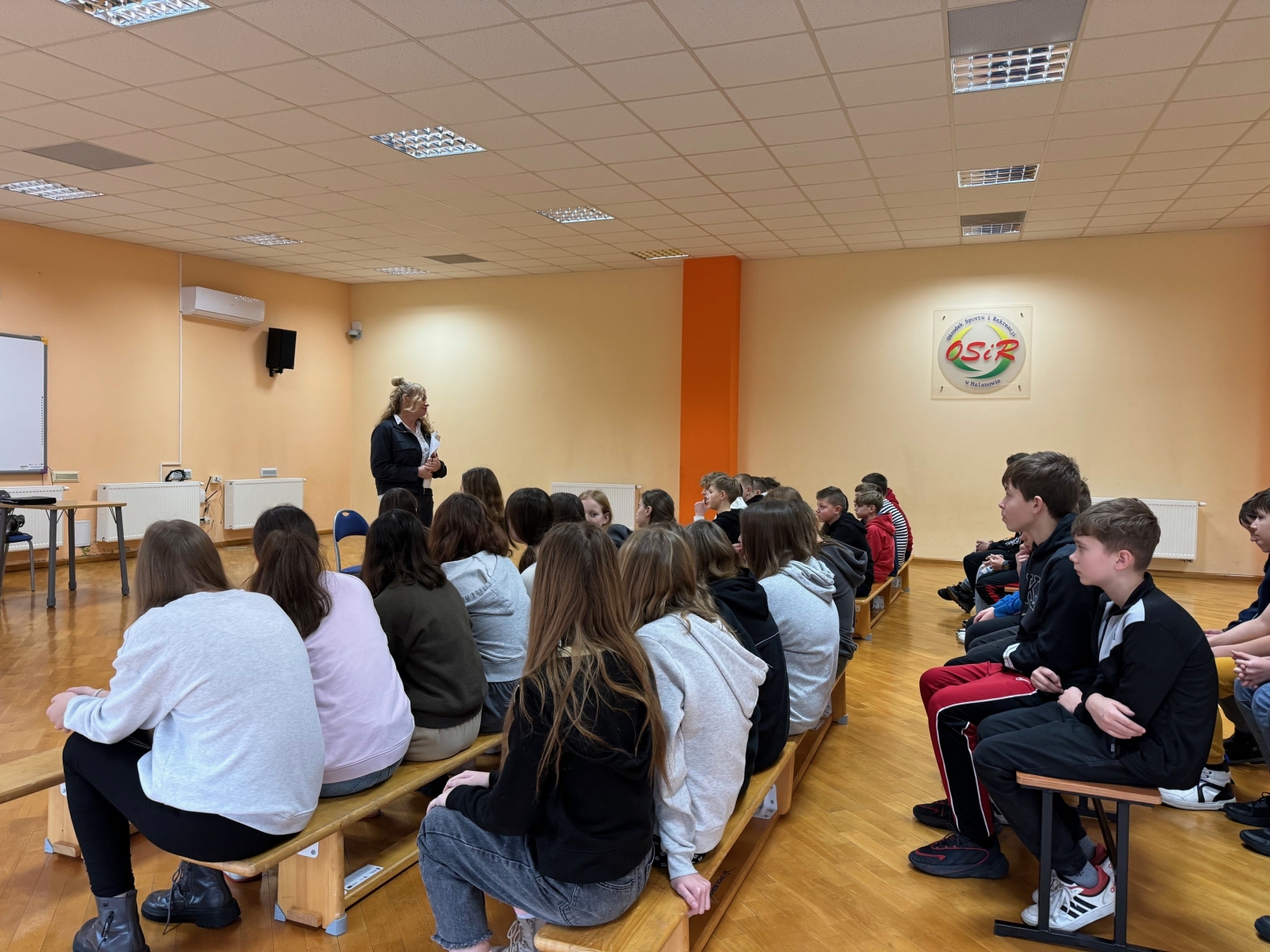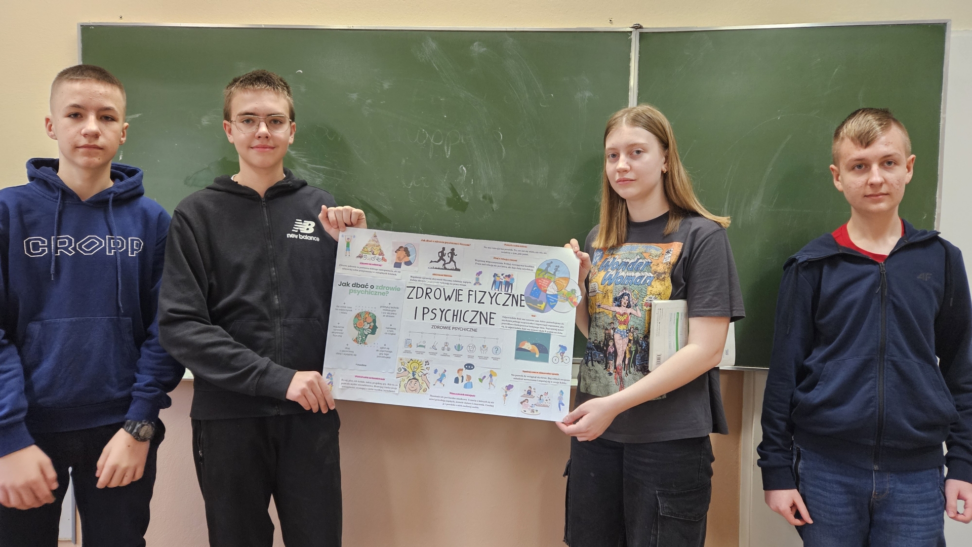 W dniach od 22.01- 26.01, obchodziliśmy w naszej szkole Tydzień Profilaktyki i Promocji Zdrowia Psychicznego. W obchodach wzięli udział wszyscy uczniowie. Pierwszy dzień, czyli poniedziałek poświęcony był profilaktyce uzależnień od alkoholu i narkotyków. Zaplanowane podczas przerw spotkania miały uświadomić uczniom jak substancje psychoaktywne działają na nasze zmysły, a przede wszystkim to, że powinni być w życiu rozważni, gdyż od tego zależy ich przyszłość. W celu lepszego zrozumienia i zobrazowania poruszanych tematów młodzi ludzie mieli możliwość założenia specjalnych okularów, które sprawiają, że świat wygląda podobnie jak po wypiciu alkoholu, spożyciu narkotyków. Okazało się, że założenie alkogogli, narkogogli skutkuje podwójnym widzeniem, spowolnieniem czasu reakcji, problemem z ustaleniem odległości, myleniem kierunków, pogorszeniem koordynacji ruchowej, zniekształceniem widzianego obrazu, zniekształceniem widzenia kolorów. Uczniowie mogli też zobaczyć jak wyglądają testy narkotykowe. We wtorek mięliśmy możliwość odstresowania się, wyciszenia biorąc udział w relaksacyjnych przerwach.Przy dźwiękach kojącej, uspokajającej muzyki oraz krótkich ćwiczeniach uczniowie odpoczywali i nabierali sił na kolejne lekcje. Akcja cieszyła się wielkim powodzeniem, a frekwencja bardzo mile nas zaskoczyła!. Z kolei w środę uczniowie klas 6 wzięli udział w spotkaniu z kuratorem sądowym na temat „ Odpowiedzialności prawnej nieletnich. Celem spotkania była szeroko rozumiana profilaktyka, przeciwdziałanie postawom demoralizującym, zapobieganie czynom karalnym oraz patologiom społecznym. Uczniowie mieli także możliwość zapoznania się z zadaniami kuratora, w procesie wychowawczym dzieci i młodzieży, która popadła w konflikt z prawem. W czwartek uczniowie klas 4-8 podczas godziny wychowawczej wykonywali w grupach plakaty na temat tego, jak na co dzień dbać o zdrowie fizyczne i psychiczne, z kolei w klasach młodszych odbyły się pogadanki na ten temat. Ostatniego dnia naszej akcji, uczniowie poprzez wzięcie udziału w quizie przypomnieli wszystkim informacje na temat tego, gdzie w szkole oraz poza szkołą można szukać wsparcia w sytuacjach trudnych.