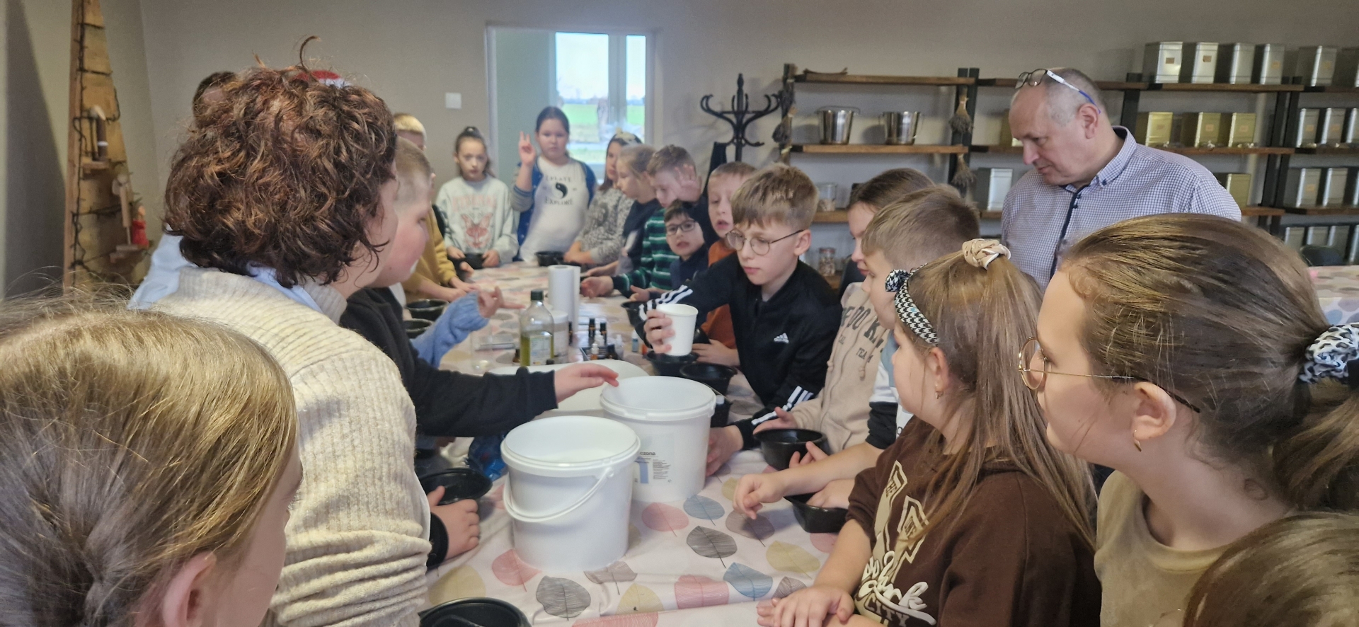 Klasa 4 a w grudniu i w styczniu bierze udział w projekcie edukacyjnym „Akcja – Zielona Transformacja” organizowanym przez Turecką Izbę Gospodarczą przy współfinansowaniu Wielkopolskiego Funduszu Ochrony Środowiska i Gospodarki Wodnej z Poznania. Celem projektu jest podnoszenie poziomu świadomości ekologicznej, upowszechnianie wiedzy i kształtowanie postaw proekologicznych dzieci i młodzieży w zakresie przeciwdziałania emisjom i zrozumienia istoty odnawialnych źródeł energii. Do tej pory dzieci wzięły udział w trzech warsztatach stacjonarnych i jednym wyjazdowym. Podczas warsztatów w szkole prowadzonych przez panią Ewę Kowalską, panią Monikę Kozłowską oraz pana Tobiasza Gruźniczaka uczniowie dowiedzieli się czym są odnawialne źródła energii oraz jak żyć zgodnie z ideą Zero Waste. 20 grudnia uczniowie pod opieką wychowawczyni oraz pana Marka Nowickiego uczestniczyli w warsztatach „Naturalnie pięknym być” w Turkowskiej Unii Rozwoju. Dzieci poznały tajniki naturalnych kosmetyków oraz samodzielnie wykonywały naturalne kosmetyki do pielęgnacji m.in. mydełko glicerynowe, balsam do ust i kulę do kąpieli. Otrzymały również przepiśnik, w którym znajdują się wszystkie receptury oraz Paszport Odkrywcy, w którym mogą zbierać pieczątki i odkrywać lokalne atrakcje. Z niecierpliwością czekamy na kolejne warsztaty…