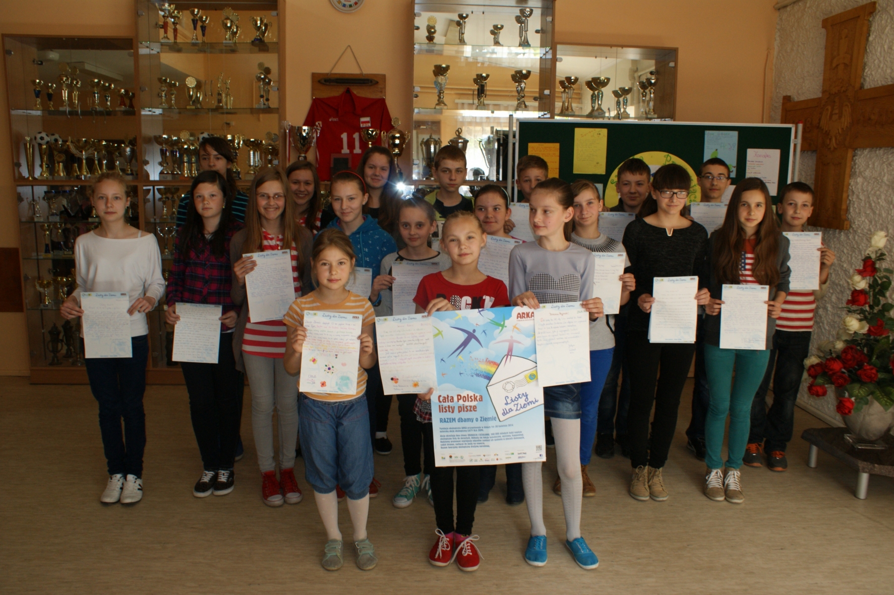 „ Czyste powietrze –zdrowy człowiek” pod takim hasłem przebiegał tegoroczny konkurs ekologiczny, zorganizowany przez fundację ARKA. Nasza szkoła również wzięła w nim udział . Celem konkursu jest m.in. pisanie „Listów dla Ziemi”. W tym roku tematem listów było powietrze. Ponieważ problem brudnego powietrza jest bardzo poważny, a dym z pieców coraz bardziej zagraża naszemu zdrowiu akcja ta ma zachęcać do ekologicznego stylu życia i segregowania śmieci. W listach tych dzieci apelują do osób dorosłych, że „piece nie są na śmieci”. Nasza szkoła zgłosiła 20 uczestników, choć chętnych było dużo więcej. Listy pisane były na specjalnym papierze listowym wykonanym z makulatury, który otrzymaliśmy od Fundacji Ekologicznej ARKA. Pisanie listów poprzedziły pogadanki i lekcje, które wyjaśniły uczniom w jaki sposób ludzie szkodzą środowisku. Celem akcji jest rozwijanie wyobraźni i zastanowienie się nad tym, co jeszcze może się stać, jak potoczy się nasze życie, gdy brudne powietrze będzie już nie do zniesienia. Bardzo ważna jest też umiejętność dostrzegania tego, co wywołuje miłe wrażenie, a często nie zwracamy na to uwagi, jak na przykład zapach lasu, kwitnącego ogrodu. To one pozwalają nam odpocząć i poczuć się lekko. Do drzew możemy się nawet przytulić, posłuchać ich szumu i zapomnieć choć na chwilę o troskach i problemach. Jeżeli chcemy oddychać czystym powietrzem i żyć wśród czystej i pięknej przyrody, to musimy zacząć edukację od dzieci. To z nich wyrośnie pokolenie ludzi dbających o czystość, zdrowie i ekologię. Poprzez udział w takich akcjach jak „Listy dla Ziemi”, chcemy zmieniać przyzwyczajenia dzieci jak również dorosłych, by nie niszczyć środowiska, w którym żyjemy.