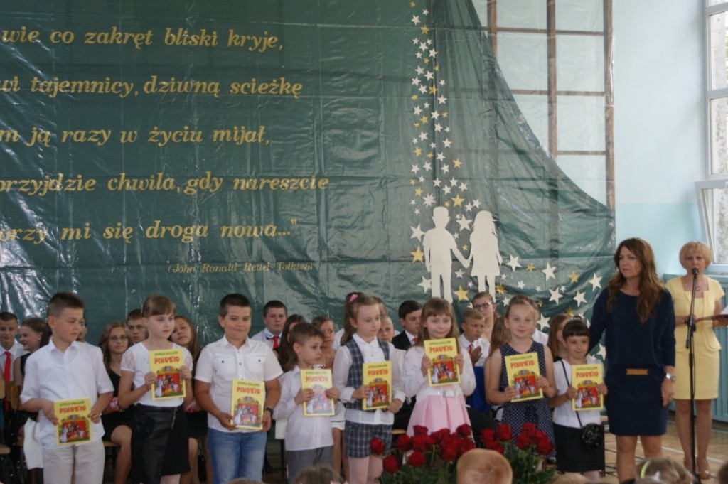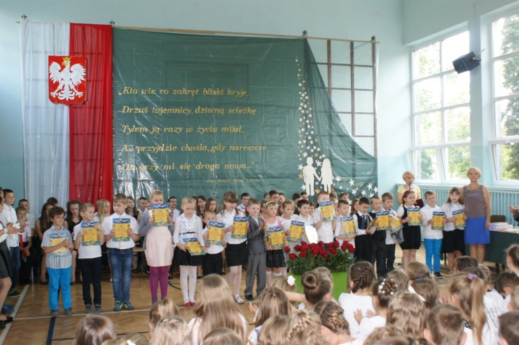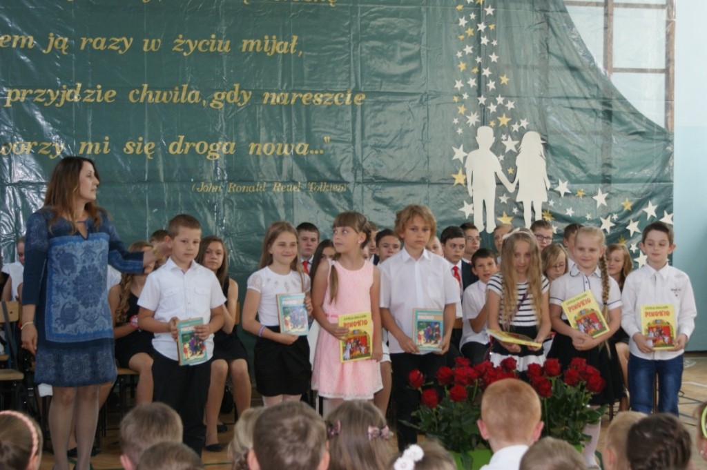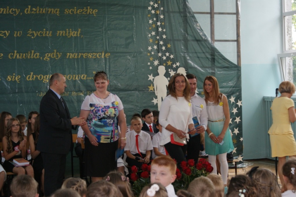 Tegoroczne zakończenie roku szkolnego 2013/2014 uczniowie naszej szkoły rozpoczęli mszą świętą w kościele pod wezwaniem św. Stanisława w Malanowie. Po nabożeństwie wszystkie dzieci przeszły do szkoły na uroczyste zakończenie roku szkolnego. Po wprowadzeniu pocztu sztandarowego oraz odśpiewaniu hymnu, głos zabrał dyrektor szkoły Pan Marek Nowicki, który powitał przybyłych gości: zastępcę przewodniczącego Rady Gminy pana Piotra Jasiaka , sekretarza gminy Malanów pana Karola Adamka, kierownika GZOO panią Katarzynę Gorgolewską – Erkiet, Radę Rodziców z przewodniczącą panią Annę Czerniak oraz księdza prałata Stanisława Płaszczyka. Wszyscy życzyli nam dobrego wypoczynku i wspaniałych wakacji. Po wystąpieniach gości przyszła pora na wręczenie najlepszym uczniom nagród i dyplomów, a rodzicom nagrodzonych dzieci z klas szóstych listów gratulacyjnych. Wzorem lat ubiegłych wszystkie pierwszaki zostały nagrodzone pamiątkowymi książeczkami. Książki otrzymały również dzieci, które w ciągu całego roku nie opuściły ani jednego dnia nauki. Po wręczeniu nagród i dyplomów głos zabrali uczniowie klas szóstych. Absolwenci żegnali się ze szkołą wierszem i piosenką, a na pamiątkę od swoich młodszych kolegów z klas piątych otrzymali pamiątkowe upominki. Pożegnalne występy uczniów klas szóstych zakończyły uroczystość, następnie wszystkie dzieci udały się do klas, by pożegnać się ze swoimi wychowawcami.