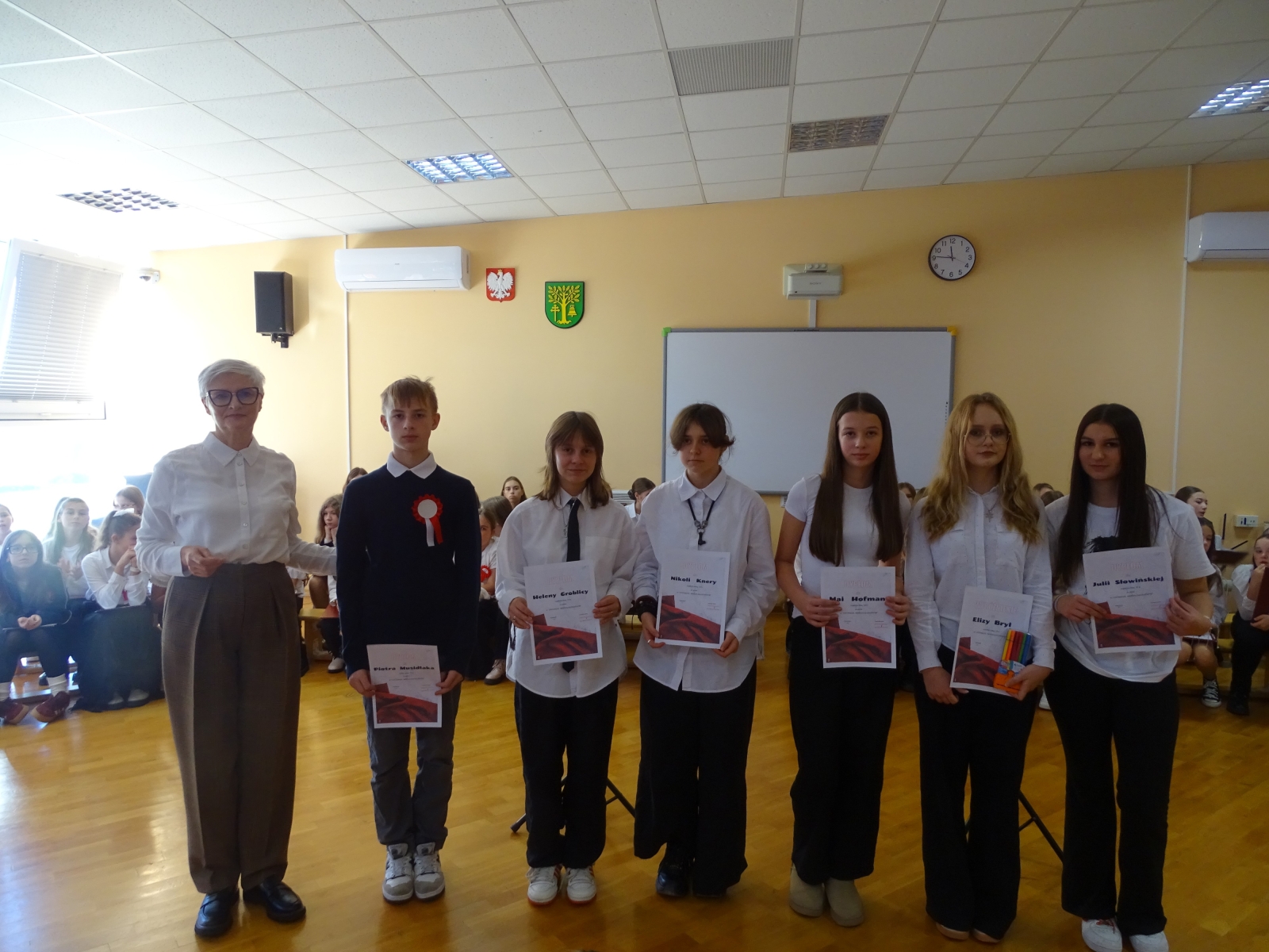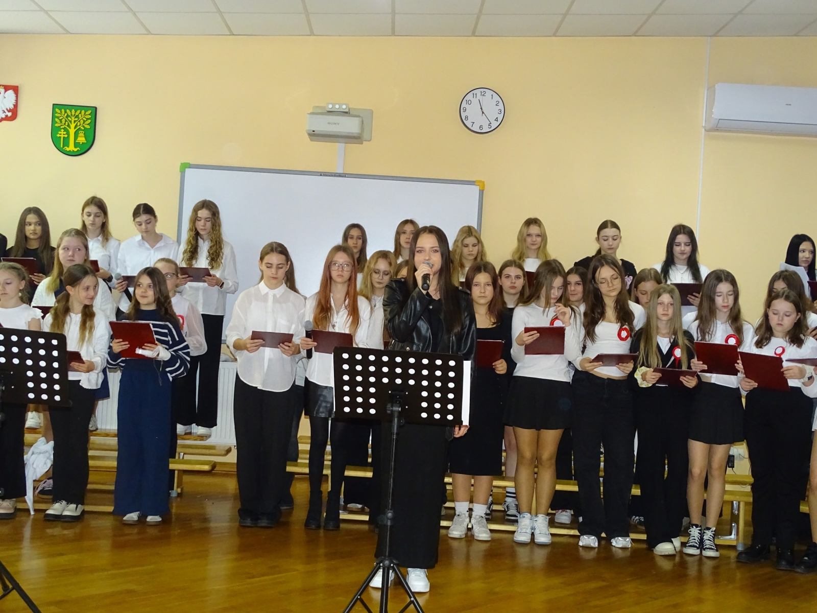 W dniu 6 listopada odbyła się w naszej szkole akademia z okazji Narodowego Święta Niepodległości. Data 11 listopada 1918 roku jest jedną z najważniejszych w historii naszej ojczyzny. Po wieloletniej niewoli Polska odzyskała niepodległość. Dzięki bohaterstwu polskich żołnierzy, dzisiaj możemy żyć w wolnym kraju. Uczciliśmy ten dzień w naszej szkole głęboką refleksją nad historią i współczesnością naszego kraju.
