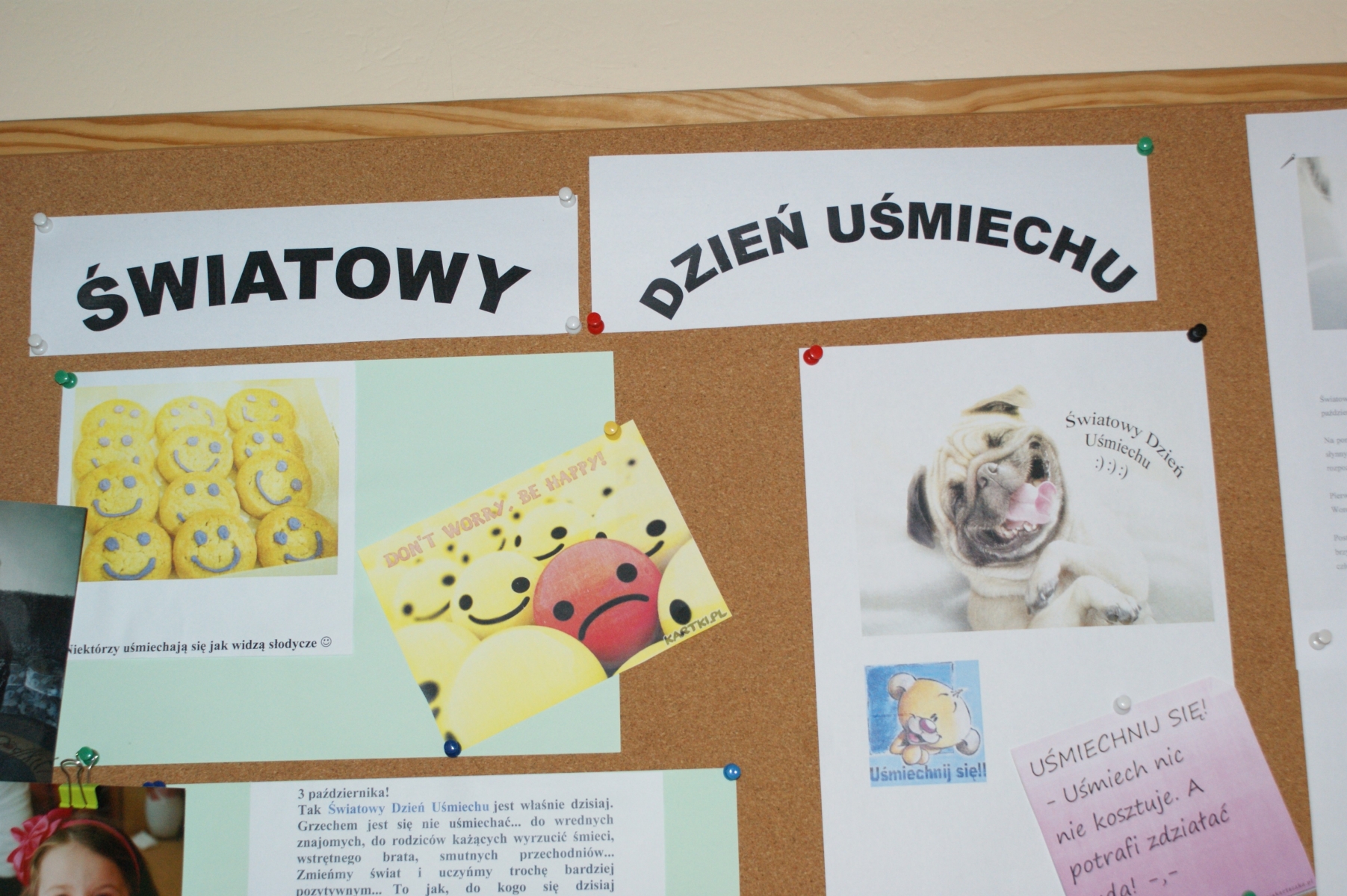 W związku z obchodami Światowego Dnia Uśmiechu, Samorząd Uczniowski ogłosił konkurs fotograficzny „Uśmiechnij się”. Zadaniem konkursowym było dostarczenie swojego zdjęcia, na którym autor fotki prezentuje cudownie uśmiechniętą buzię. Zainteresowanie konkursem było ogromne, komisja konkursowa miała nie lada problem z wybraniem tego NAJ… zdjęcia.