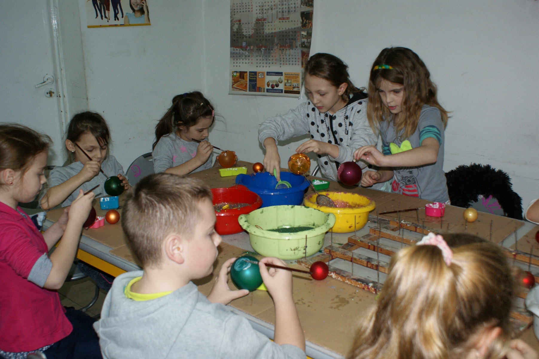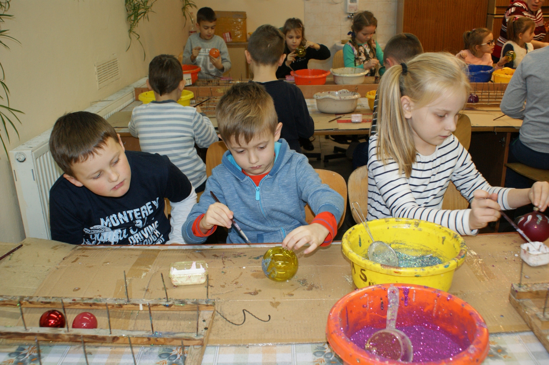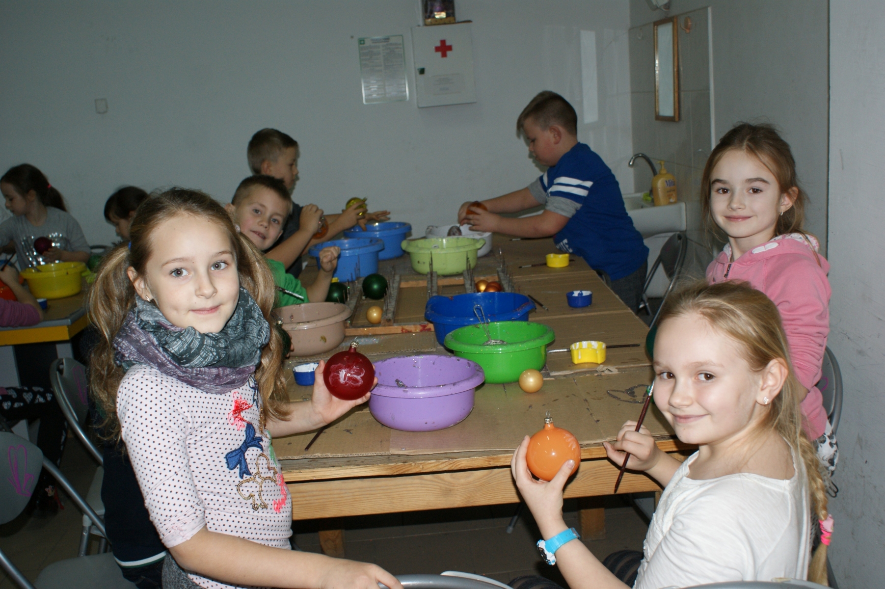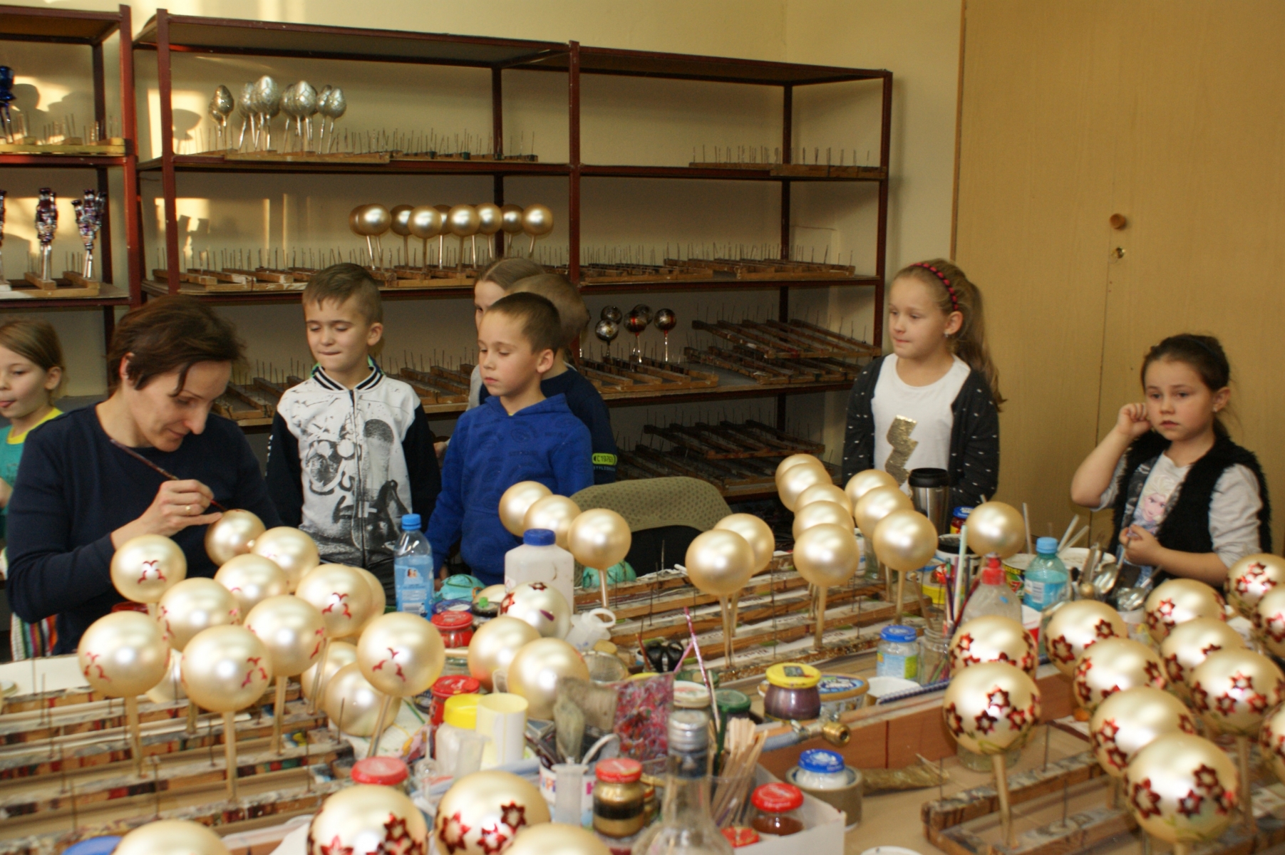Ten mały zakład zrobił na nas ogromne wrażenie. Poznaliśmy tajniki tworzenia tych pięknych ozdób, które co roku sprawiają, że nasze choinki urzekająco lśnią i błyszczą. Z zapartym tchem śledziliśmy kolejne etapy powstawania bajecznie kolorowych bombek: dmuchanie szkła, srebrzenie, lakierownie, zdobienie. Sami także dostaliśmy po dwie „szklane bombki”, które mogliśmy ozdobić według własnego pomysłu. Każdy z nas starał się wyczarować najróżniejsze wzory, aby jego bombka prezentowała się okazale i wspaniale. Nasze bombki mieniły się różnymi kolorami tęczy. Zabraliśmy je do domów by zdobiły nasze „drzewka” podczas świąt.