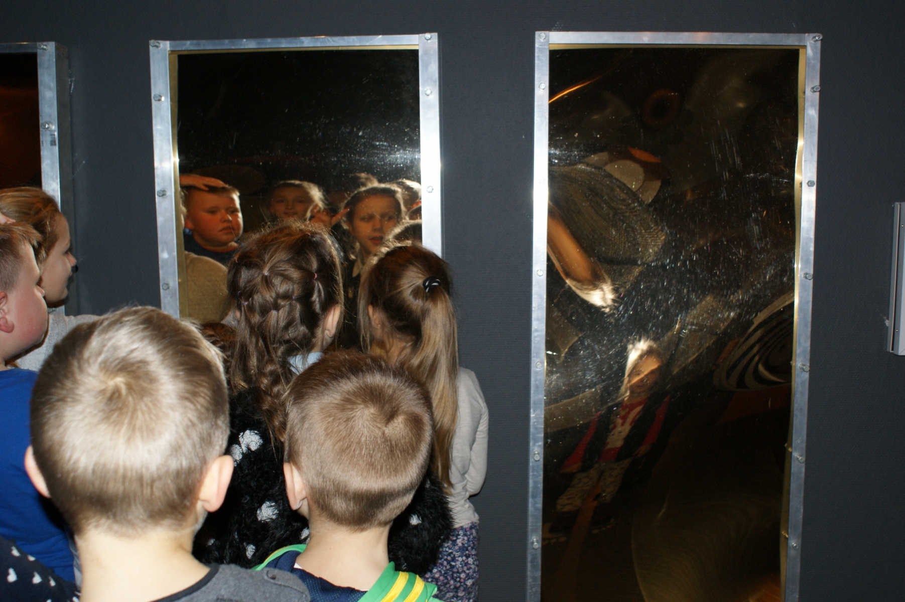 Następnie udaliśmy się do Łodzi do galerii Manufaktura, gdzie zjedliśmy posiłek w Mc Donalds, a potem zwiedziliśmy interaktywną wystawę w „Eksperymentarium”. Rozpoczynając przygodę najpierw musieliśmy przejść mostkiem przez Tunel Kosmiczny, który zapewnia niezapomniane przeżycia wzrokowe. Potem z ciekawością wysłuchaliśmy objaśnień przewodnika dotyczących skomplikowanych zagadnień z różnych dziedzin nauki, poznaliśmy różne przyrządy i stanowiska interaktywne.