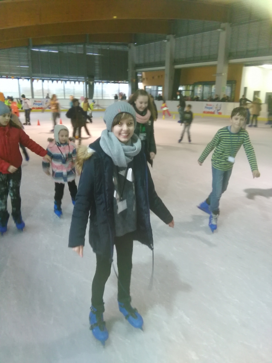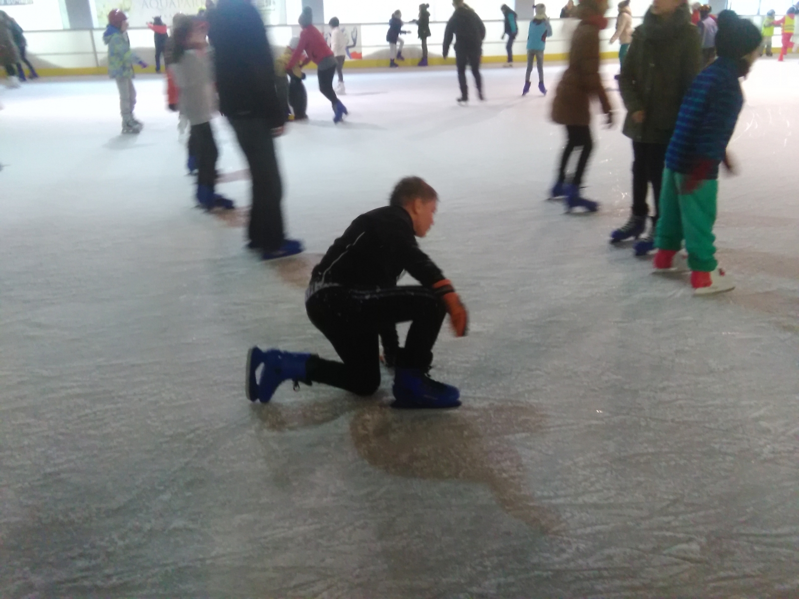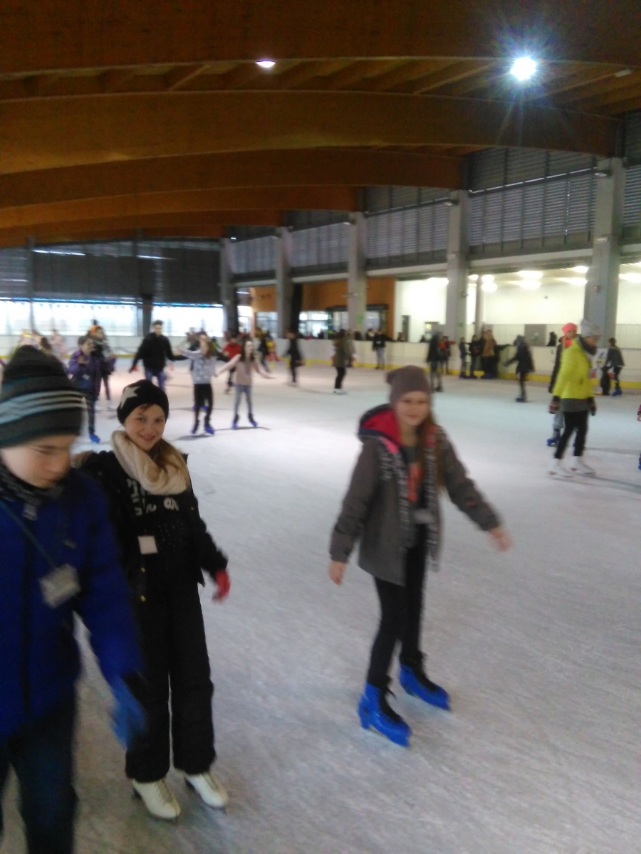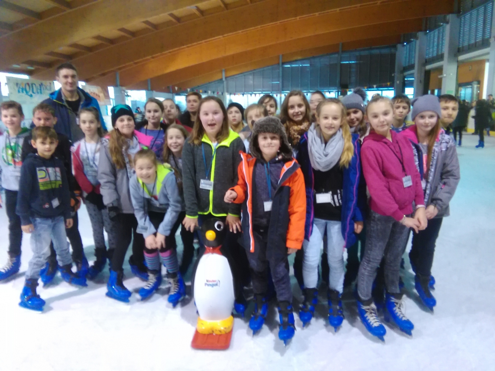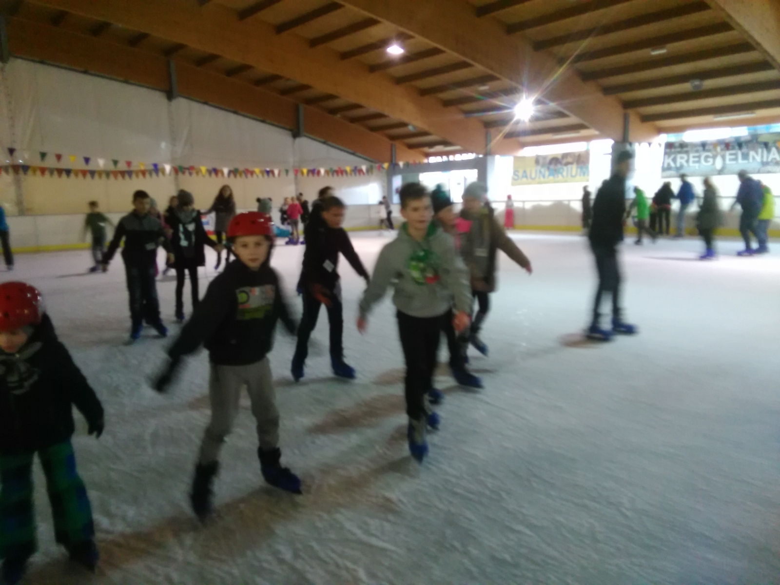 W czwartek 28 stycznia grupa uczniów wraz z opiekunami udała się na lodowisko w Kaliszu. Młodzi adepci zimowego szaleństwa podczas dwóch godzin na lodowisku poznali atrakcję łyżew. Uczniowie zaawansowani rozwijali swoje umiejętności jazdy na lodzie, natomiast początkujący poznali technikę utrzymania się na lodzie, odpychania oraz "miękkiego lądowania". Wszystkie potknięcia, niekontrolowane obroty przyśpieszenia, oraz próby szaleństwa były szybko weryfikowane przez śliskie podłoże. Wszystkim upadkom towarzyszył śmiech i zabawa. Jazda na łyżwach była świetną formą aktywnego odpoczynku w ferie zimowe.