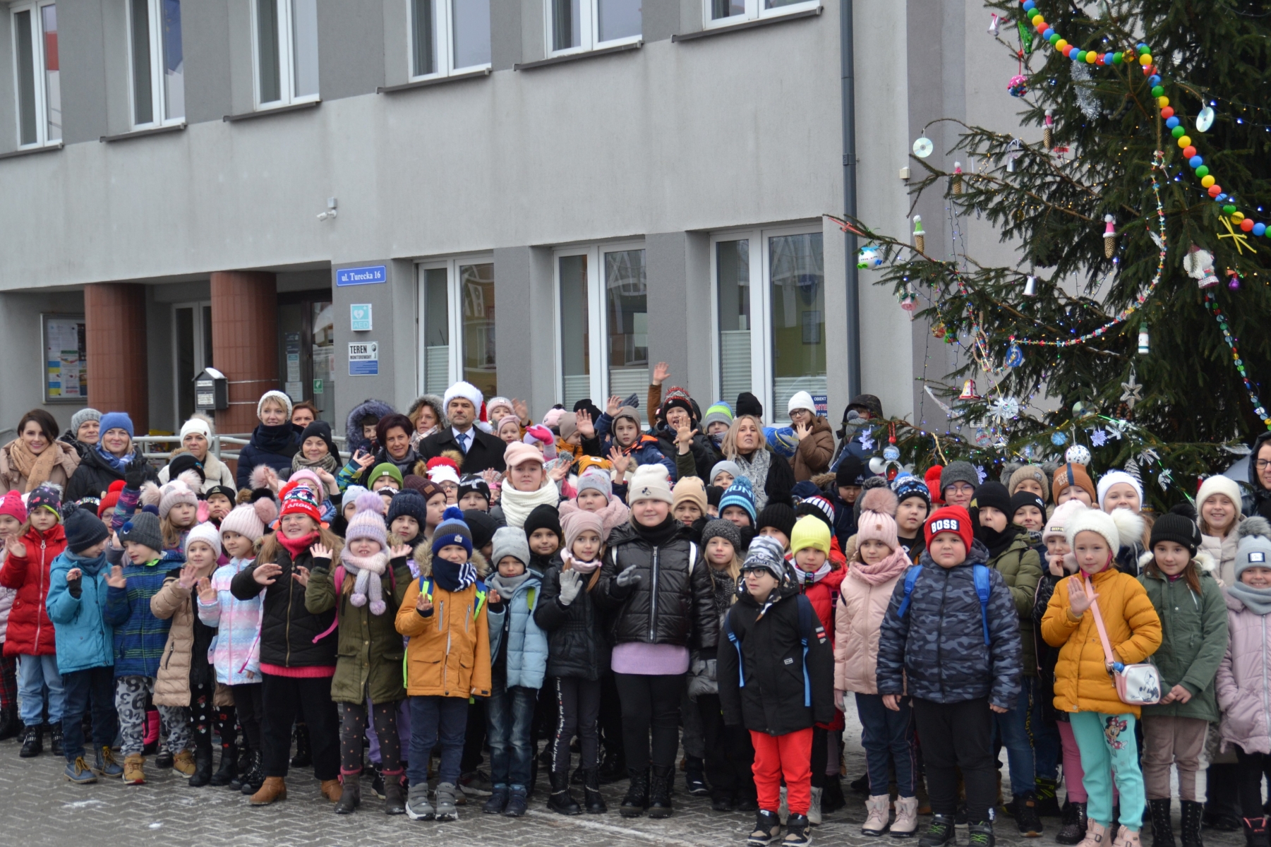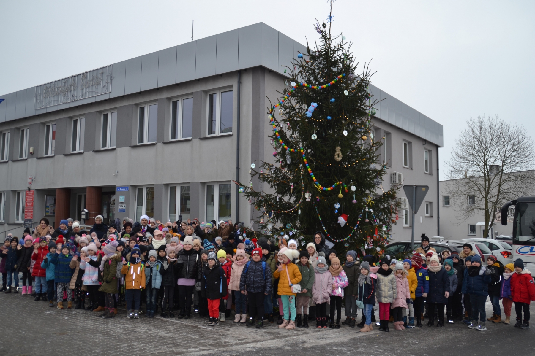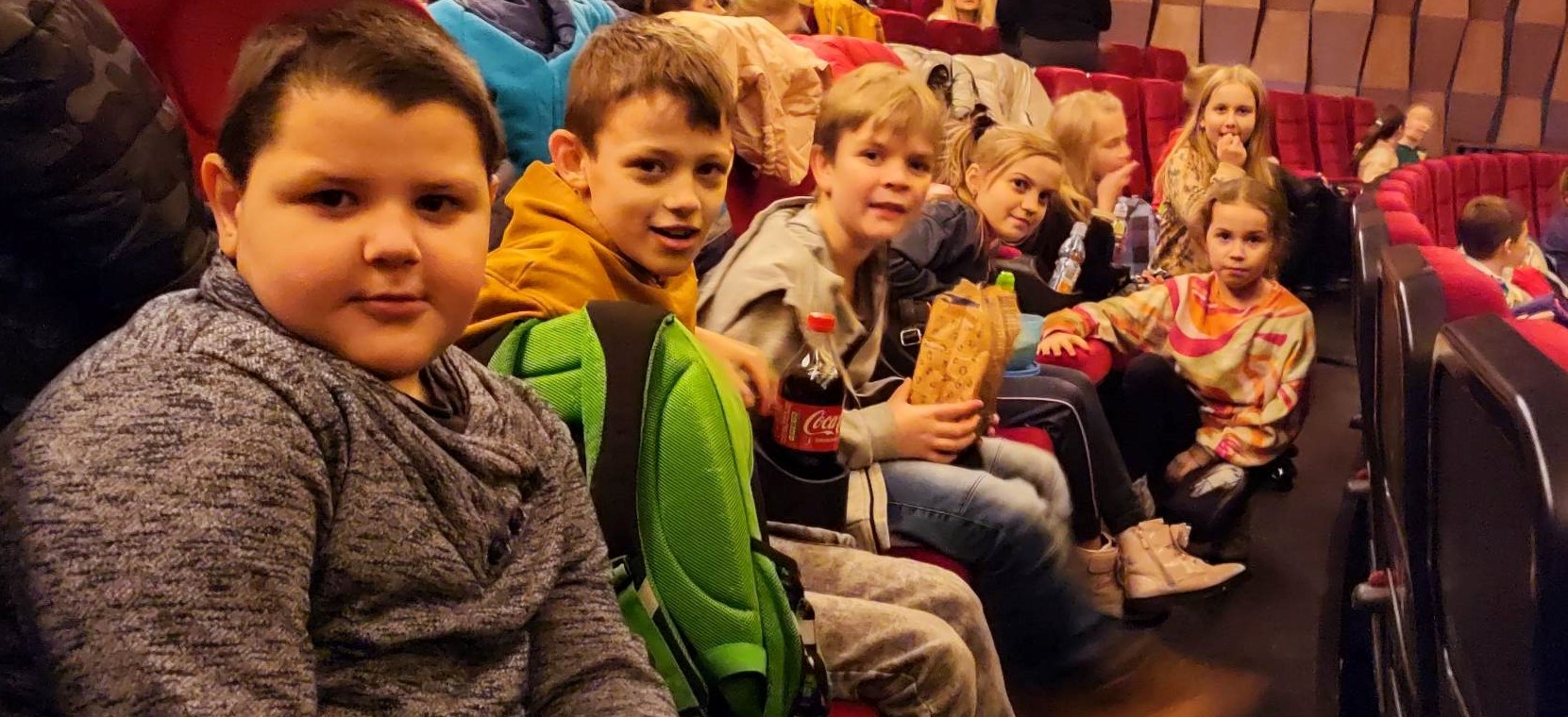 W ten mroźny piątkowy poranek wszyscy uczniowie klas I-III wspólnie z panem Wójtem Ireneuszem Augustyniakiem- Mikołajem i pracownikami Urzędu Gminy- Śnieżynkami zrobili najpierw pamiątkowe zdjęcie obok choinki, a następnie ruszyli do kina. Na drogę dzieciaki otrzymały także słodki upominek. Fabuła filmu wpisuje się w magiczny, świąteczny czas. Nawiązuje do idei dzielenie się tym co mamy z potrzebującymi. Uczy przyjaźni, szacunku i dobroci. Bohater filmu młody, nastoletni Karl wzorem swojego idola Robin Hooda – bohatera średniowiecznych angielskich legend ludowych, uwalnia bogatych od niechcianych prezentów, a obdarowuje nimi potrzebujących. Historia kończy się szczęśliwie, Karl za swoje zachowanie zdobywa uznanie, podziw oraz to na czym zależało mu najbardziej, przyjaźń. Uczniowie zadowoleni i szczęśliwi, wrócili do szkoły.