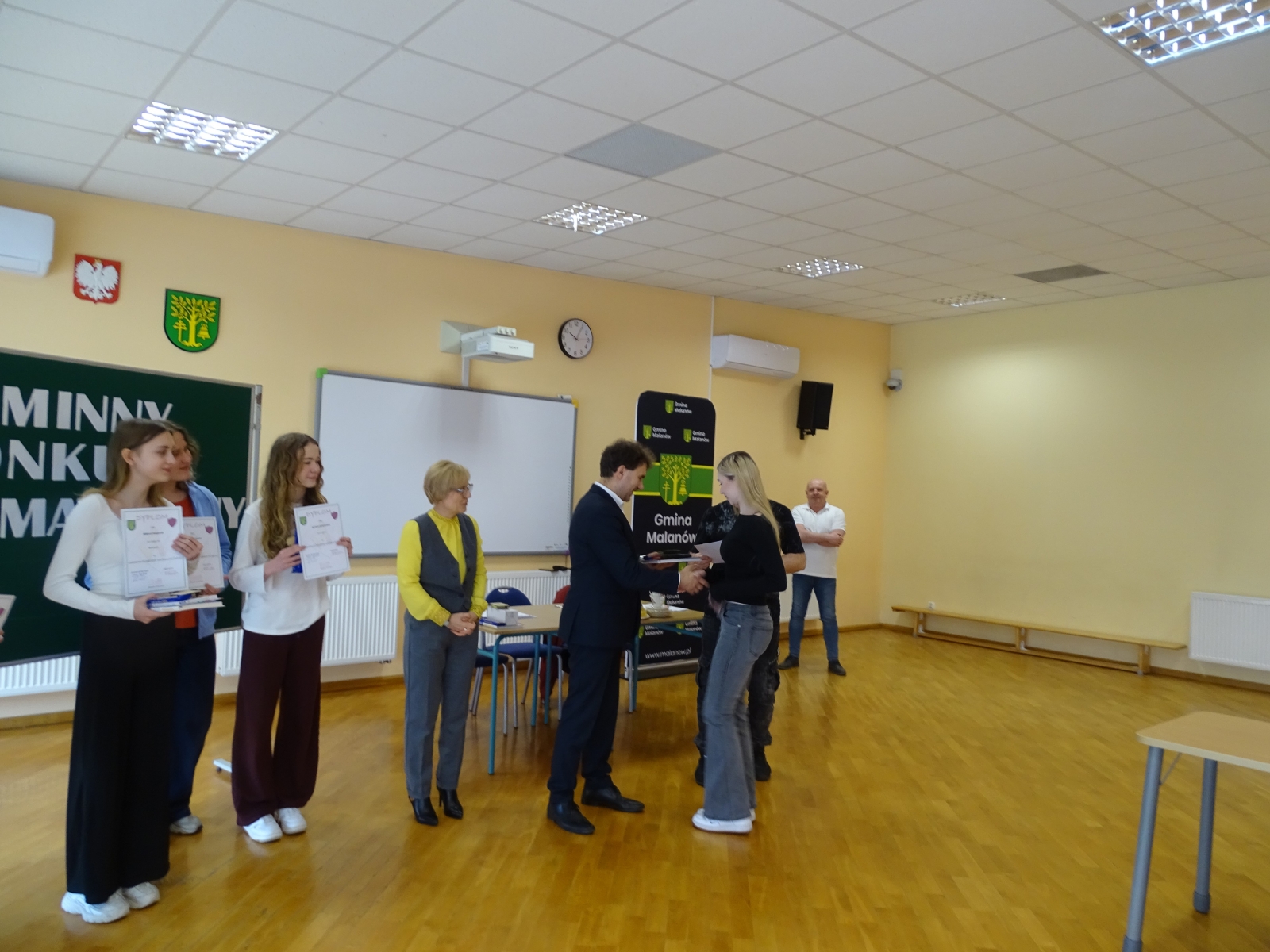 25 marca 2026 roku Szkoła Podstawowa im. Powstańców Wielkopolskich w Malanowie gościła w swoich murach uczestników zorganizowanego przez nas Gminnego Konkursu Matematycznego, nad którym patronat objął Pan Ireneusz Augustyniak- Wójt Gminy Malanów. Uczniowie reprezentowali szkoły podstawowe z terenu naszej gminy tj. Szkołę Podstawową w Dziadowicach, Szkołę Podstawową w Miłaczewie oraz gospodarza. Z każdej ze szkół do zmagań z królową przystąpiło po 3 uczniów, którzy rozwiązywali zadania przygotowane przez koordynatora konkursu- Pana Krzysztofa Mruka.