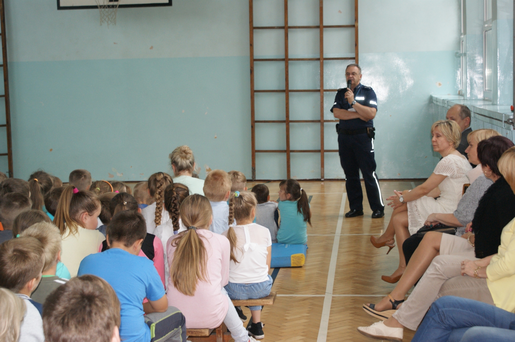 Wiadomo, że wakacje to beztroski czas odpoczynku i relaksu, dlatego w tym czasie, w szczególny sposób należy dbać o swoje, i innych bezpieczeństwo. Podczas pogadanki przypomniane zostały podstawowe zasady zachowania na rowerze, w podróży, nad wodą, w lesie, w domu. Pan dzielnicowy zwrócił także uwagę na wzmożoną czujność w stosunku do osób, które poznajemy w Internecie. Mówiono także o odpowiednim wyposażeniu rowerzysty i posiadacza karty motorowerowej. Zwrócono uwagę na bezpieczne korzystanie z urządzeń podłączonych do prądu oraz o unikaniu brawury podczas kąpieli i unikania miejsc niedozwolonych do kąpieli.