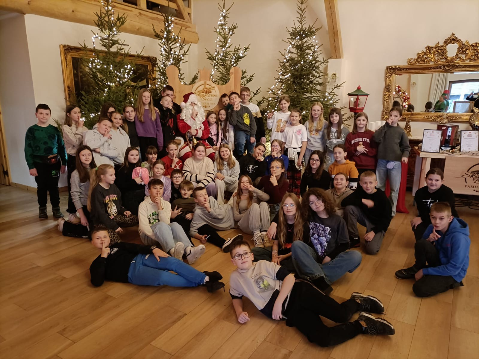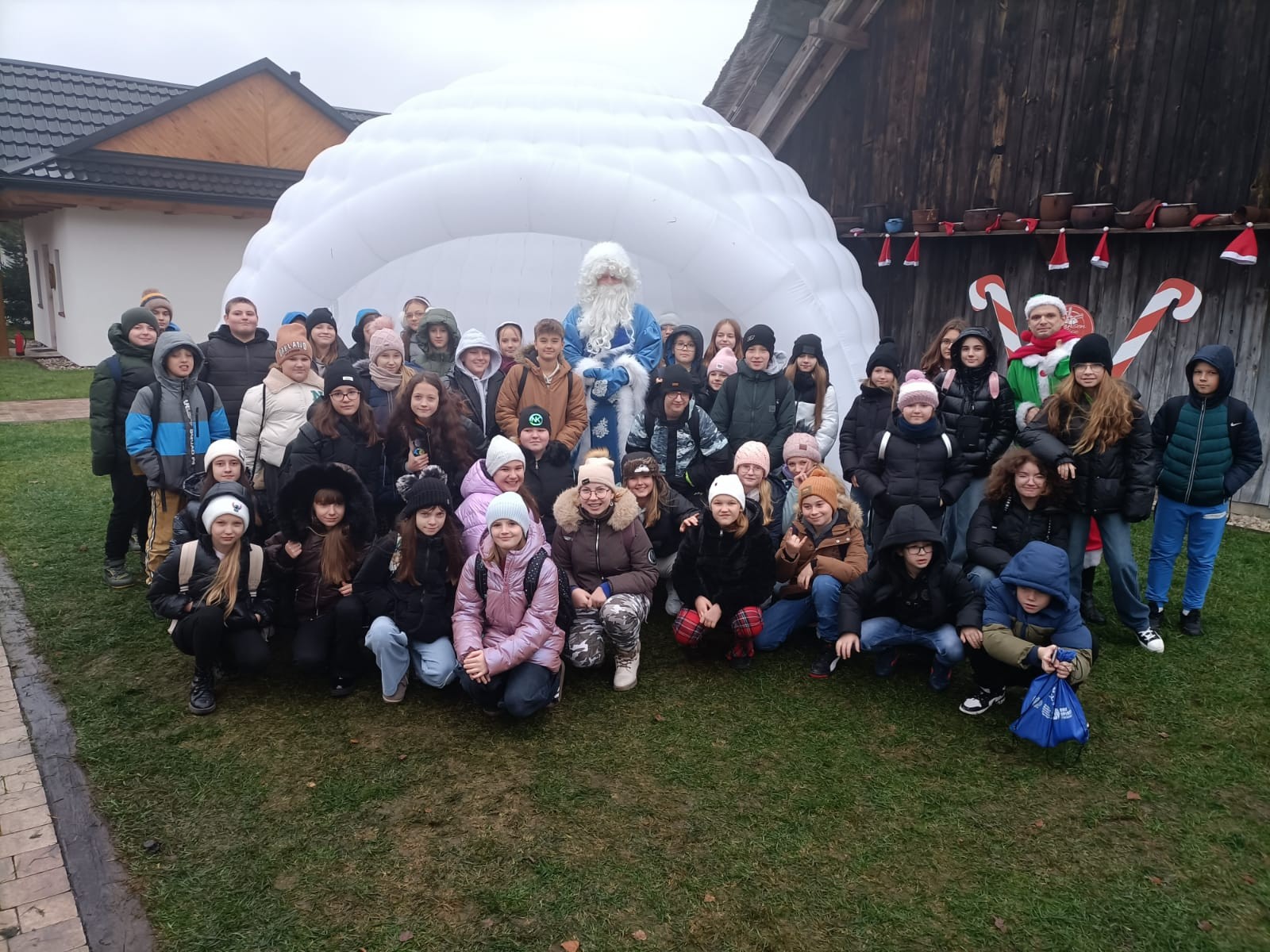 Dn. 09.12 uczniowie klas piątych udali się na wycieczkę do wioski św. Mikołaja w Skansen Bicz. Wycieczka rozpoczęła się wizytą w chacie Mikołaja i zwiedzaniem jego Poczty. Po zwiedzaniu był czas na chwilę relaksu przy ognisku, gdzie wszyscy uczestnicy piekli pianki i delektowali się gorącą belgijską czekoladą. Następnie pod okiem animatorów odbyły się warsztaty pieczenia i dekorowania pierniczków, które zakończyły się degustacją własnych arcydzieł i zimowej pysznej herbatki. Ważnym punktem programu był również jarmark pełen klimatycznych ozdób i pamiątek. Opiekę nad uczniami sprawowały wychowawczynie klas 5 Ewelina Czerniak i Julita Muszalska oraz pani dyrektor Urszula Kamińska.