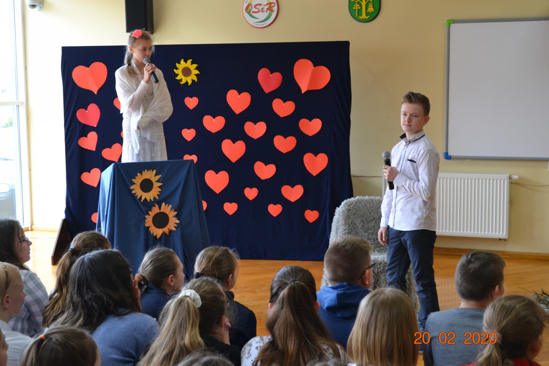 20 lutego w szkole podstawowej odbyło się przedstawienie walentynkowe. Uczniowie klas siódmych i ósmych pod nadzorem pani psycholog, pani pedagog oraz pani Kasi Tomczyk przygotowali występ, w którym ukazywali różne oblicza miłości.
